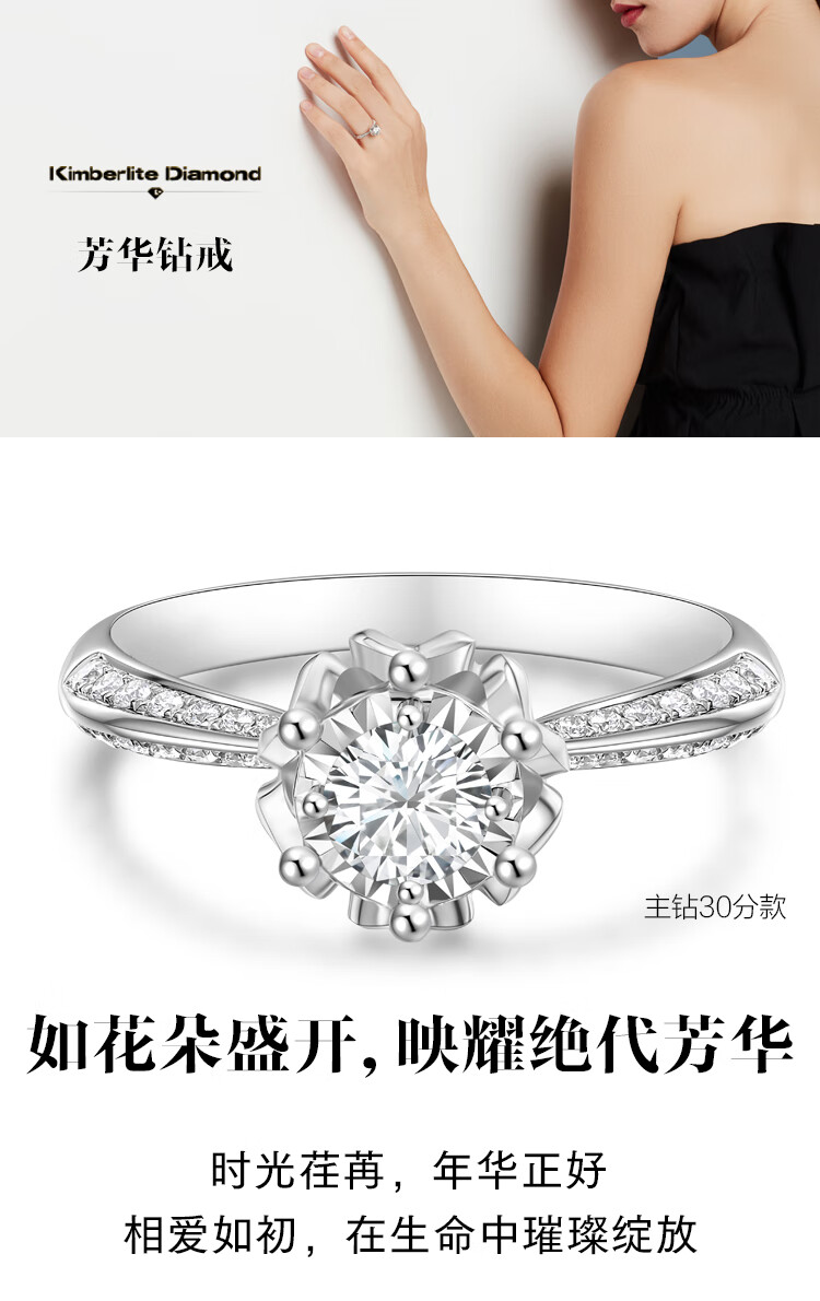 Kimberley Diamond Fanghua Diamond Ring 18K Gold Proposal Ring Carat Effect for Marriage Couples Carat Effect Christmas Gift for Girls Main Diamond 11 Points/Secondary Diamond 19/G Color/VS1-13