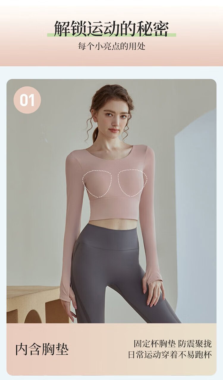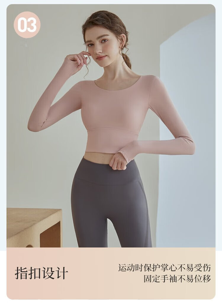 Yoga Girl Yoga Wear Women's Sports Top Running Pilates Training Fitness Wear Long Sleeve Set Pink Top + Gray Pants M (95-110Jin Jin equals 0.5kg)