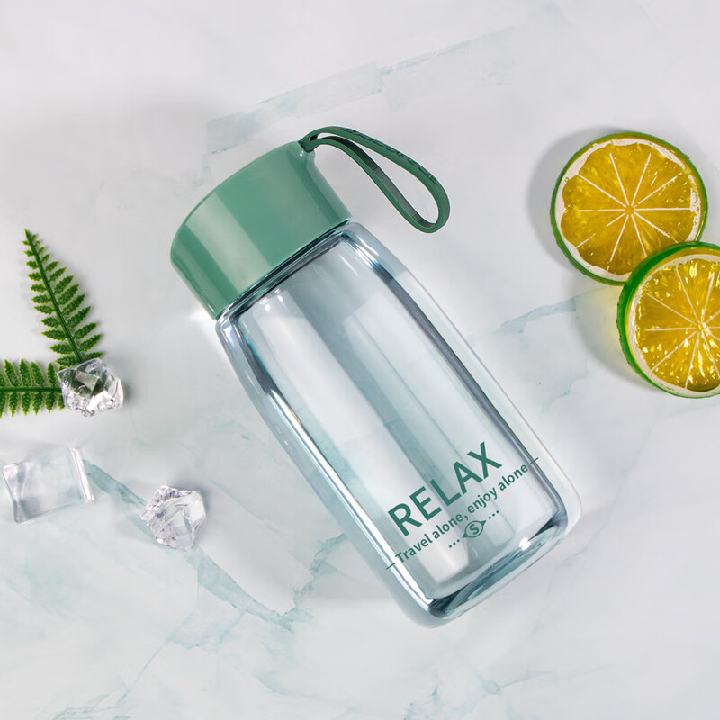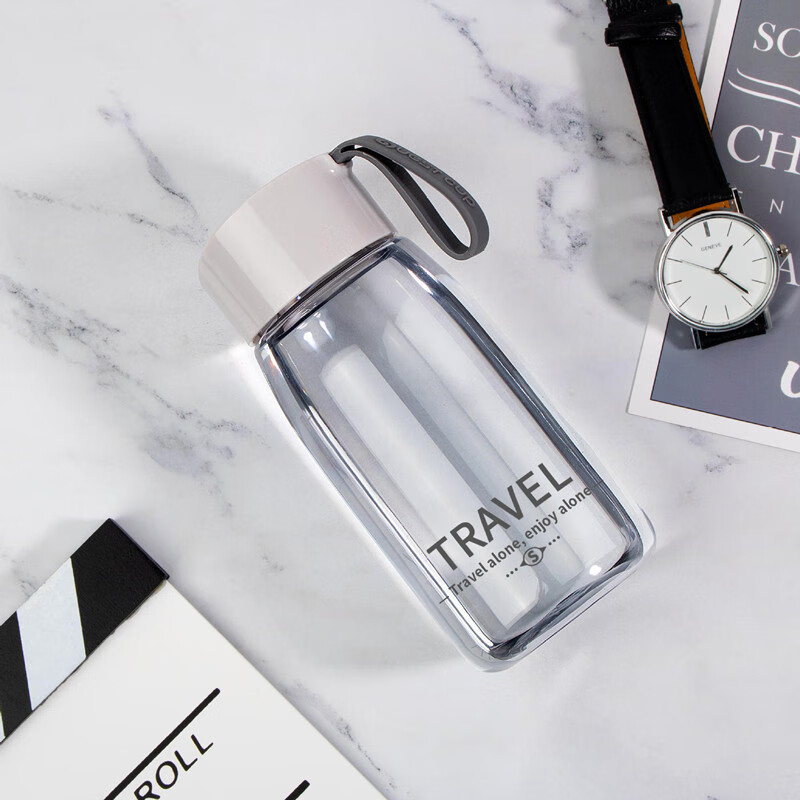 Household sisters water cup for women, cute, compact, portable plastic student simple high temperature resistant drinking tea cup, color through - navy blue 380ml