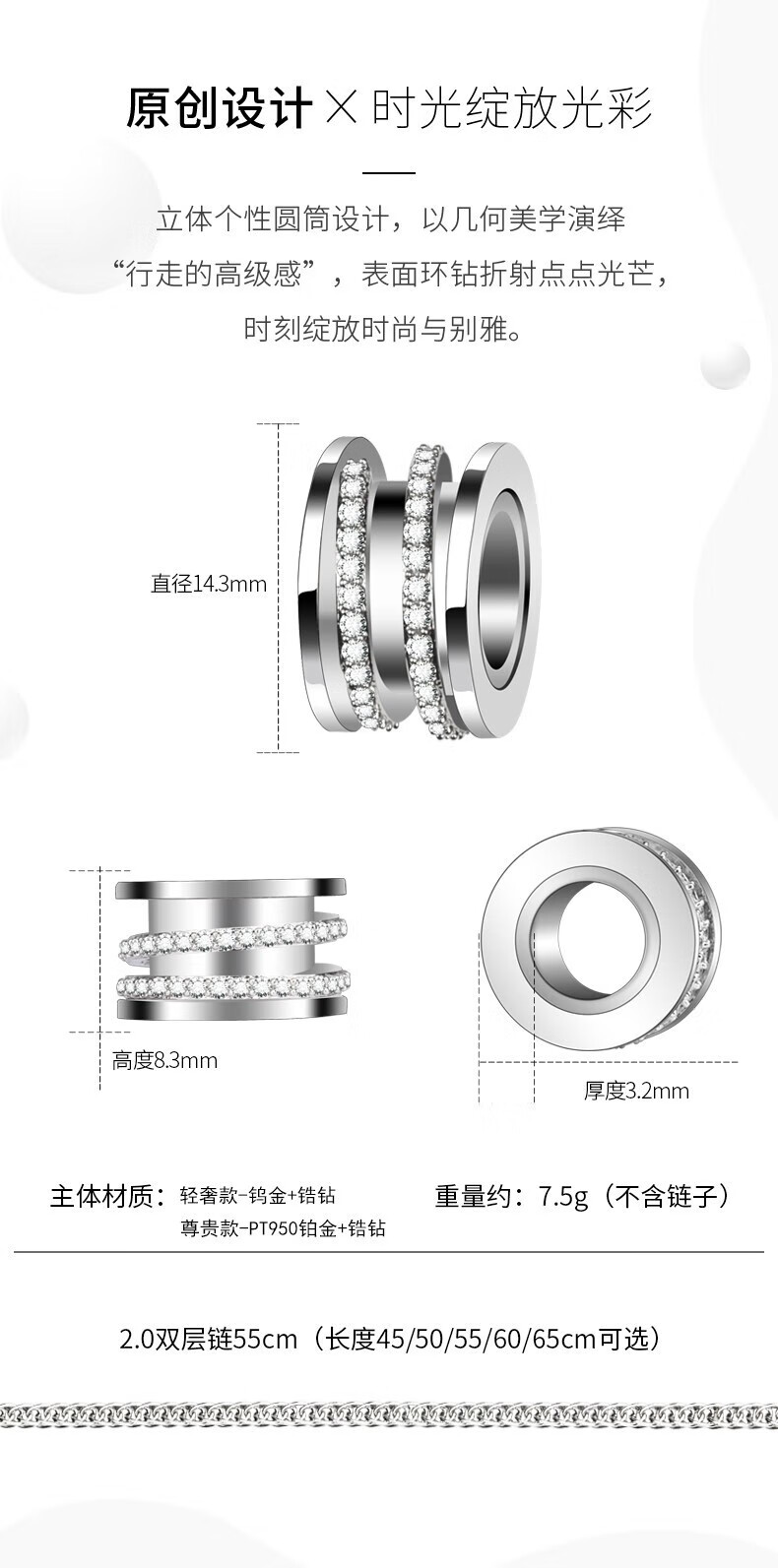 MZMZ platinum necklace men's pt950 platinum fashion accessories pendant hip-hop Valentine's Day birthday gift for boyfriend local warehouse next day delivery - light luxury transfer bead necklace - chain length 55cm
