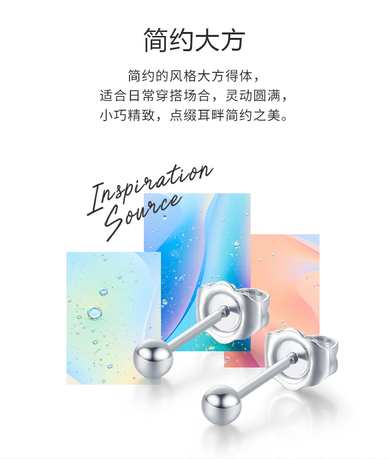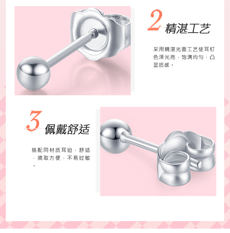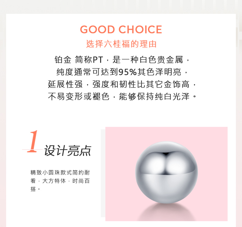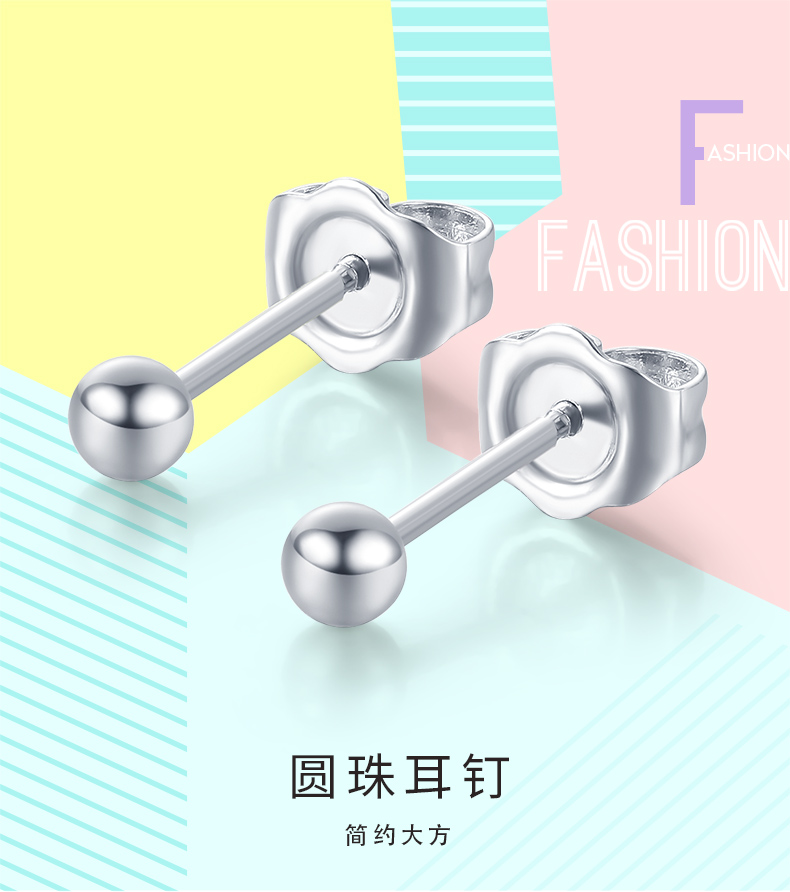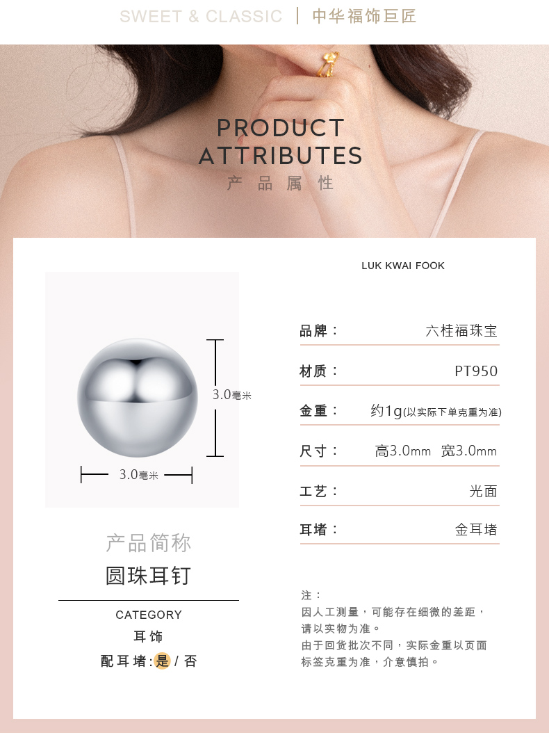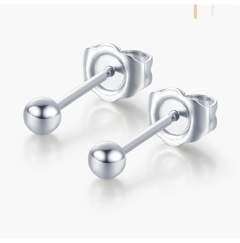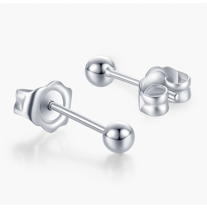 Liuguifu Jewelry Platinum Earrings Women's Pt950 Earrings Earrings Glossy Round Beads Plain Style Birthday Gift 1.05g