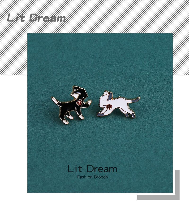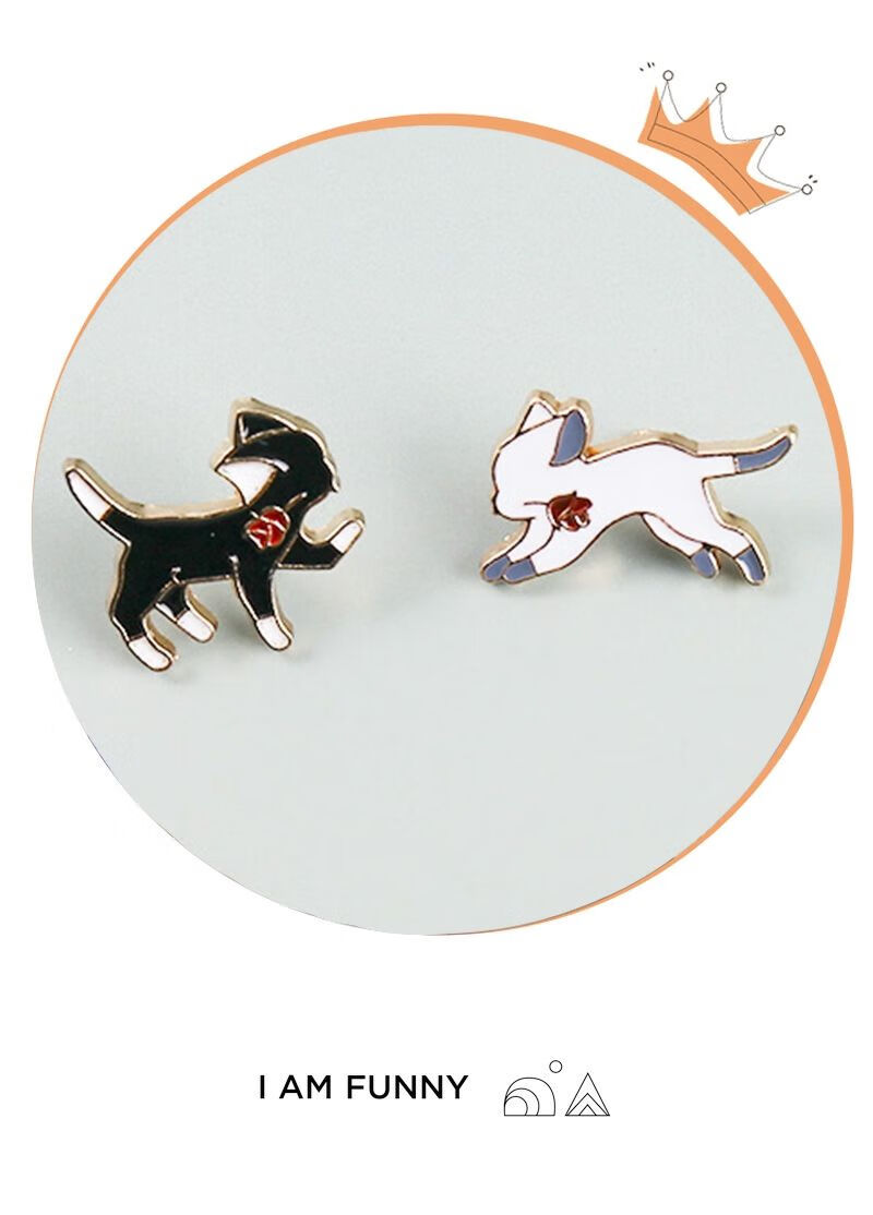 Jack Viney Japanese ins black and white with cat brooch cute men and women personalized lapel pin black cat + white cat