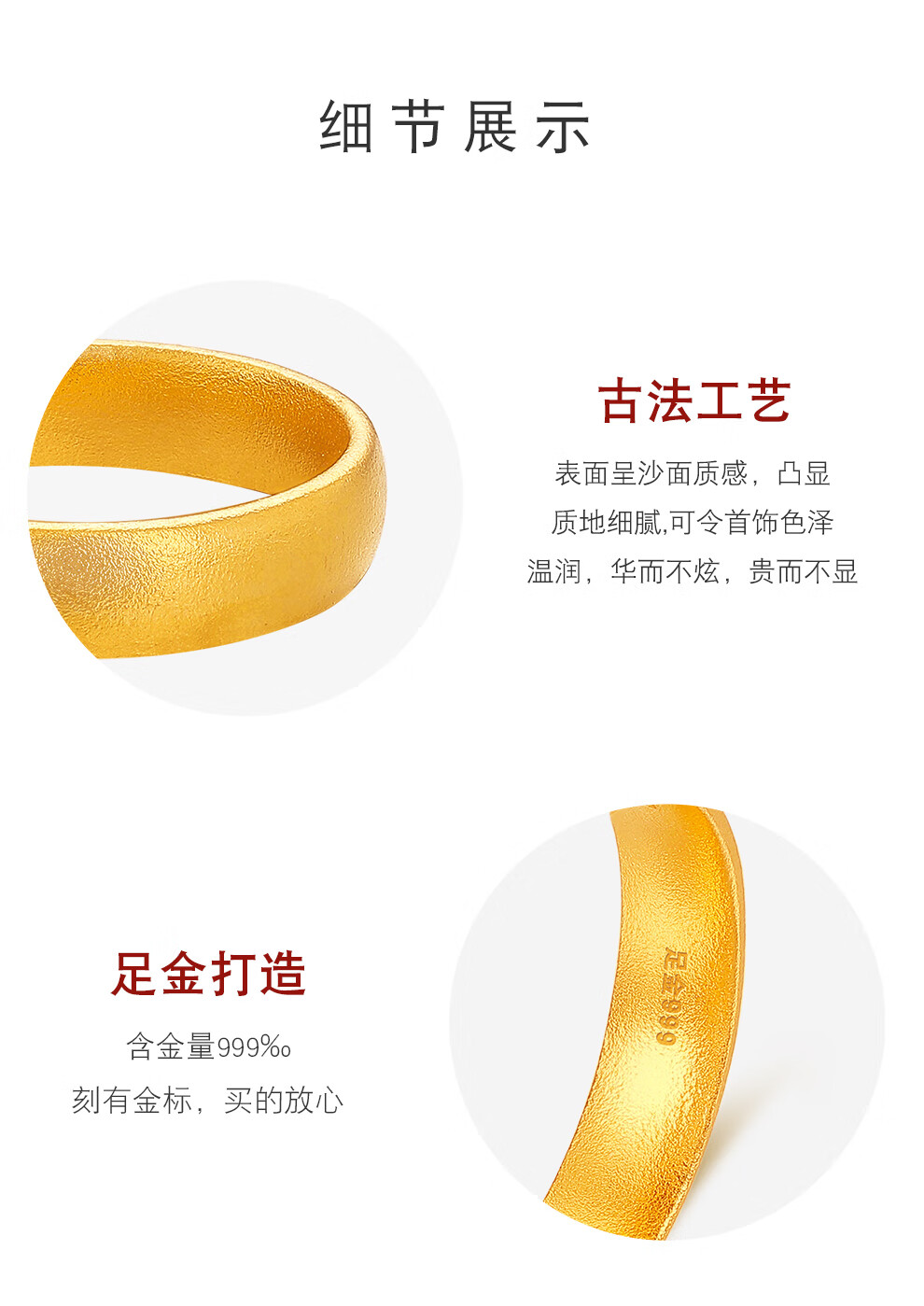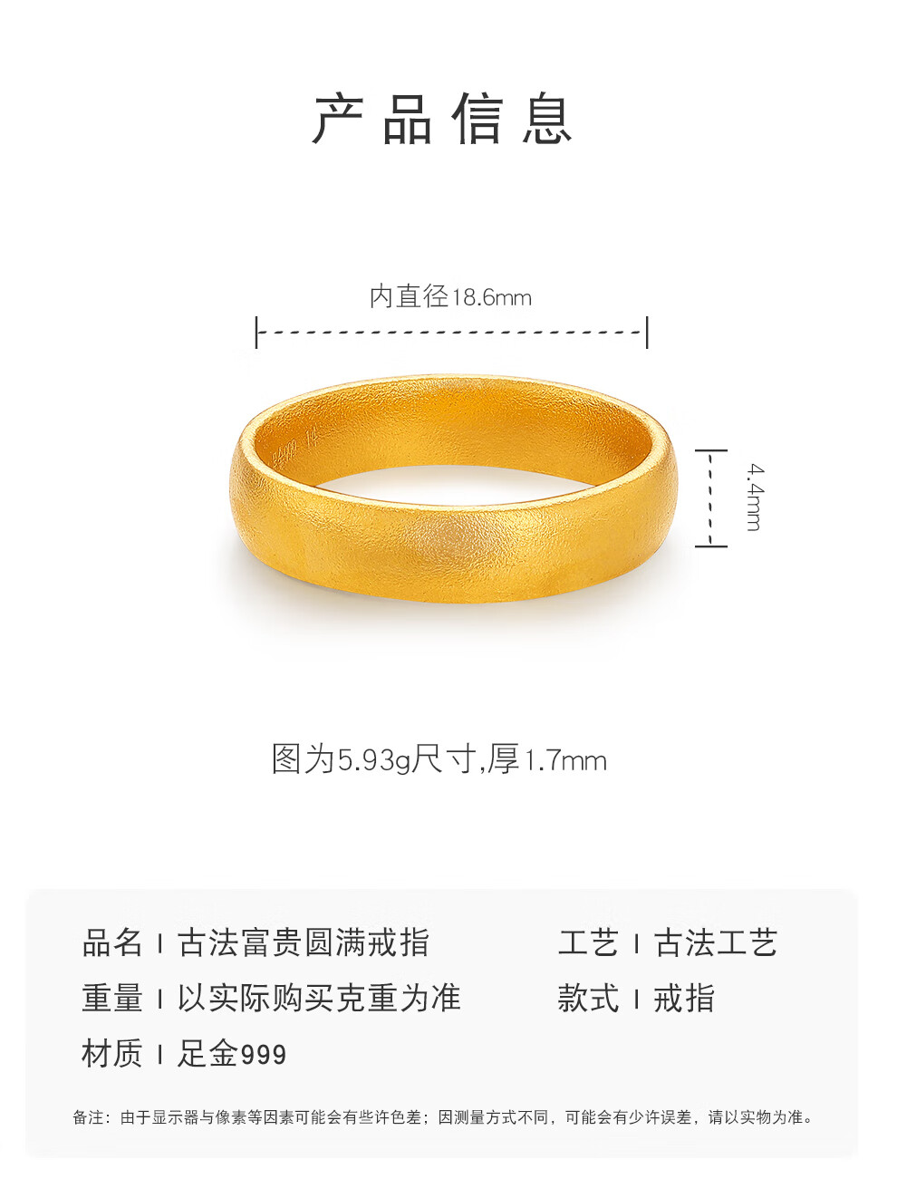 Zhongxin Jewelry Gold Ring Ancient Method Tianyuan Nothing Gold Ring Plain Ring Closed Mouth Pure Gold 999 Ring Men and Women Gift 4.78g (No. 21)