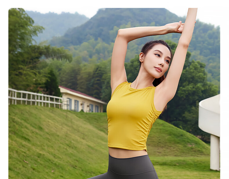 Fanmeiren Yoga Vest Women's Summer Professional Sports Running Fitness Wear Pilates Sleeveless Yoga Top Yoga Wear Xianghuang/Removable Chest Pad L