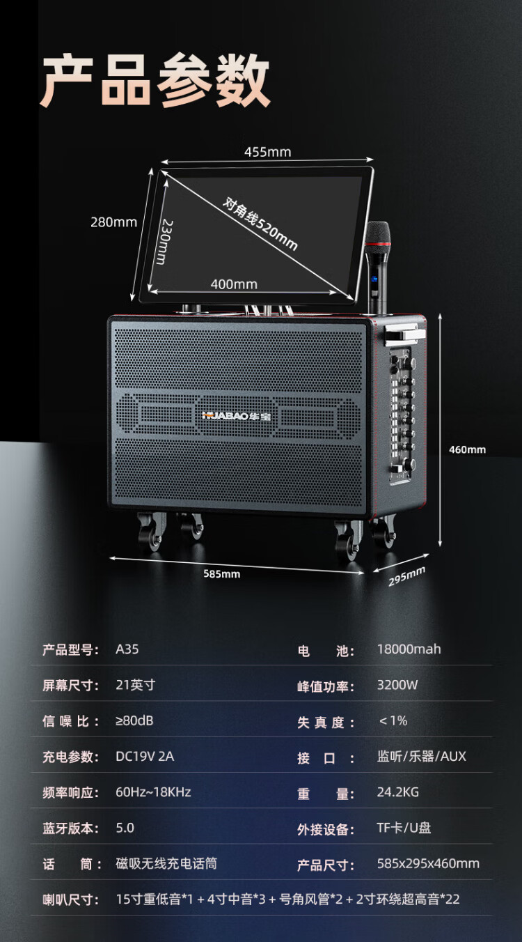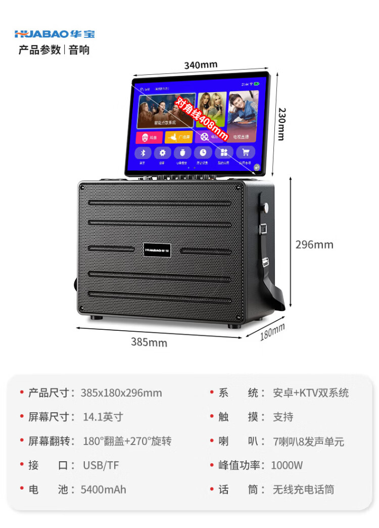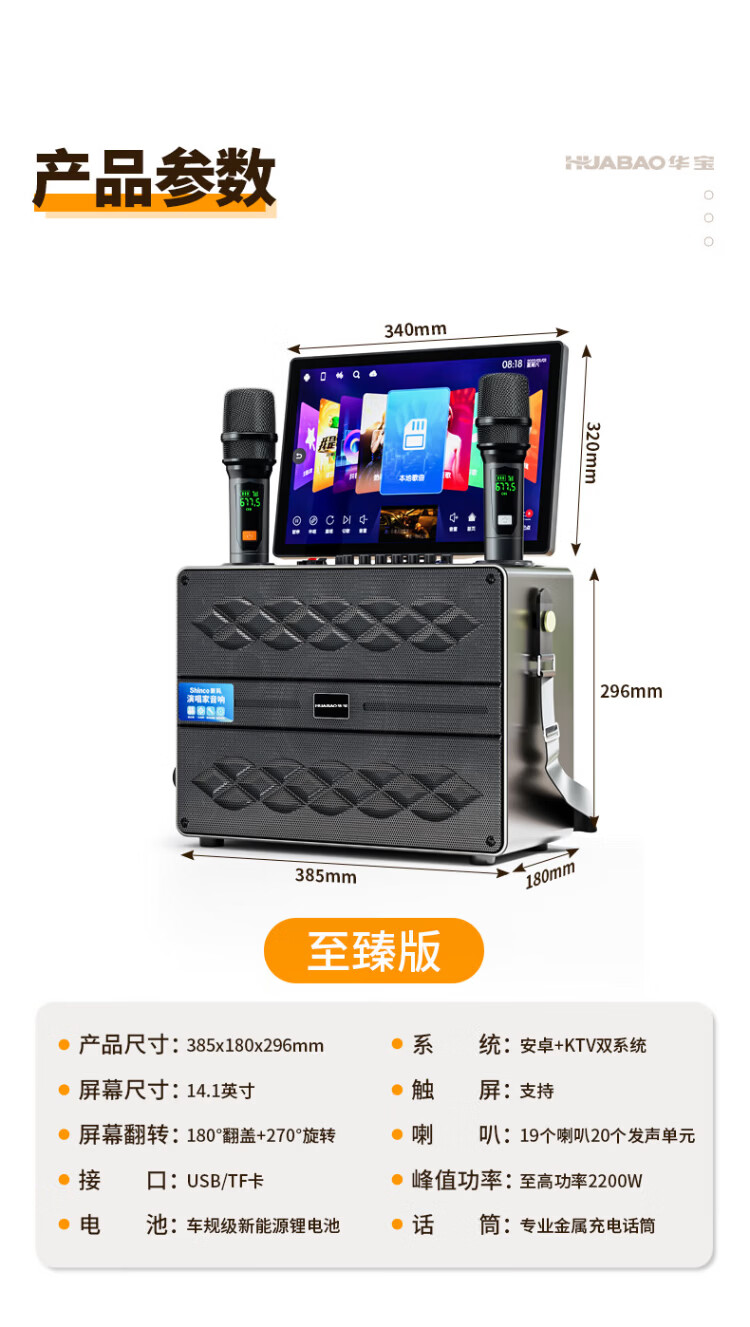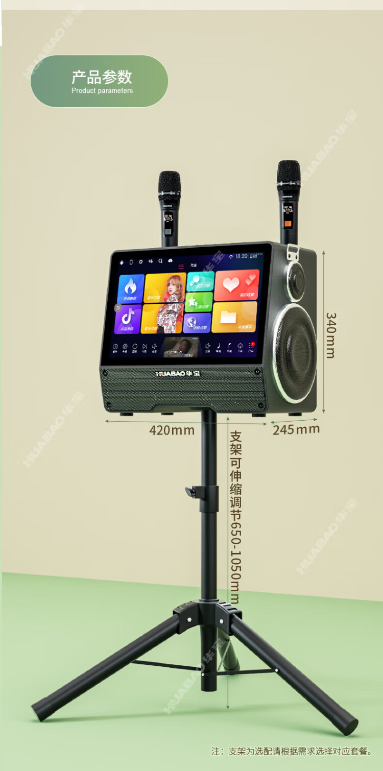 Huabao KTV audio and video all-in-one machine outdoor K song square dance portable network touch screen karaoke machine home karaoke with screen speaker trolley audio video trolley speaker A27 LCD screen Bluetooth version dual microphone