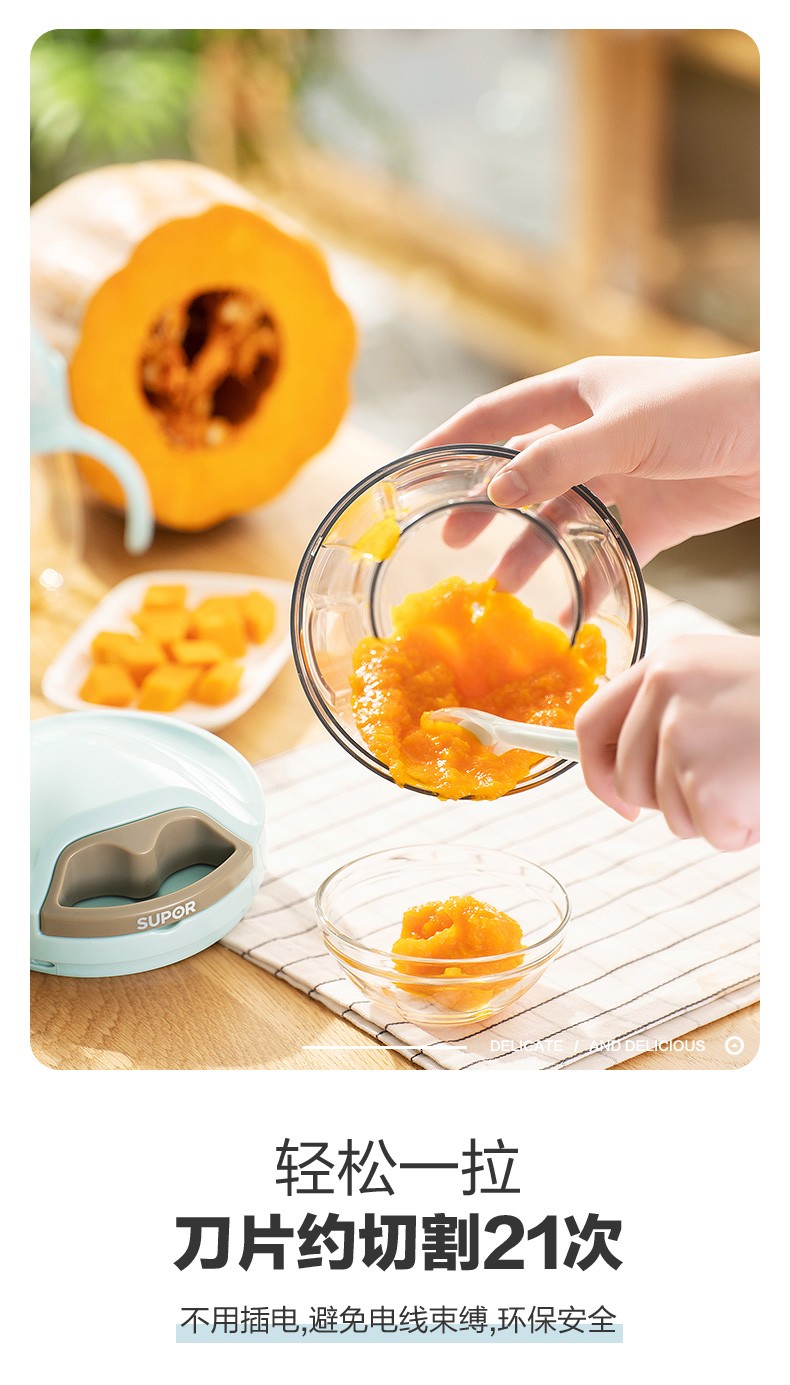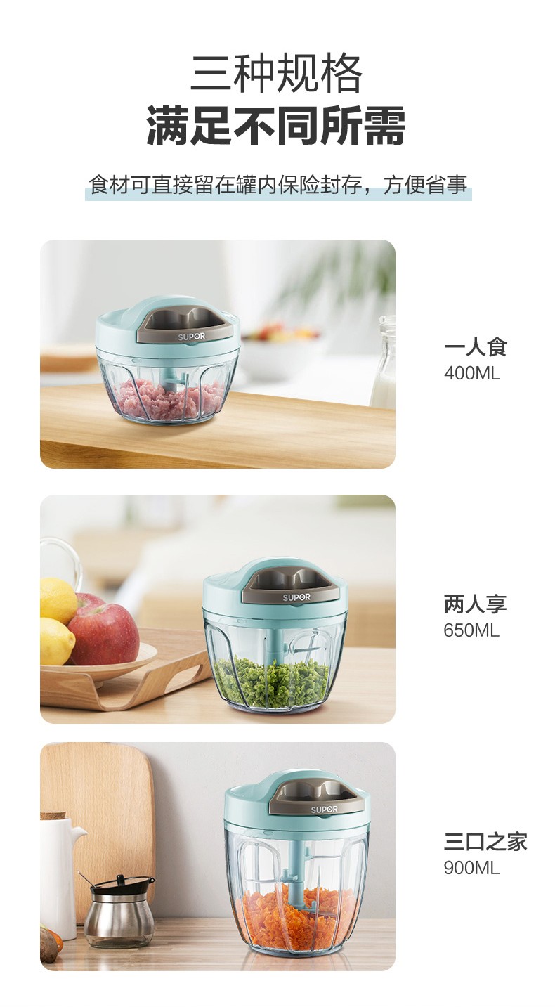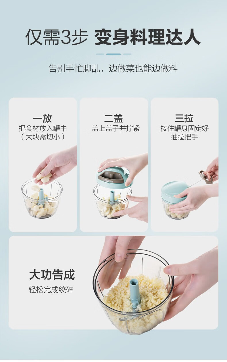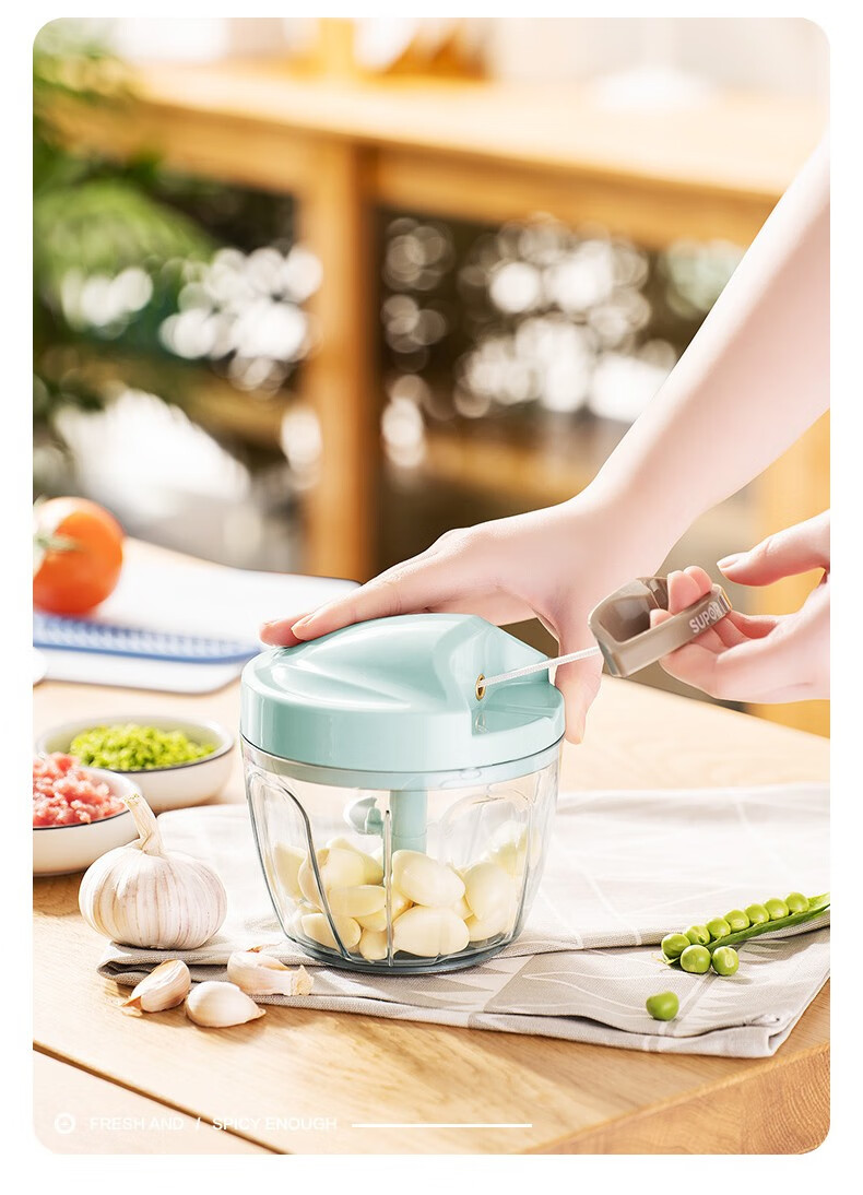 SUPOR drawstring vegetable cutter, mini garlic smasher, manual mincer, garlic puller, meat grinder, food supplement cooking machine, garlic masher - small size 400ml