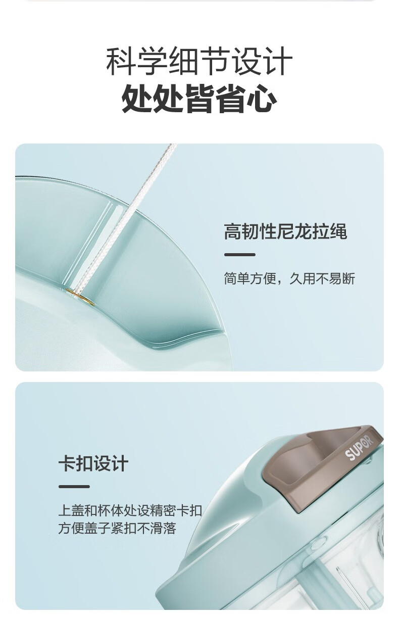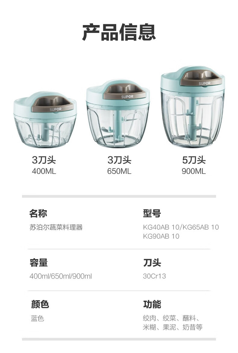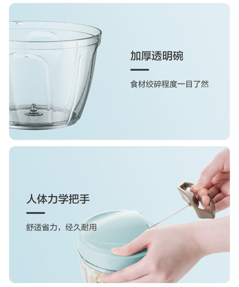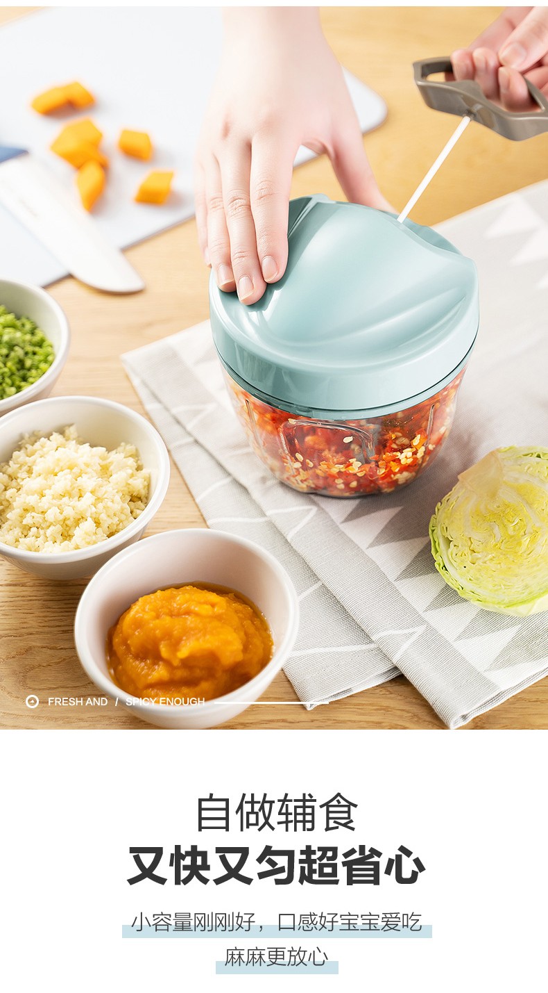 SUPOR drawstring vegetable cutter, mini garlic smasher, manual mincer, garlic puller, meat grinder, food supplement cooking machine, garlic masher - small size 400ml