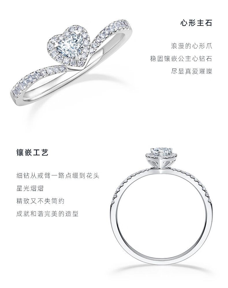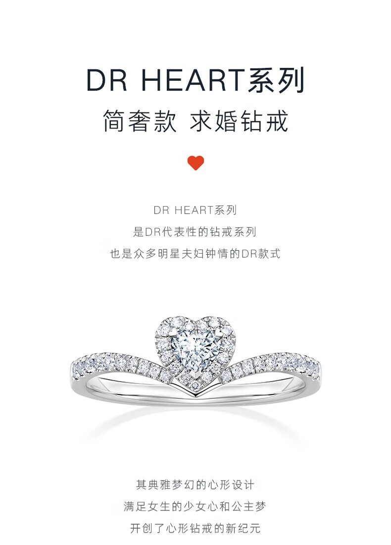 DR Proposal Diamond Ring Platinum HEART Series Simple Luxury Style to Protect Your Heart Holiday Gift Basic Model *20 Points H Color SI1