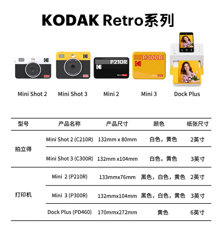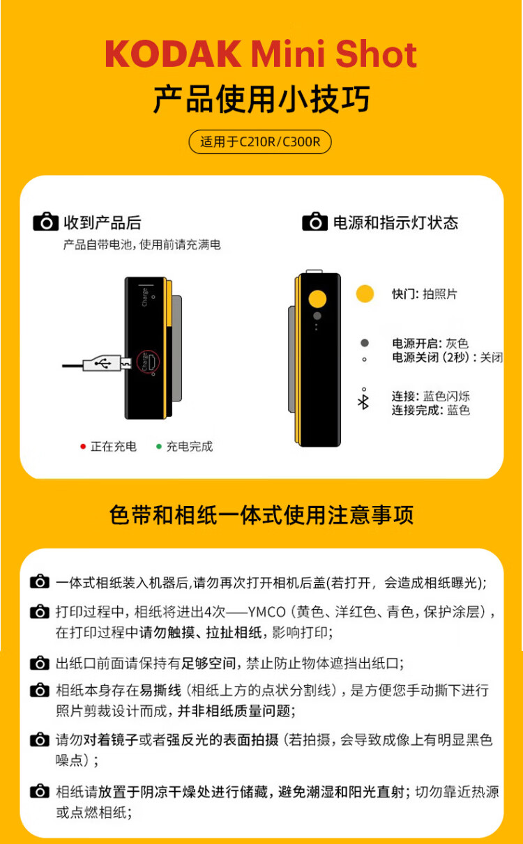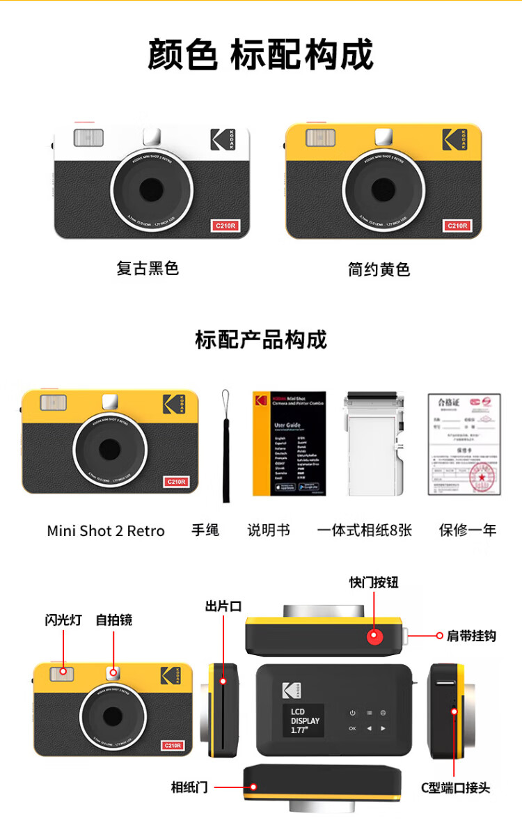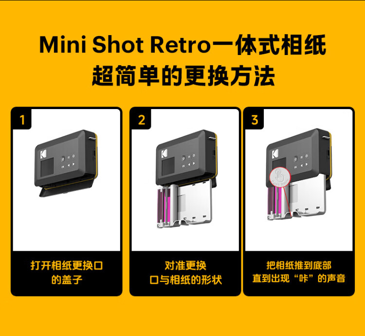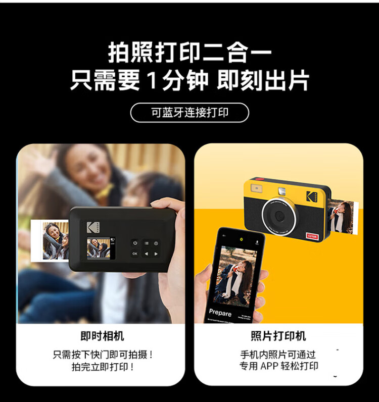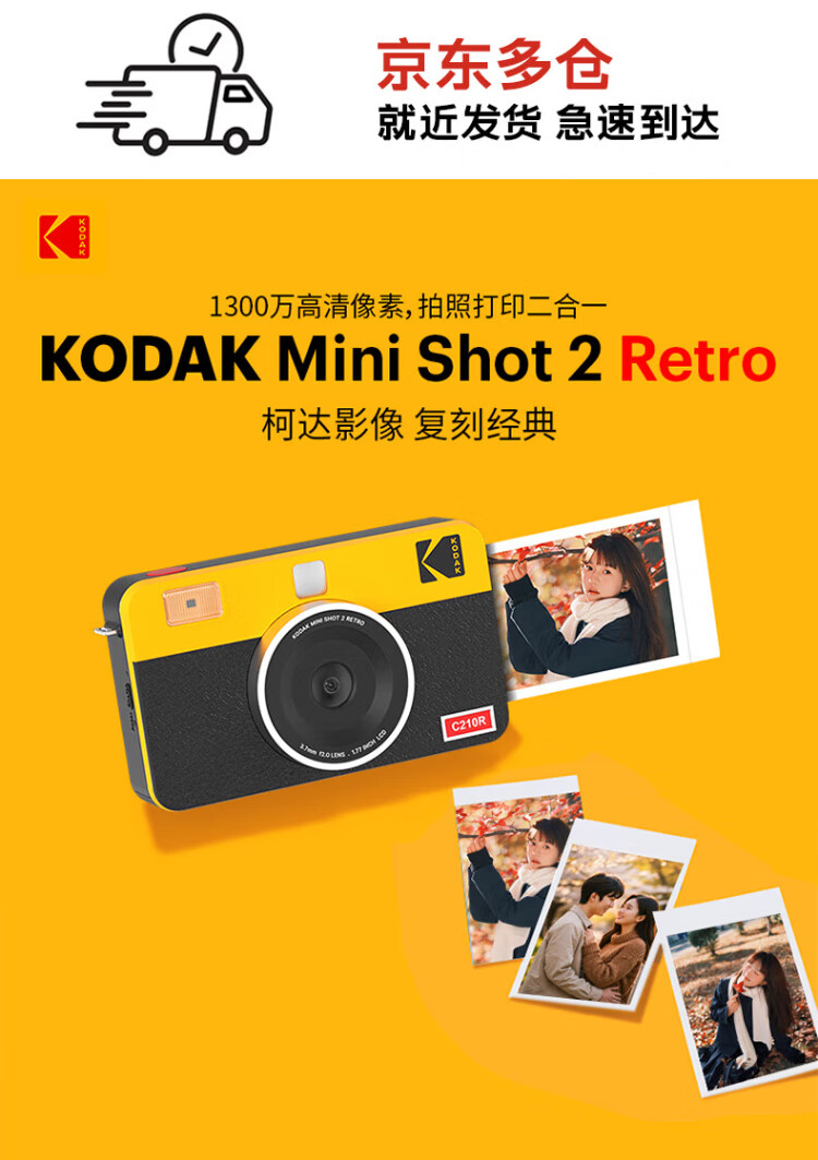 Kodak MiniShot2 Retro instant camera, one-time imaging retro camera, photo and print all-in-one, portable for student travel, holiday gift, wedding and birthday gift, yellow package one (standard + 30 pieces of photo paper)