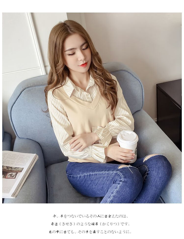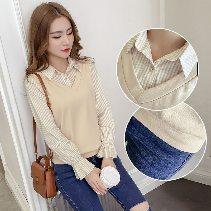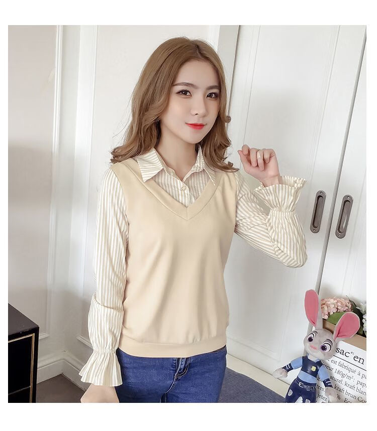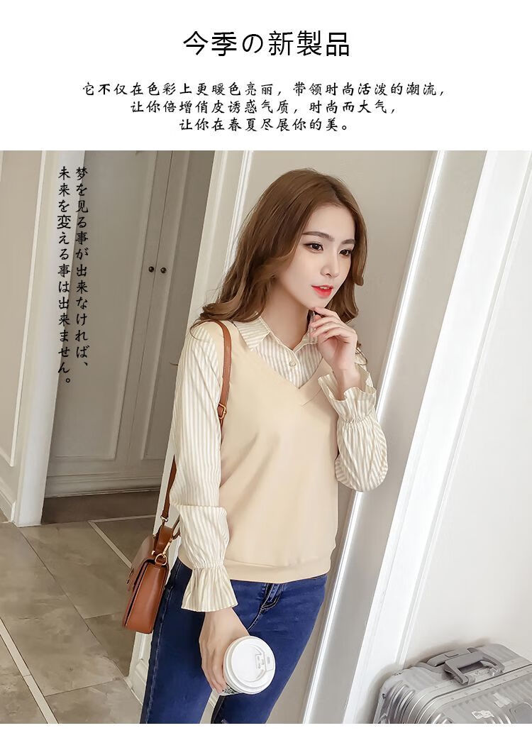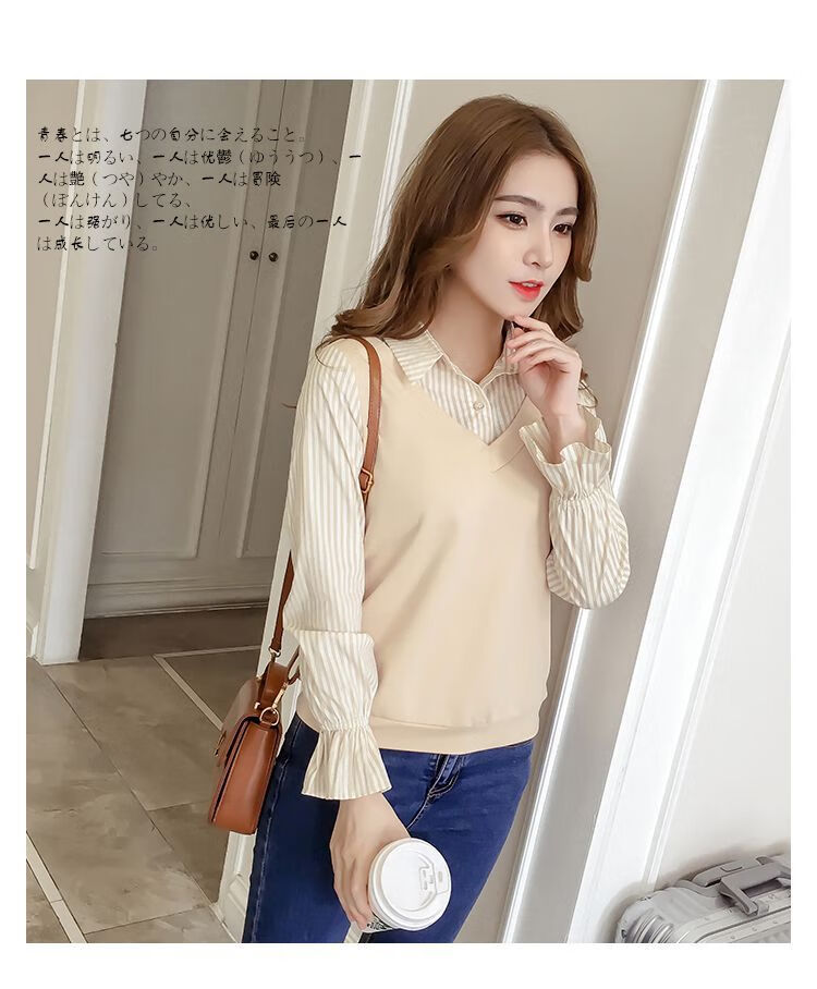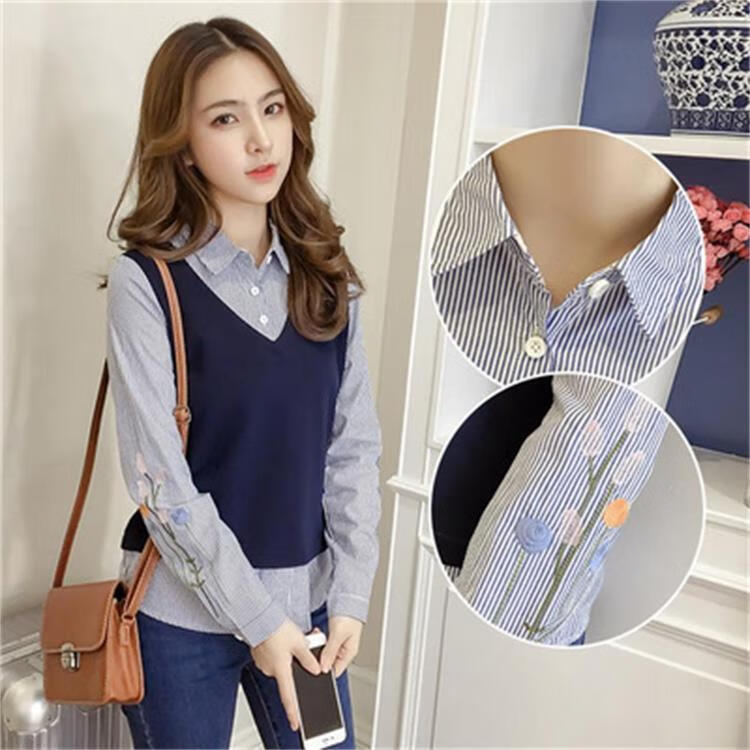 EPET Striped Shirt Women's Long Sleeve 2025 Spring and Autumn New Korean Style Versatile Fake Two-piece Top Small Fresh Shirt Design Blue S 80-95Jin Jin is equal to 0.5 kg
