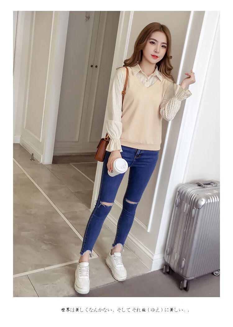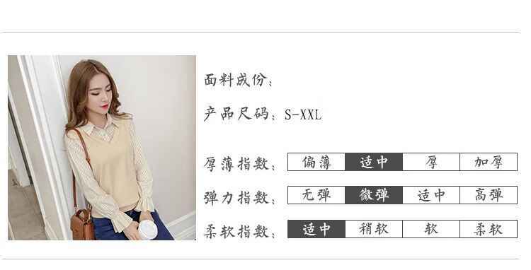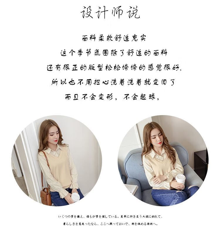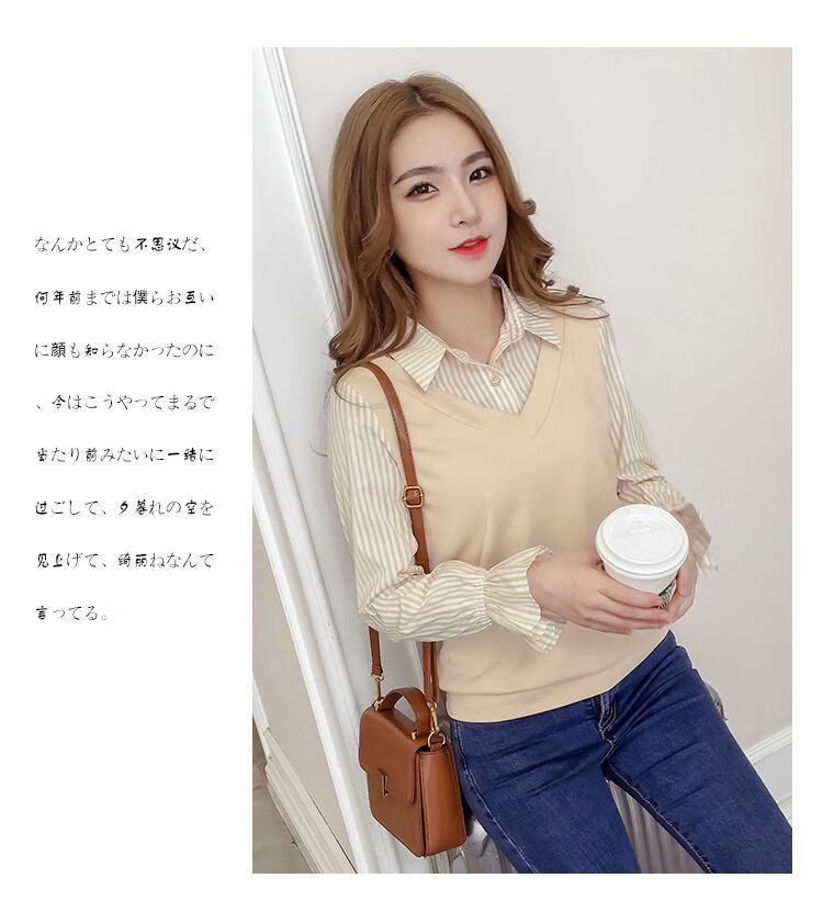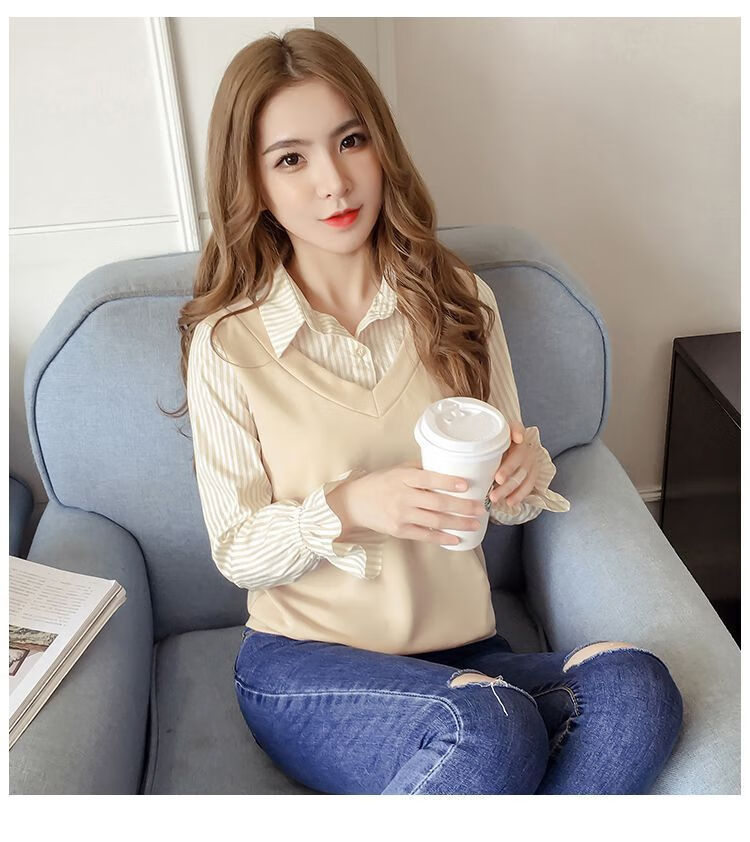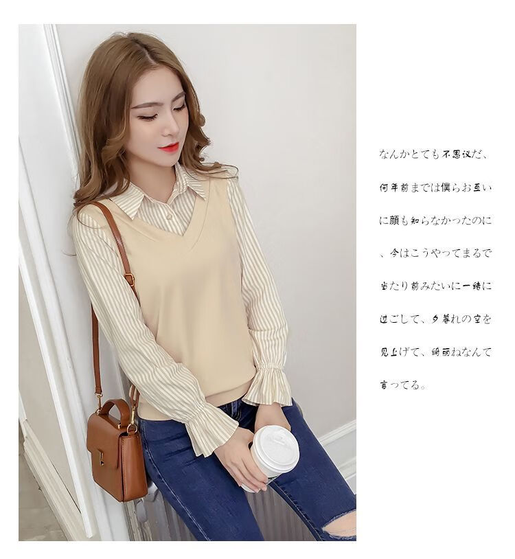 EPET Striped Shirt Women's Long Sleeve 2025 Spring and Autumn New Korean Style Versatile Fake Two-piece Top Small Fresh Shirt Design Blue S 80-95Jin Jin is equal to 0.5 kg