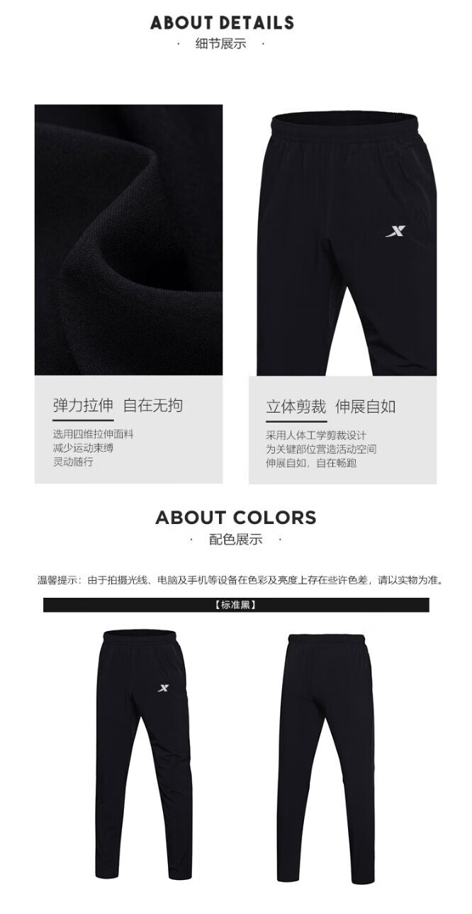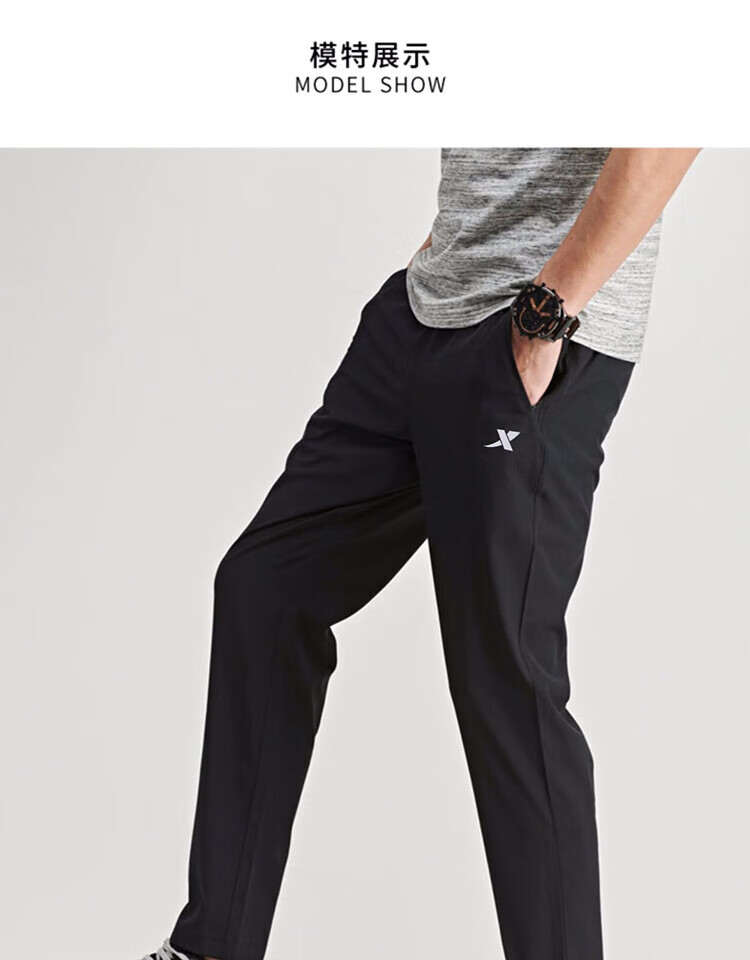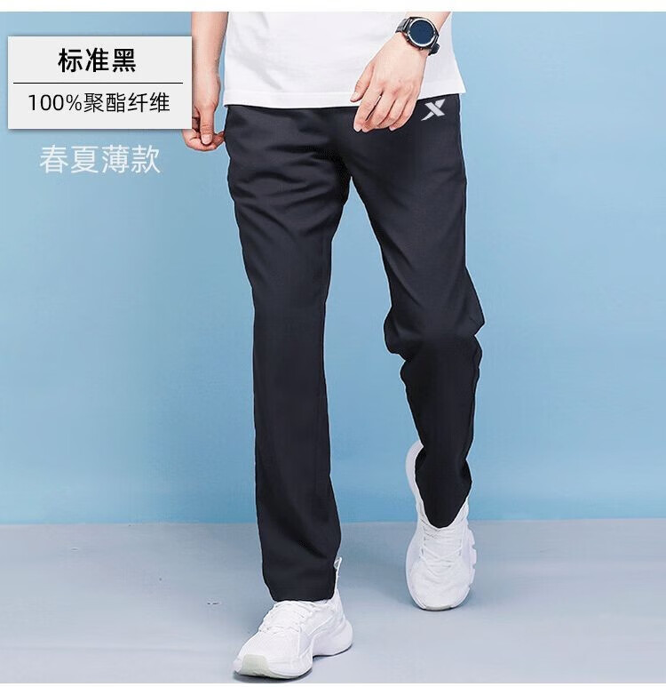 Xtep sports pants men's straight 2025 new spring and autumn breathable wear-resistant quick-drying loose large size woven casual pants for men black-woven style M /170