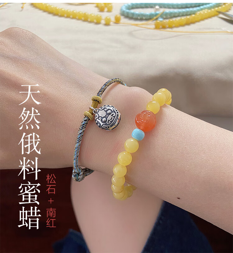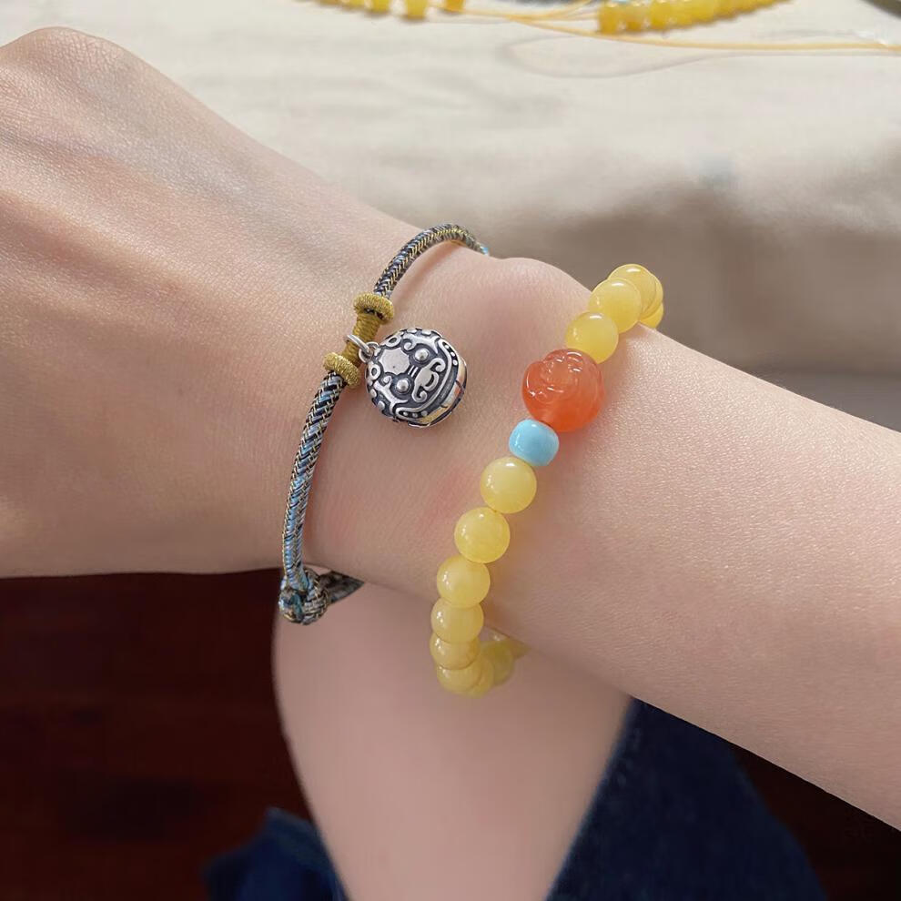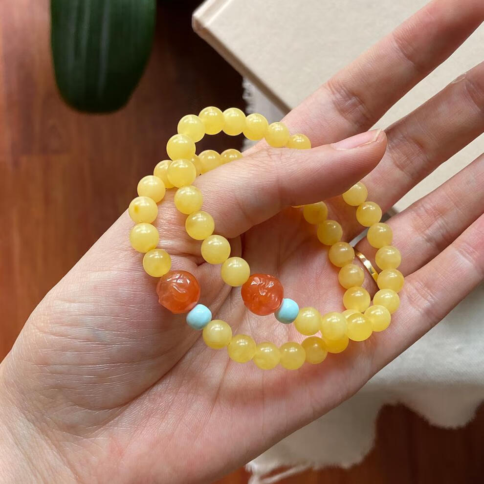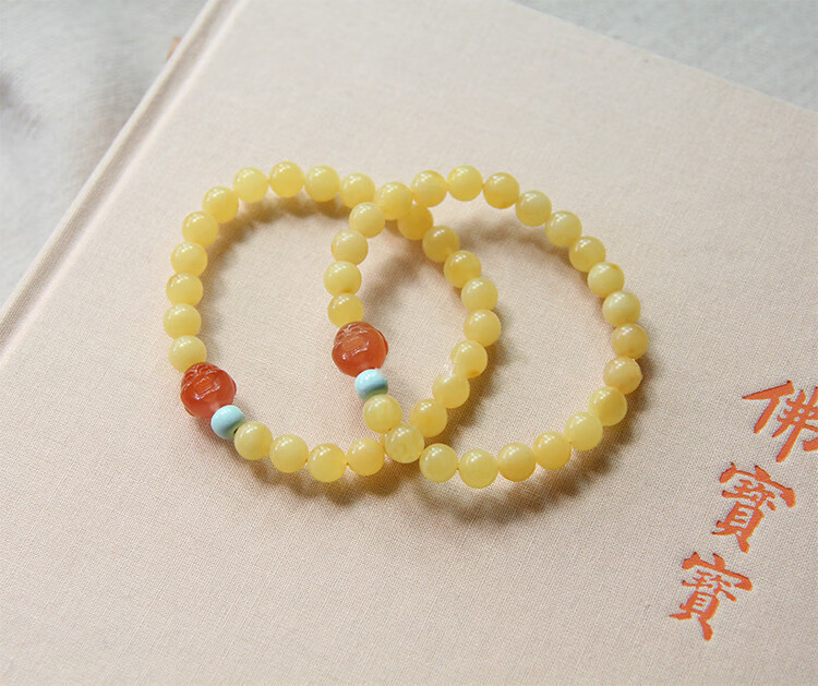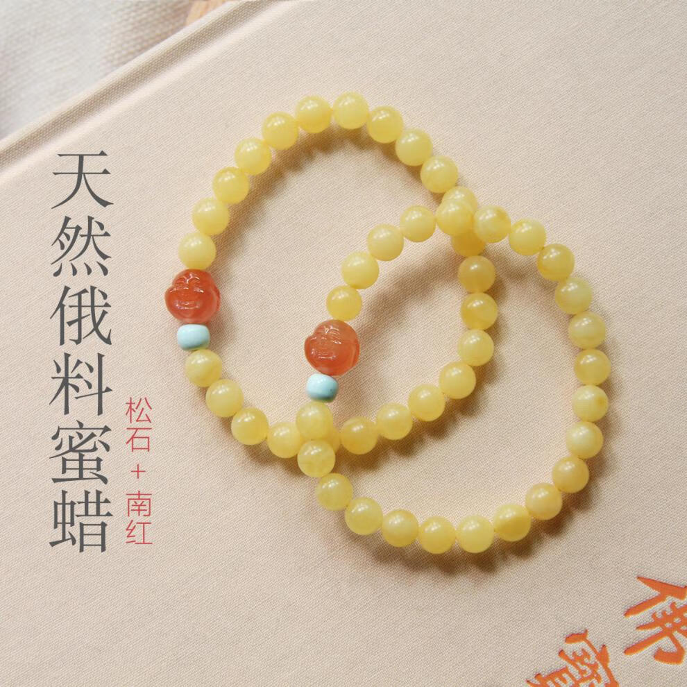 Longyin beeswax amber bracelet for women and men round bead single circle with turquoise and southern red Buddha head birthday gift YJ about 5.8mm