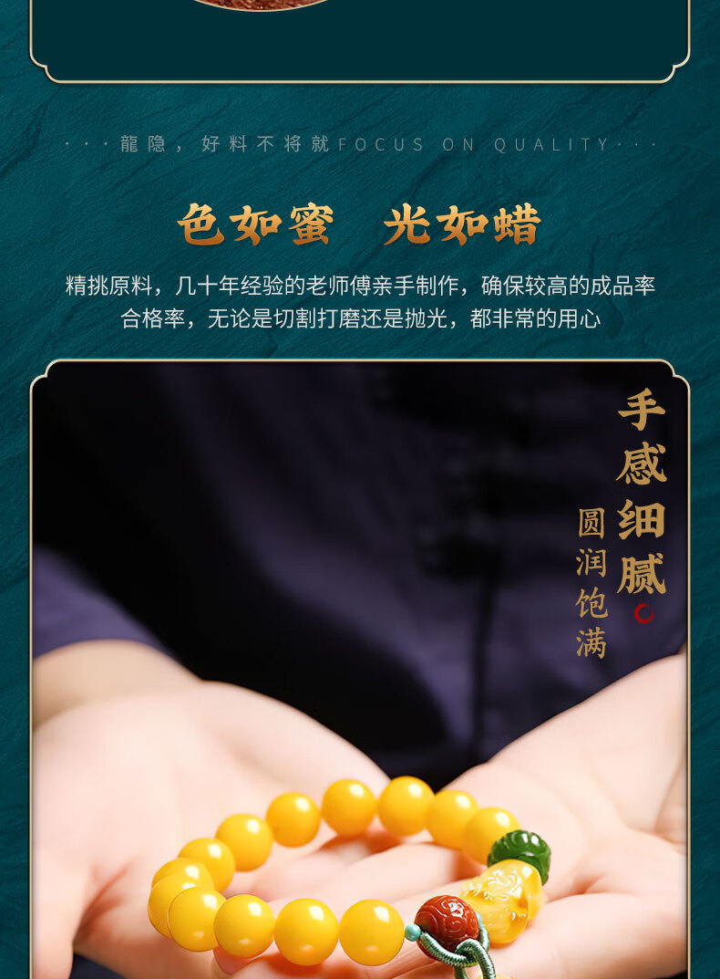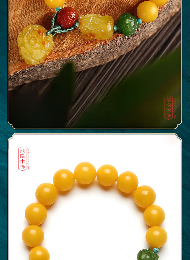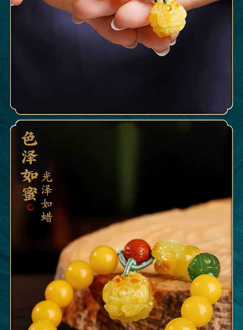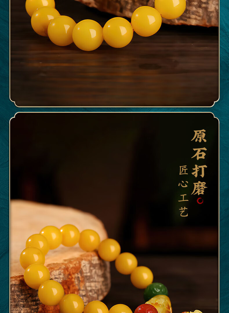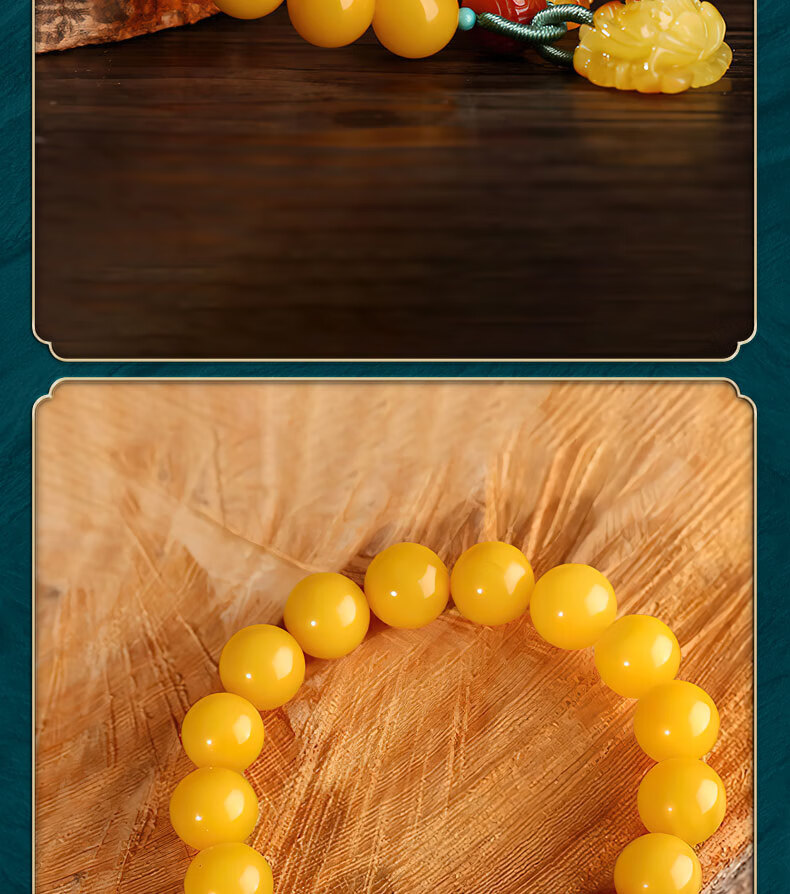 Longyin Natural Beeswax Bracelet Pixiu Amber Bracelet for Men and Women Baltic Chicken Butter Yellow Birthday Gift YJ 10mm