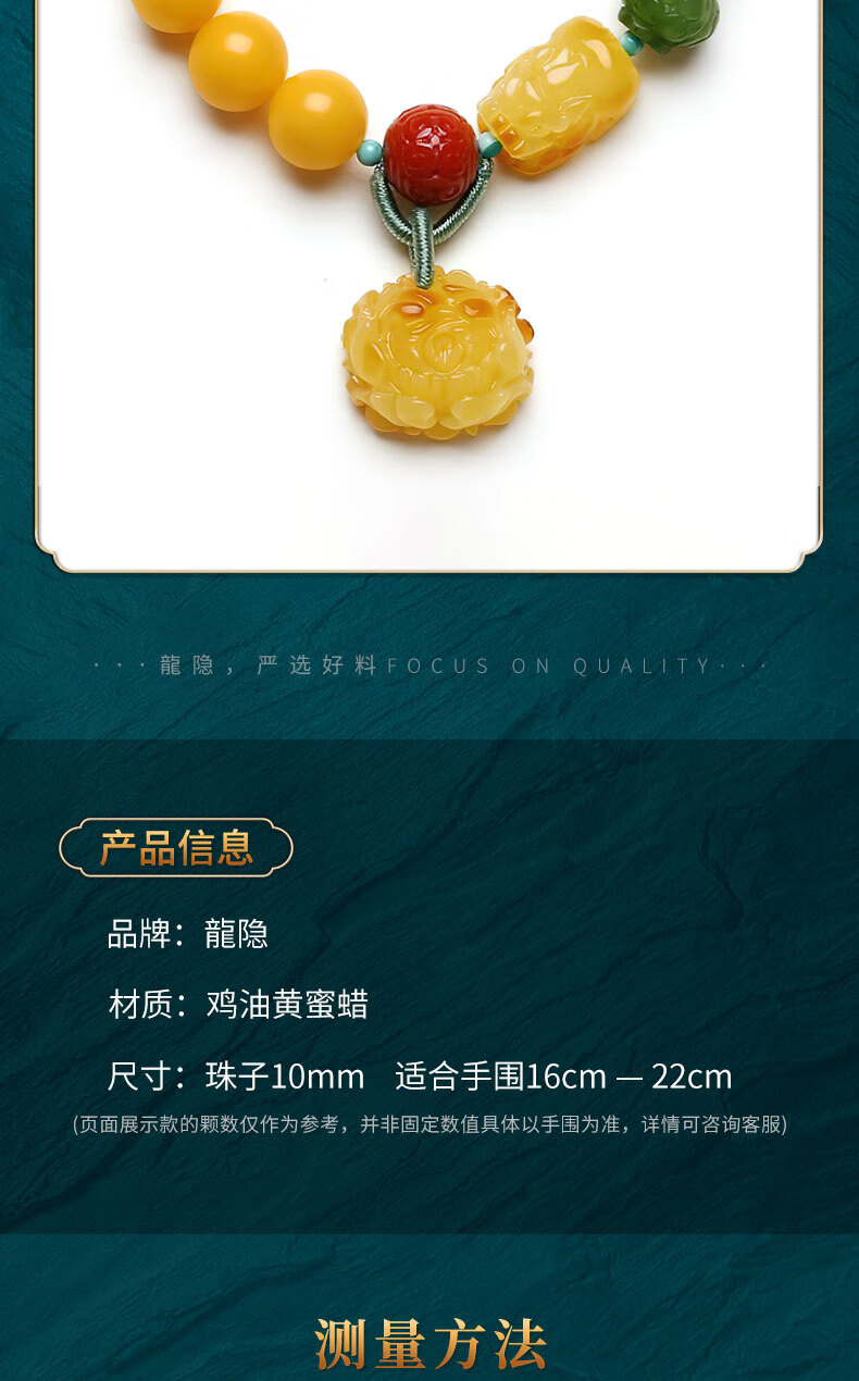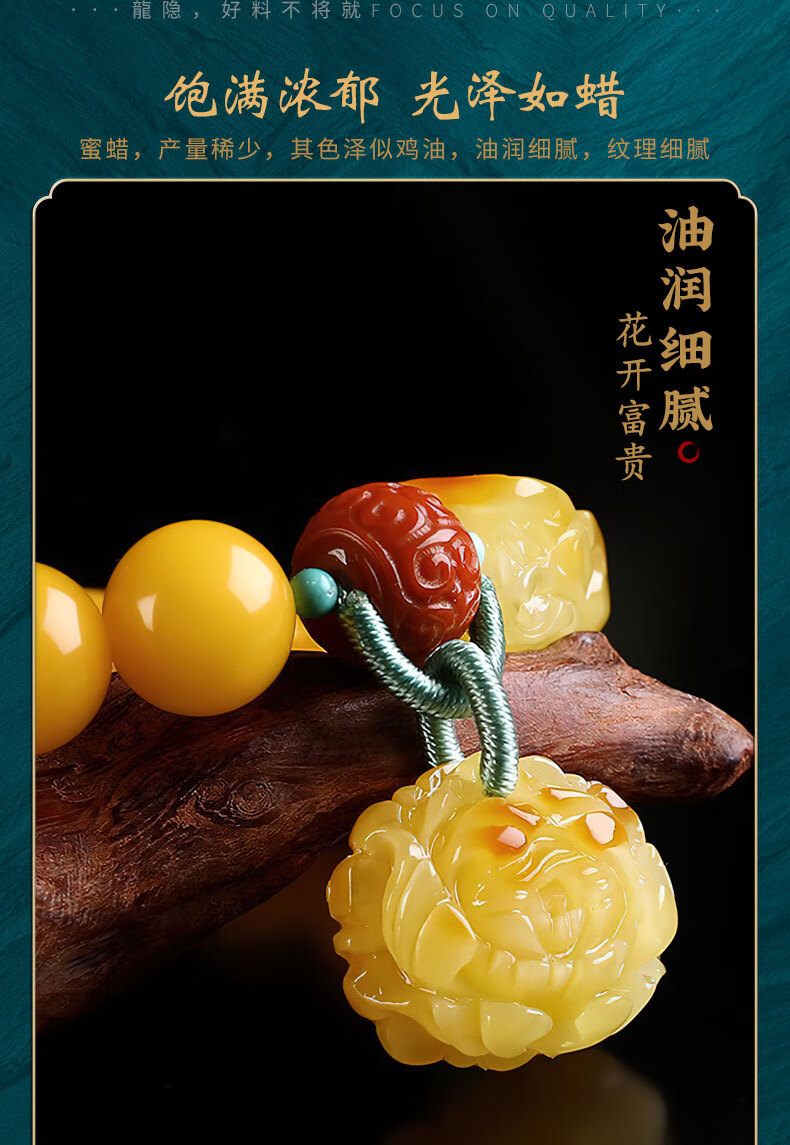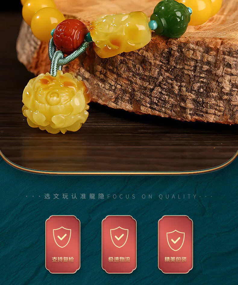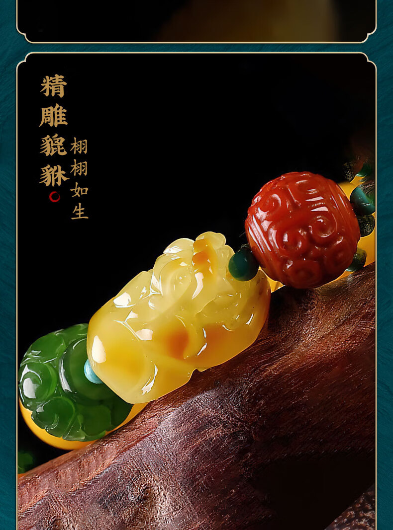 Longyin Natural Beeswax Bracelet Pixiu Amber Bracelet for Men and Women Baltic Chicken Butter Yellow Birthday Gift YJ 10mm