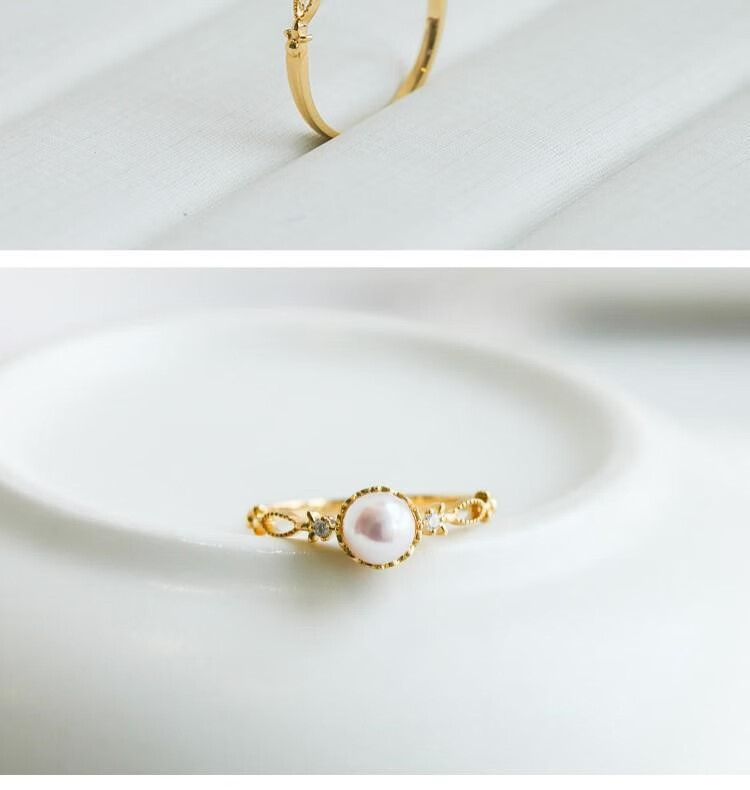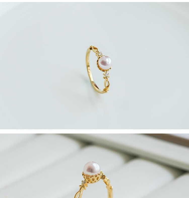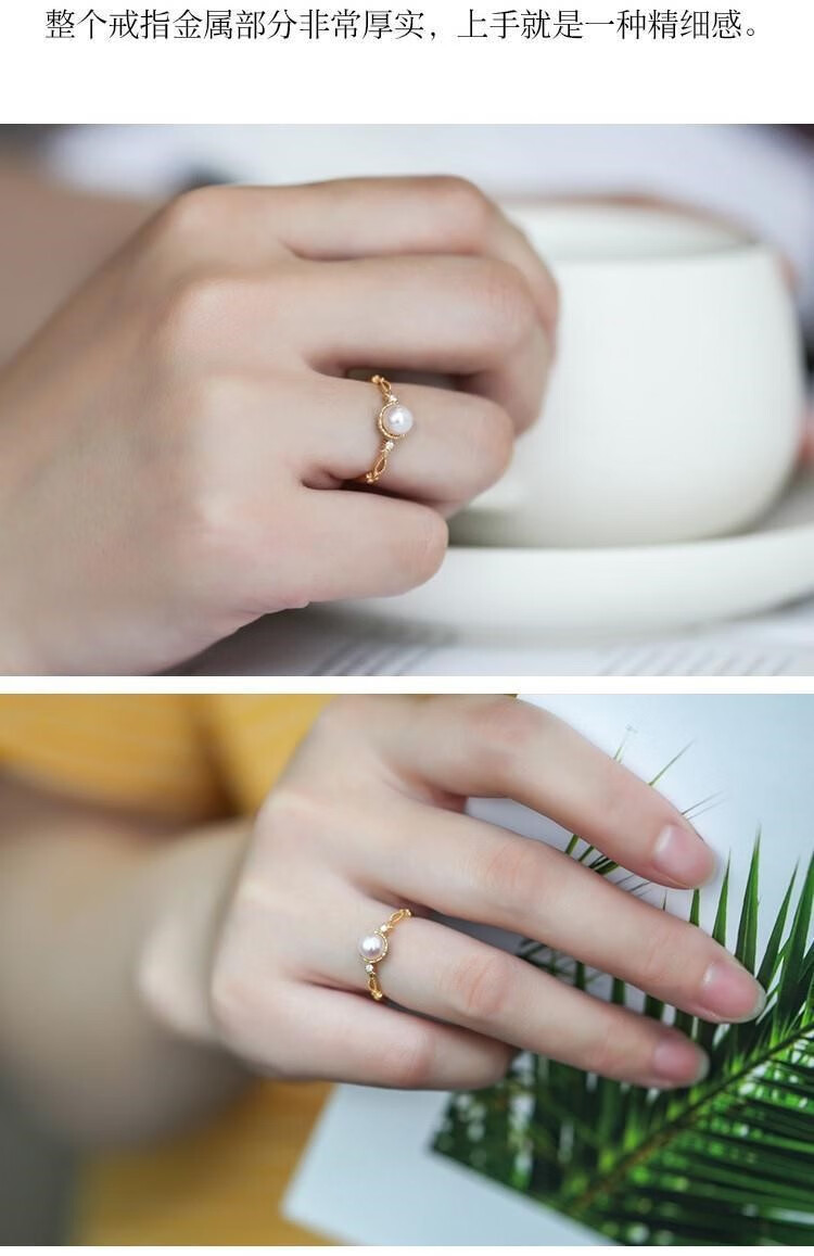SNQP flower bead exquisite pearl 5.2-5.5 gold-plated zircon retro fashion ring women's open index finger ring flower bead ring-US 7 opening