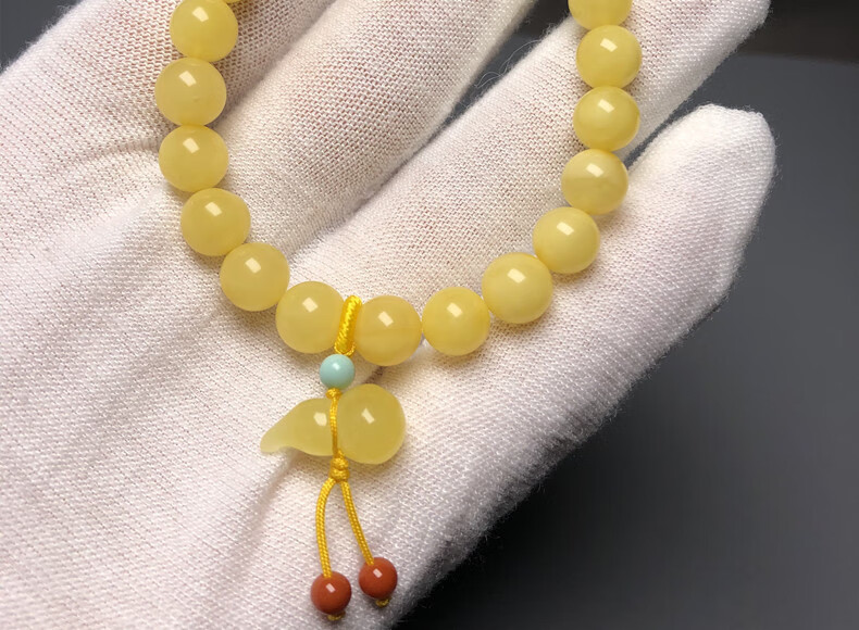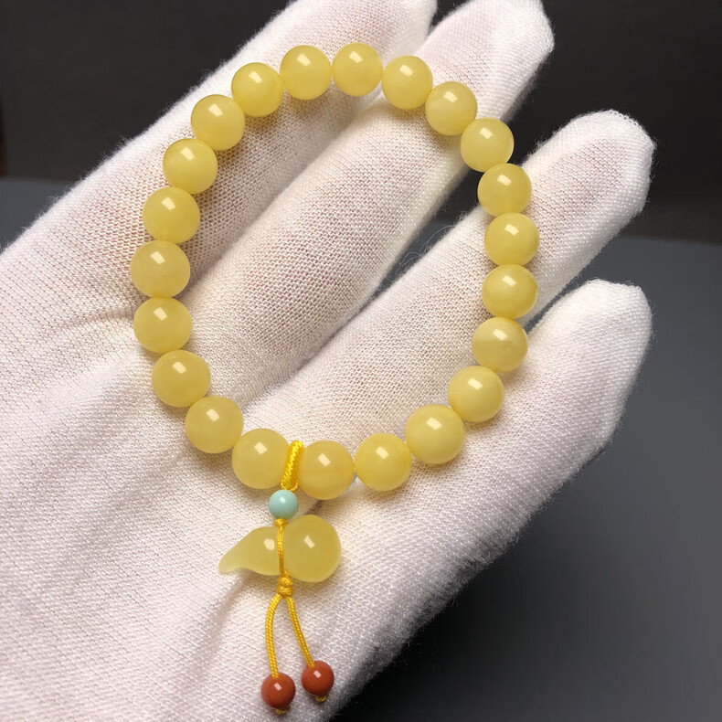 Longyin beeswax bracelet amber bracelet for women and men raw ore 8mm single circle chicken oil yellow with gourd birthday gift YJ 8mm
