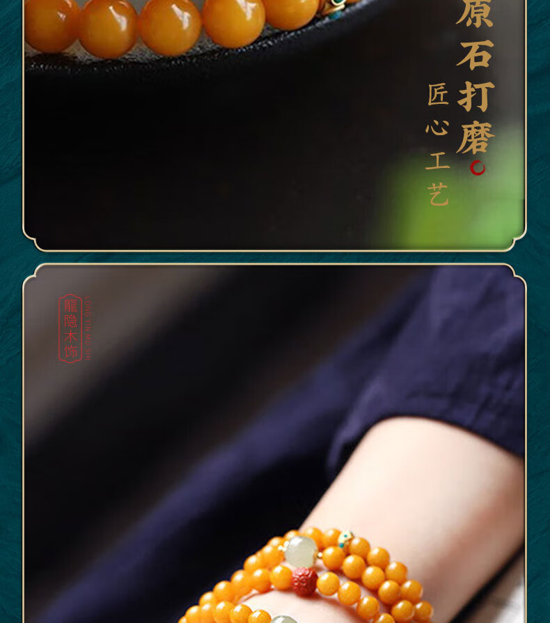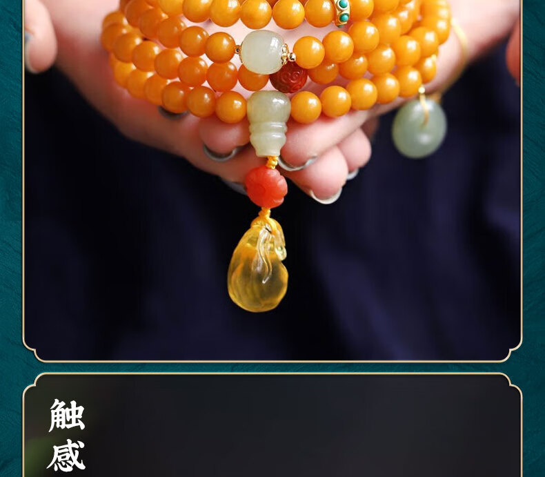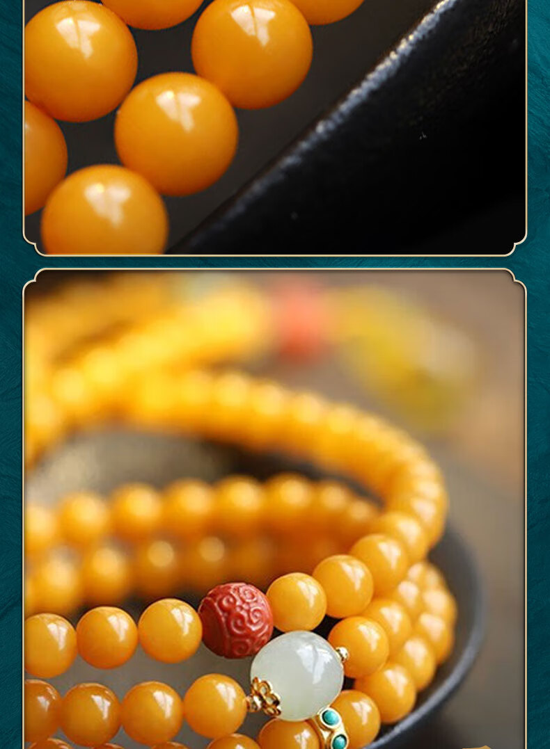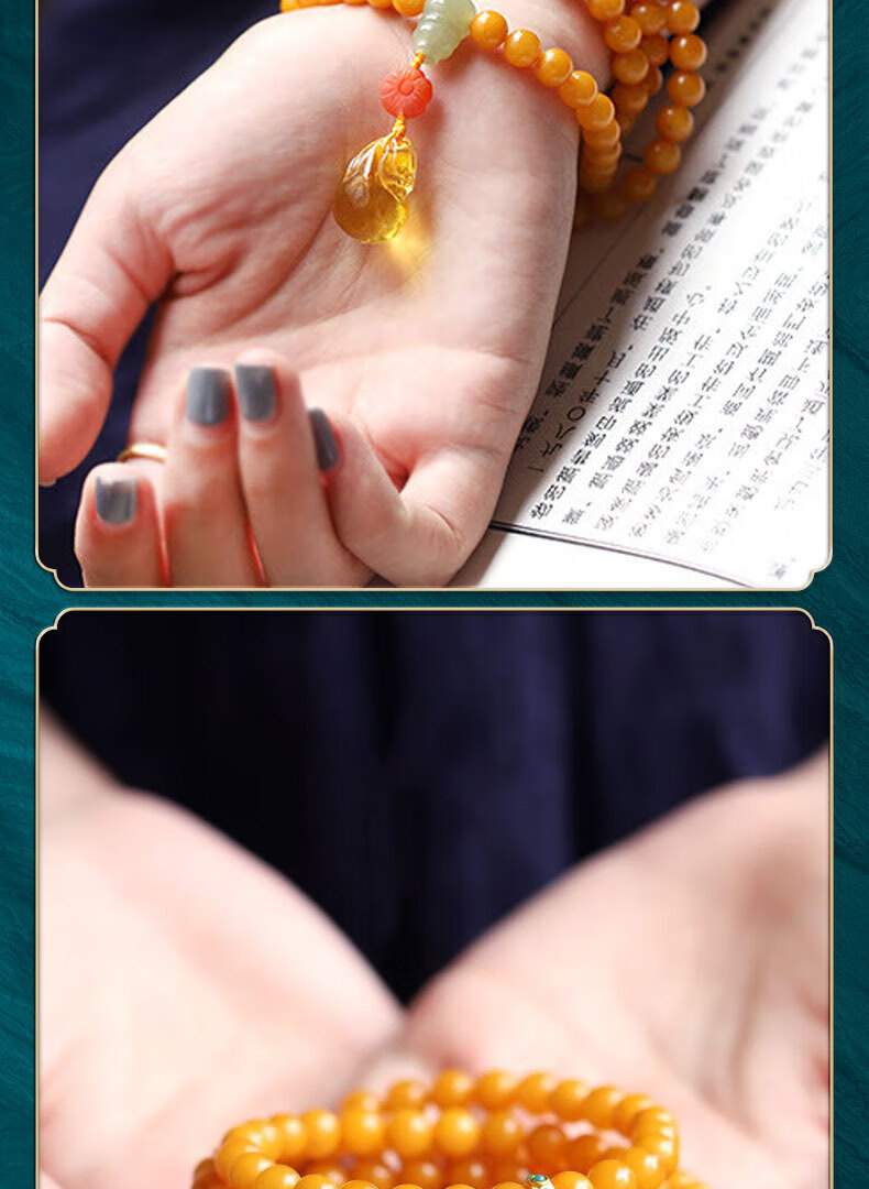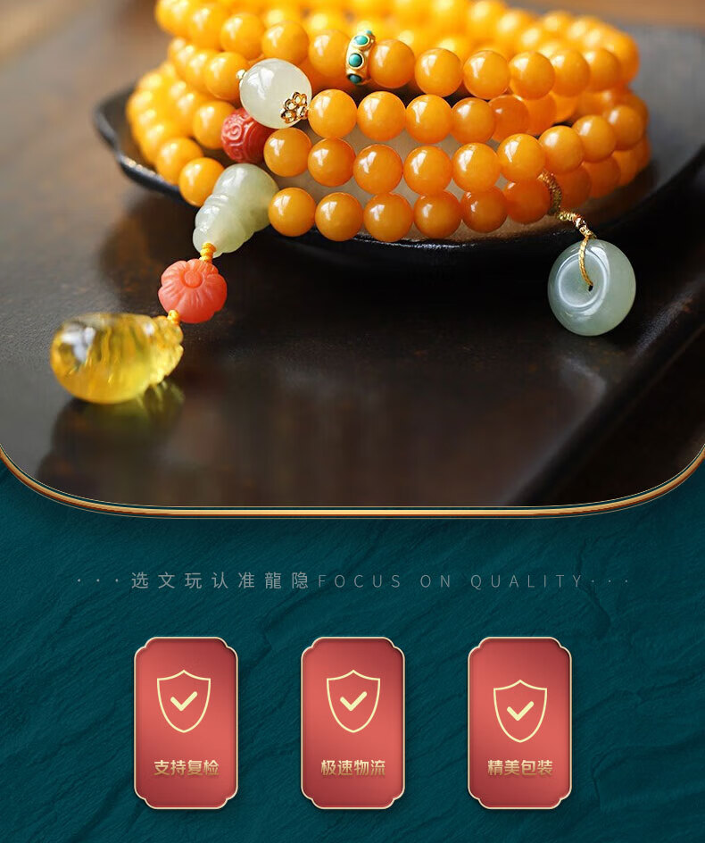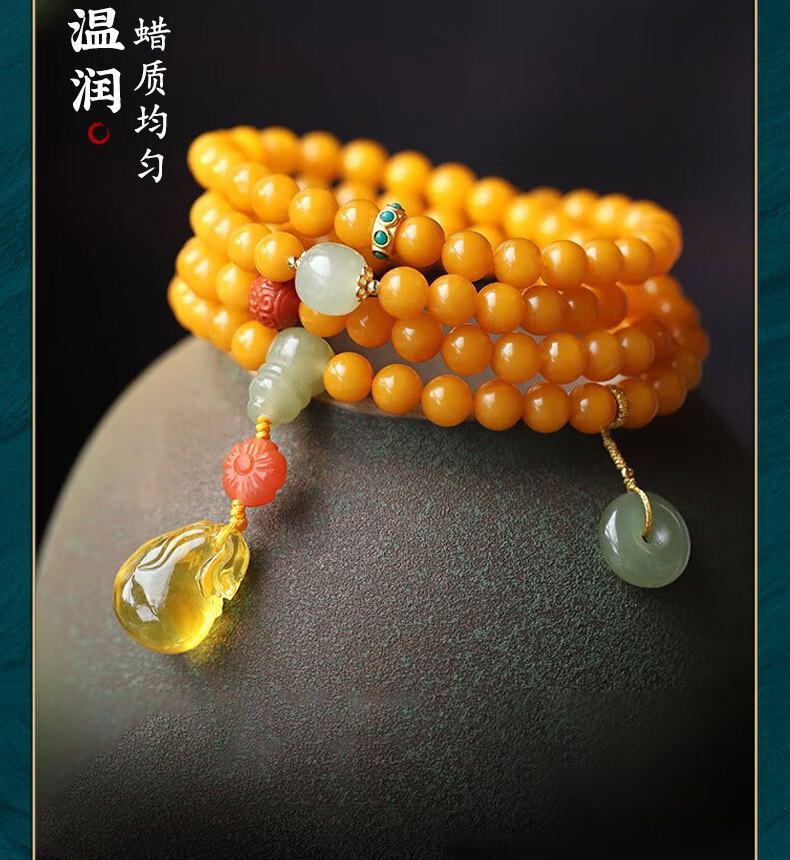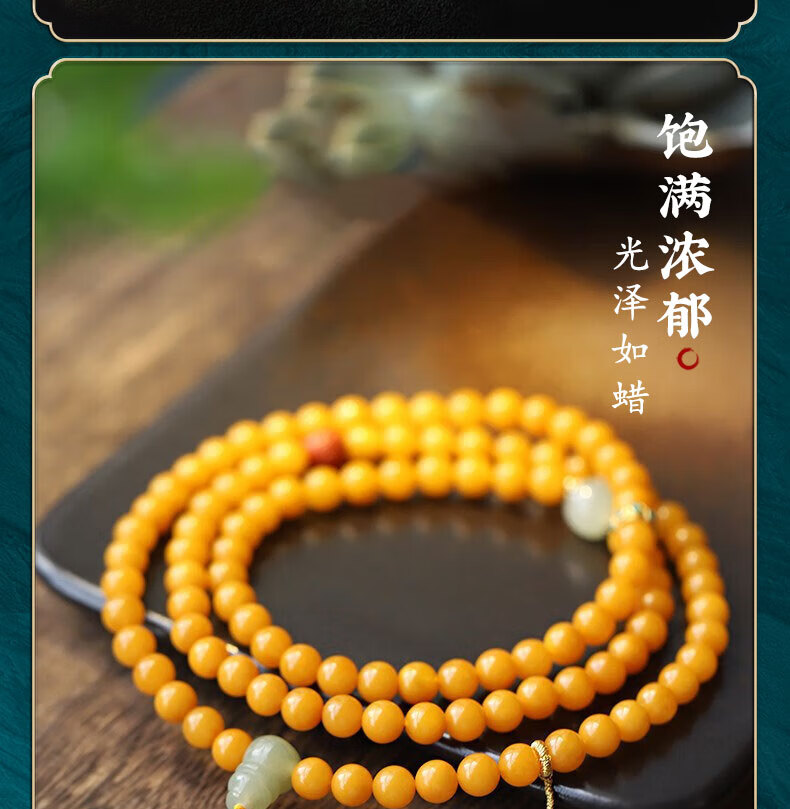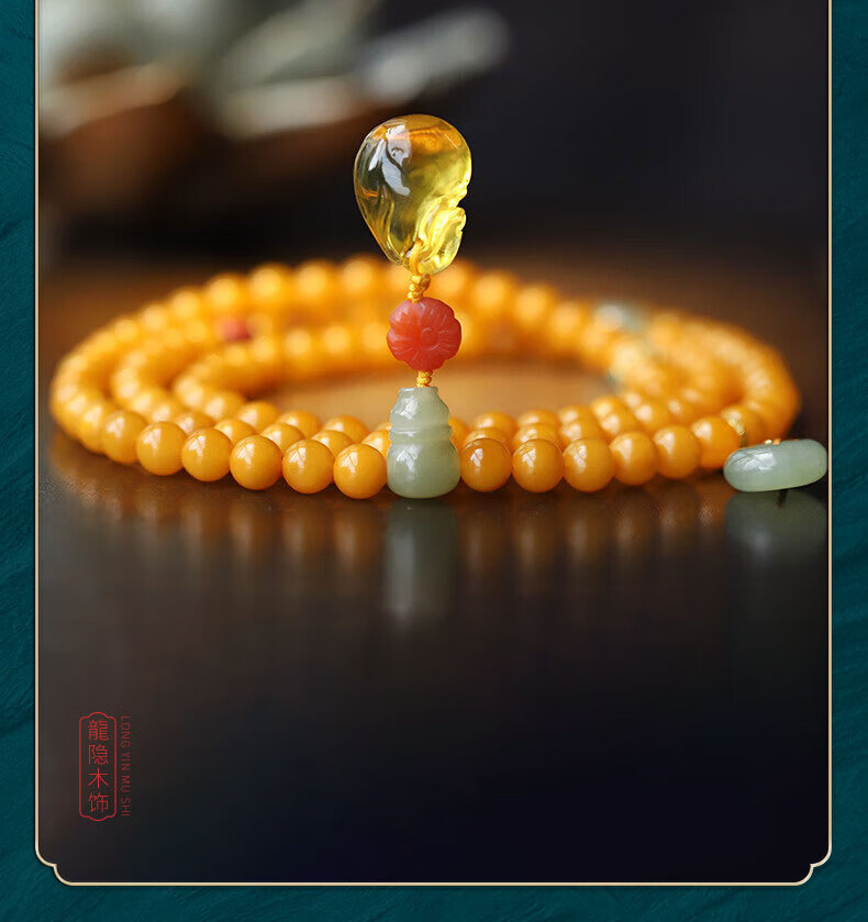 Longyin Baltic Sea Beeswax Bracelet Natural Amber Bracelet Women's 108 Buddha Beads Rosary Birthday Gift YJ 7mm