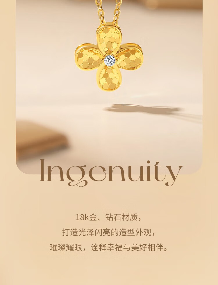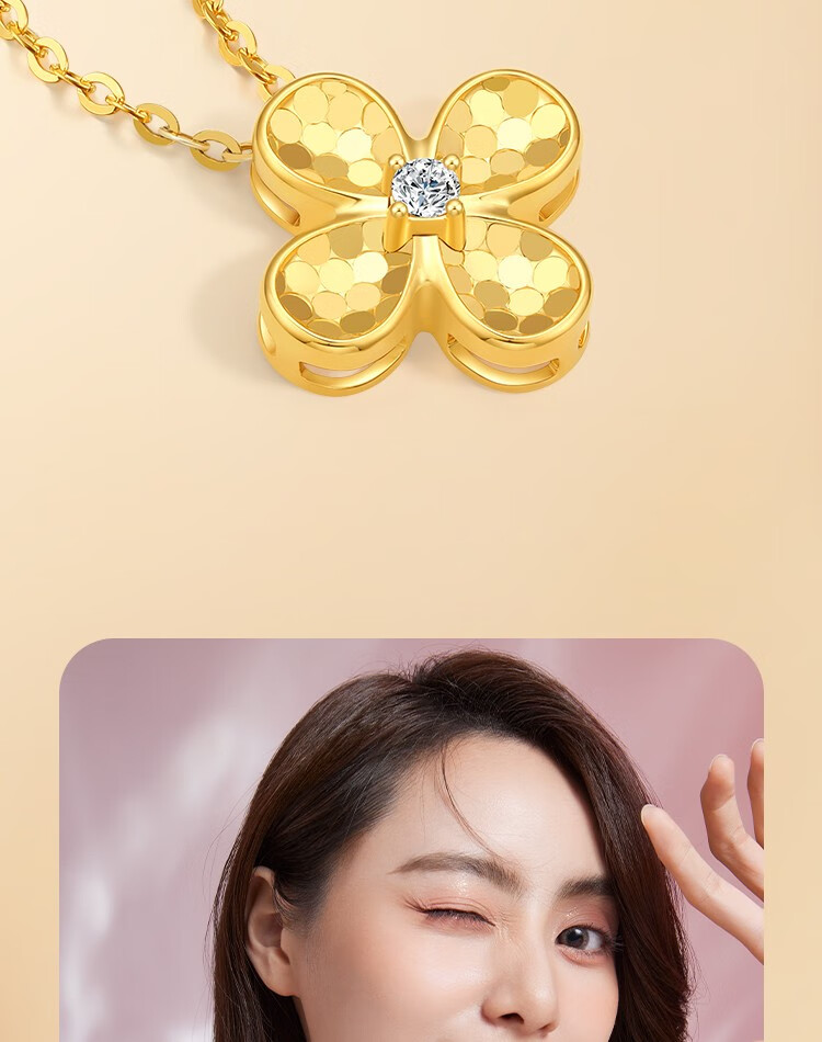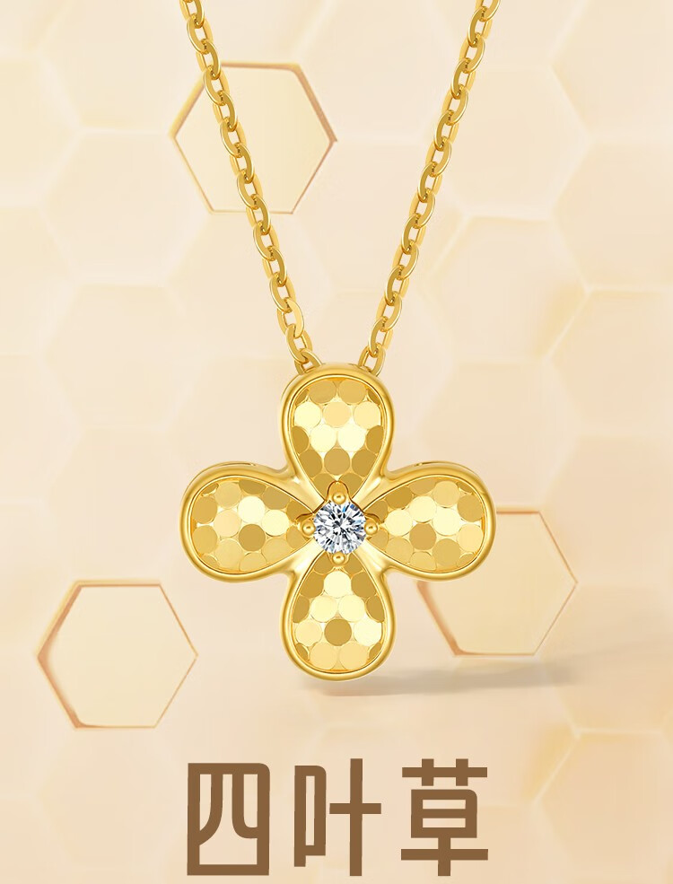 Saturday Fortune (ZLF) 18K gold diamond pendant female four-leaf clover lucky bright sparkling pendant necklace for girlfriend holiday gift T four-leaf clover pendant (chain not included)