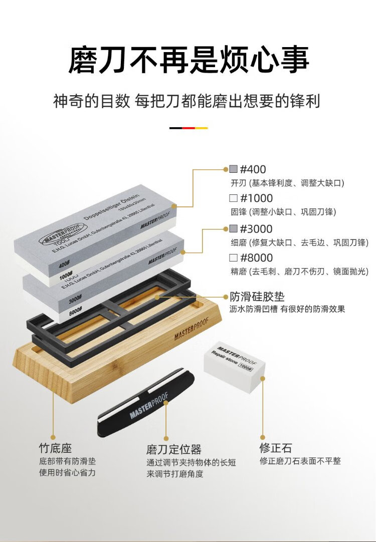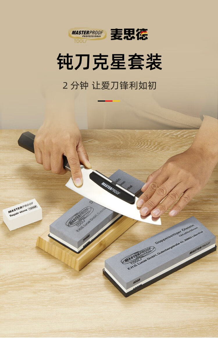 MASTERPROOF whetstone set household thick and thin double-sided oilstone fine grinding coarse grinding whetstone fixed bracket kitchen knife sharpener angle fixer to easily control the sharpening angle