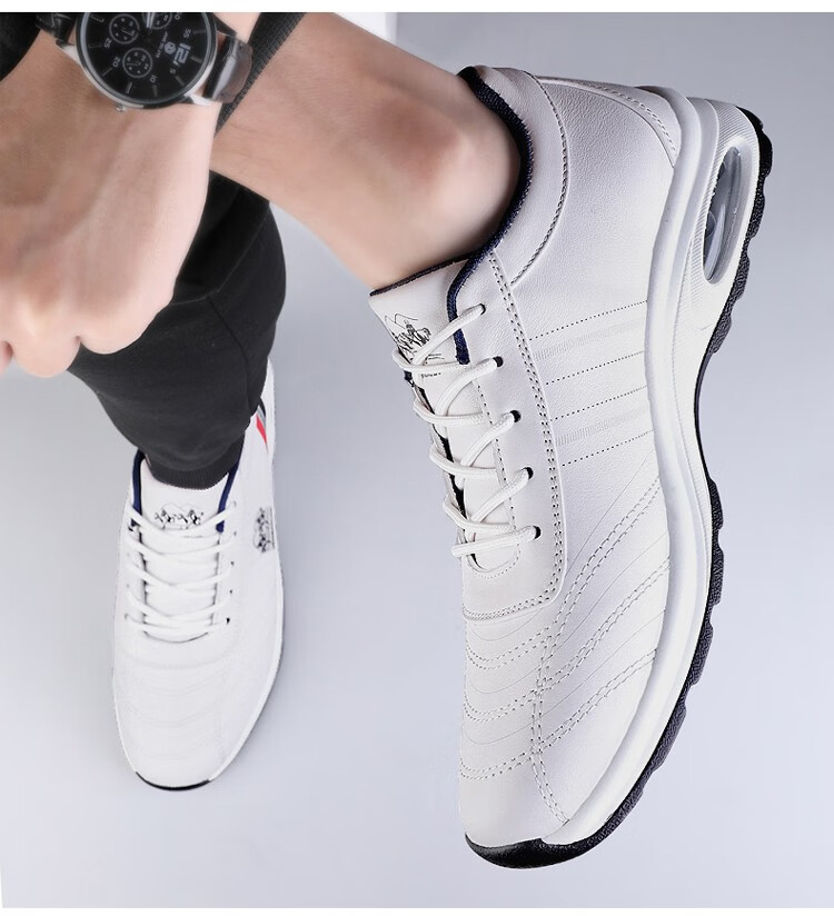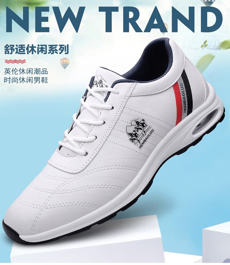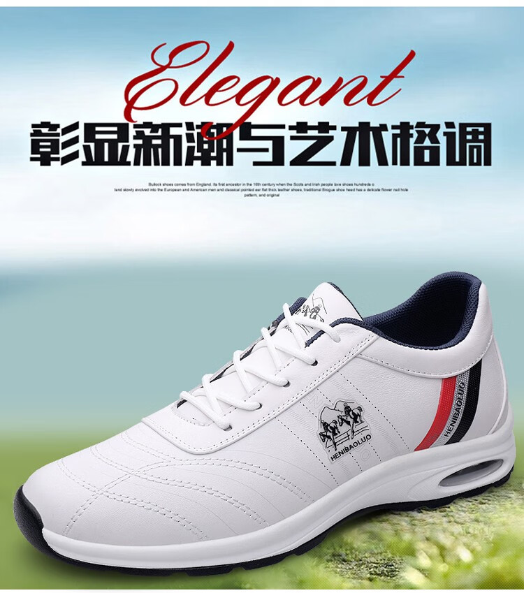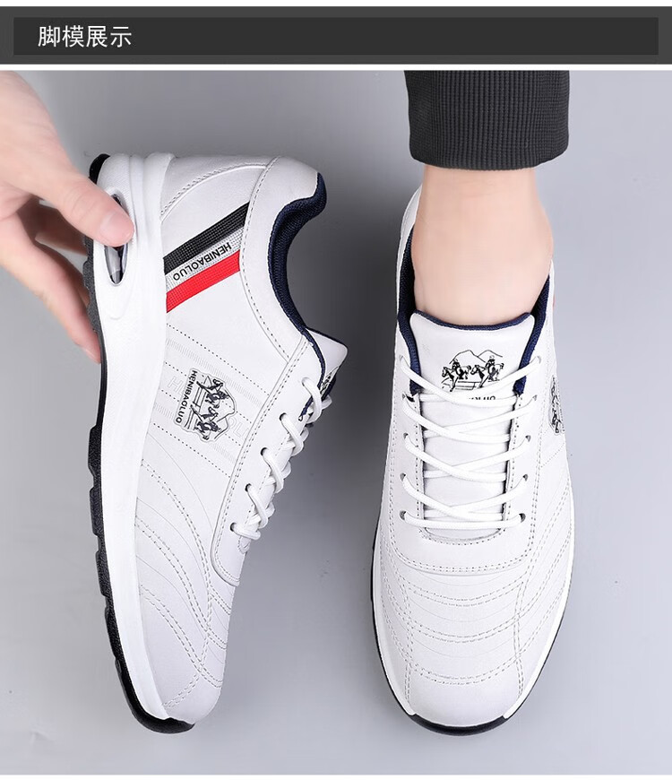 HENIBAOLUO men's shoes, sports shoes, men's high-end first-layer cowhide casual shoes, brand business leather shoes, genuine cowhide, versatile travel shoes for men, white flat bottom 42 (260mm) first-layer cowhide