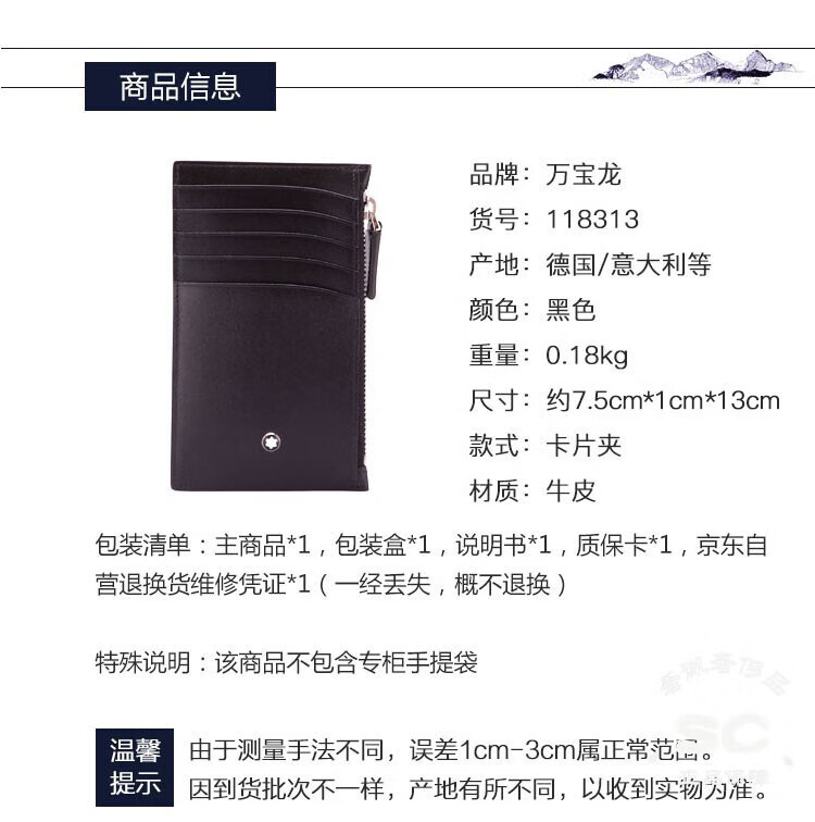 Montblanc (MONTBLANC) Spring Festival Gift Meisterstück Series Black Cowhide Zipper Card Holder 118313 Black One Size