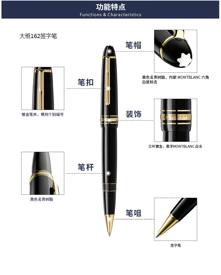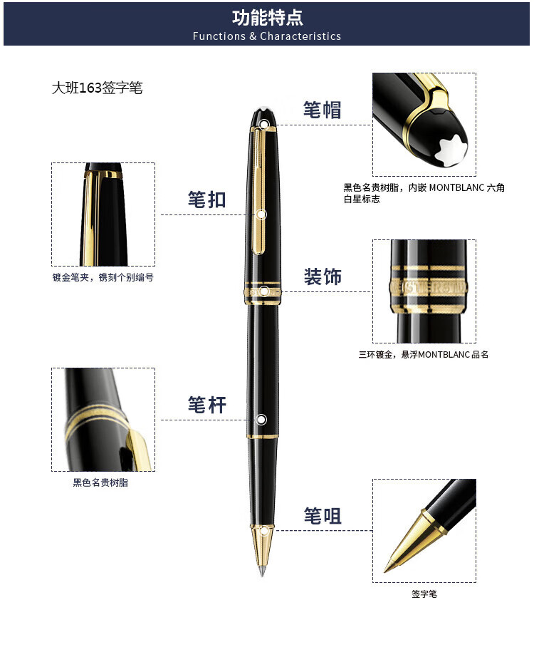 Montblanc (MONTBLANC) Spring Festival gift Meisterstück series signature pen ballpoint pen classic 163 gold-plated 12890