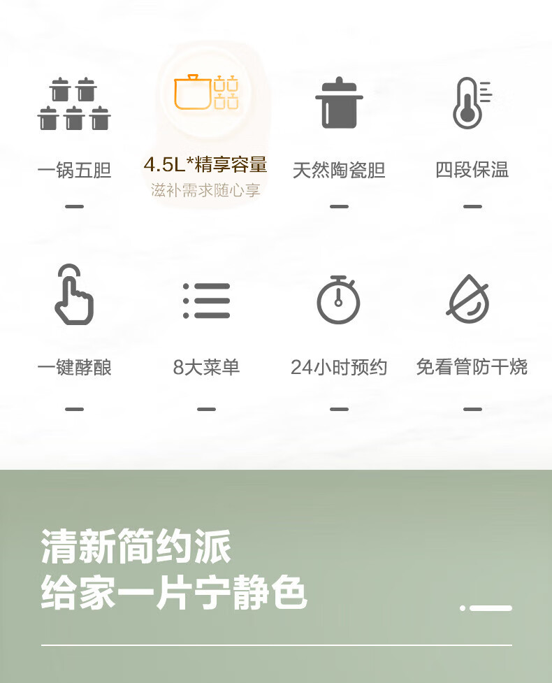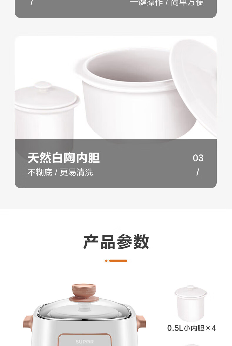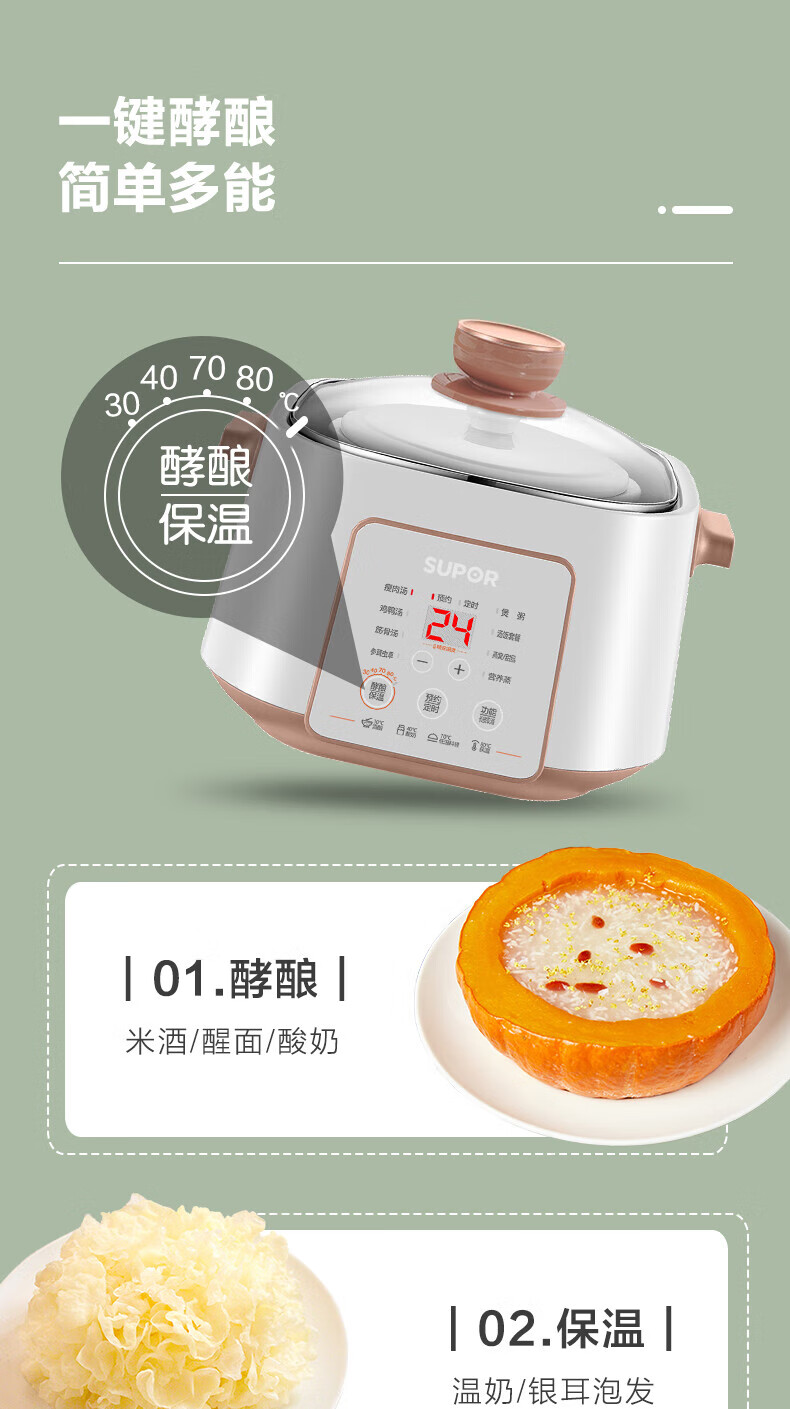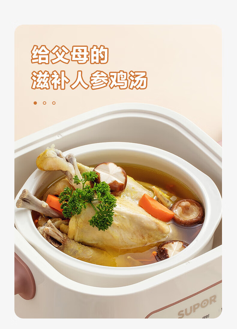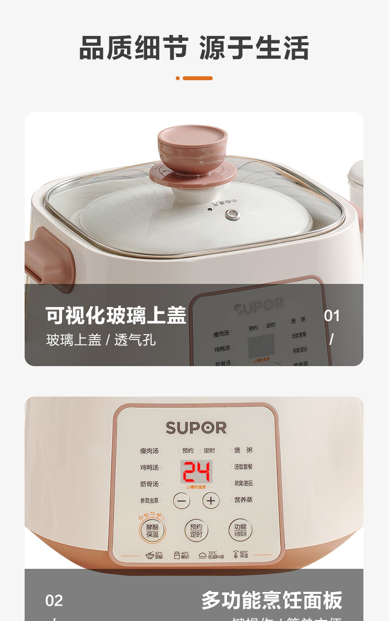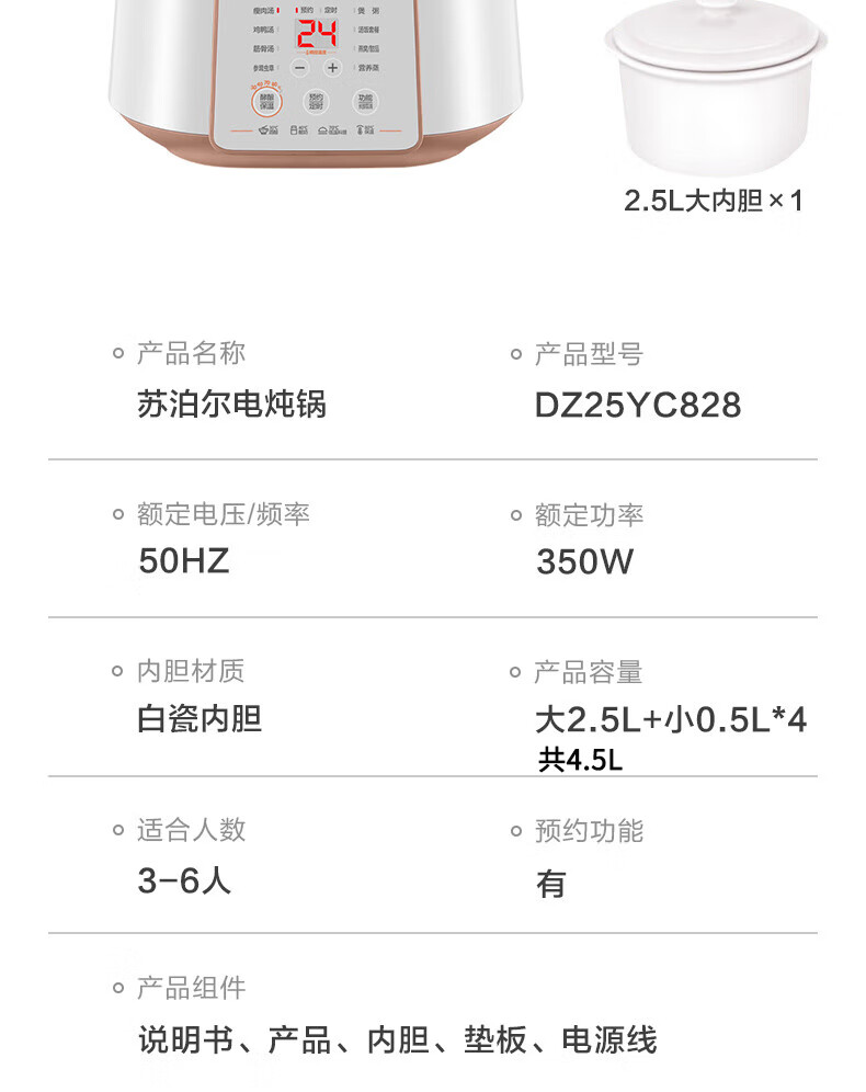 SUPOR electric stew pot, water-proof stew pot, household use for 3-4 people, large capacity soup pot, stew pot, electric stew pot, 5 gallbladders in one pot, porridge cooker, food supplement pot, electric steamer, multifunctional, 4.5L white ceramic inner pot, 2.5L+0.5L*4 2.5L