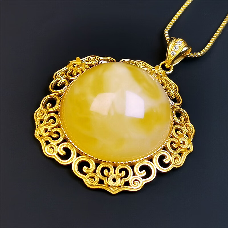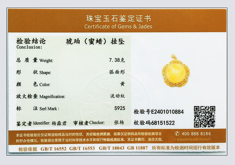 Amber School One thing, one picture, one certificate, beeswax pendant, clavicle chain necklace, natural amber necklace, 925 silver buckle silver chain, beeswax pendant, 7.38g, 31*11mm