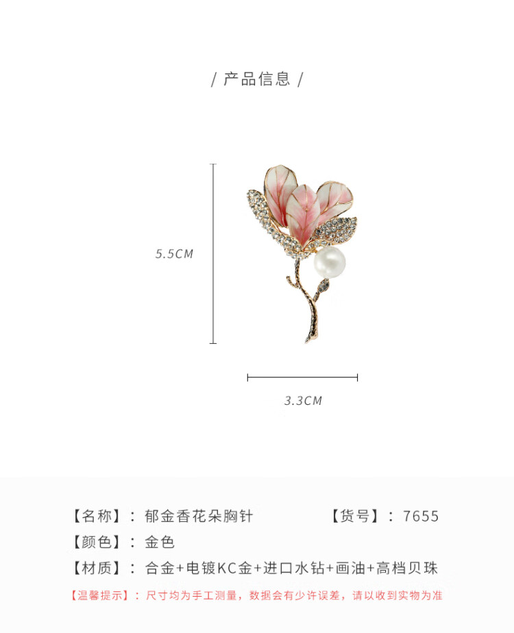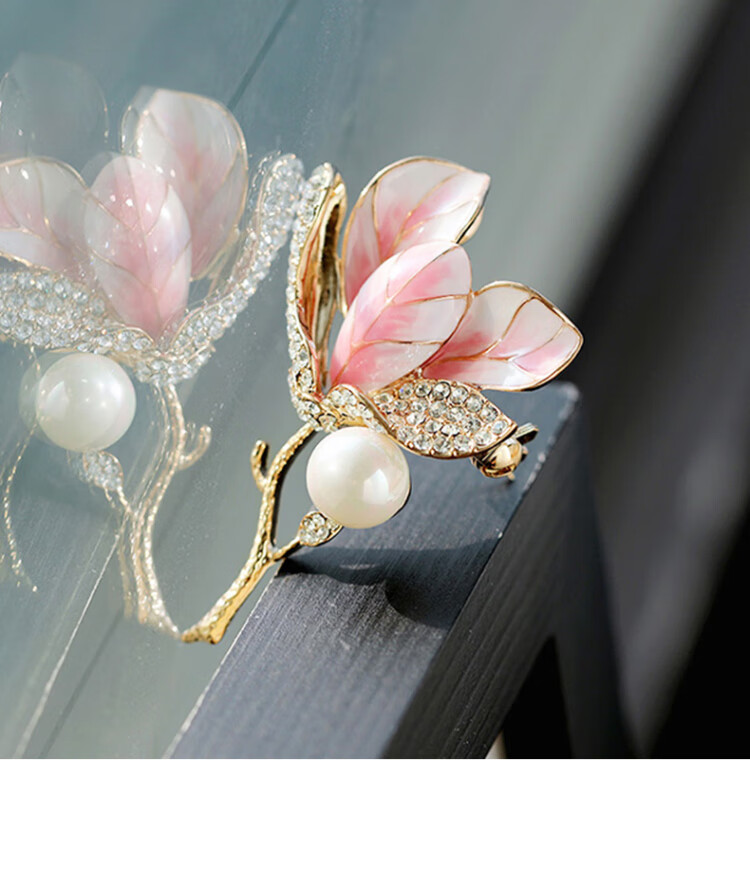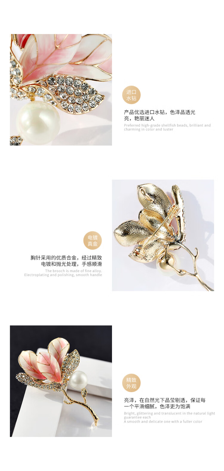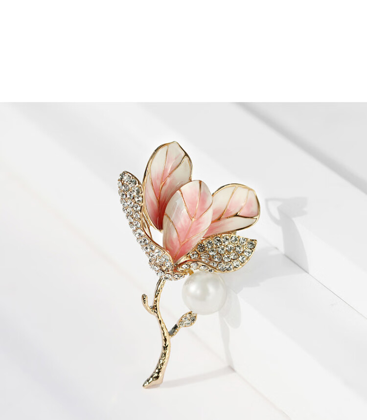 SNQP official quality Swarovski zirconium magnolia flower brooch for women high-end light luxury 7655-1 elegant flower brooch pink