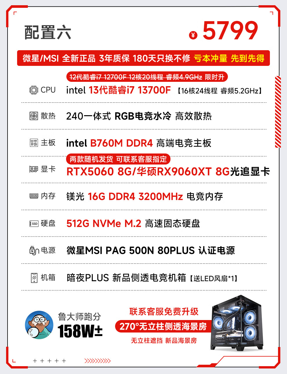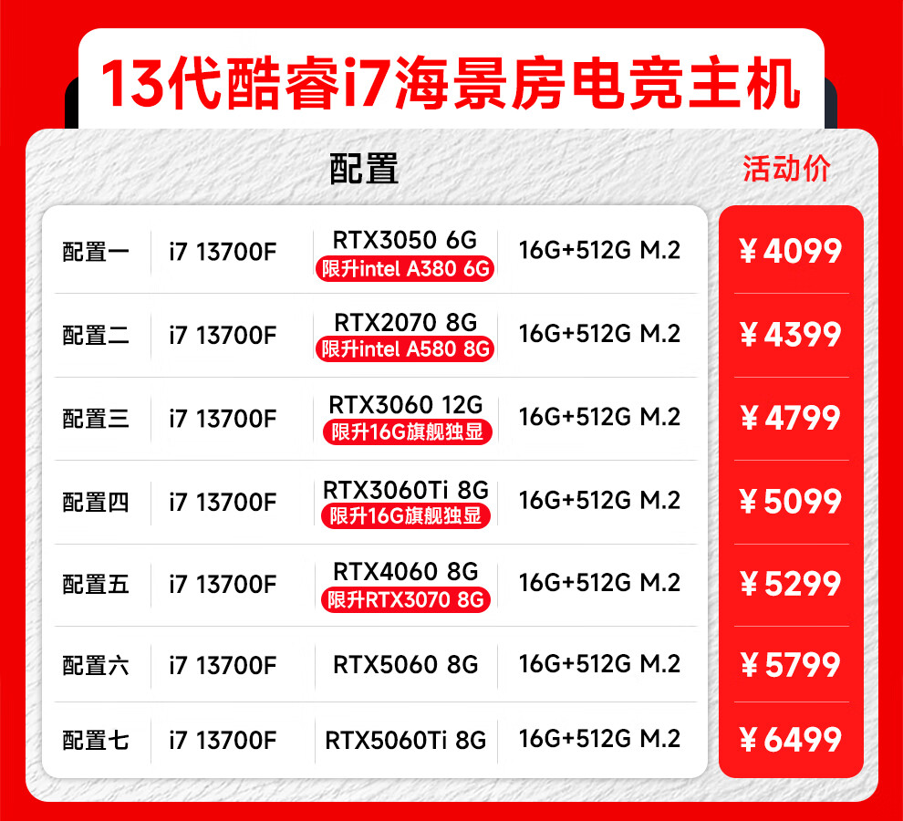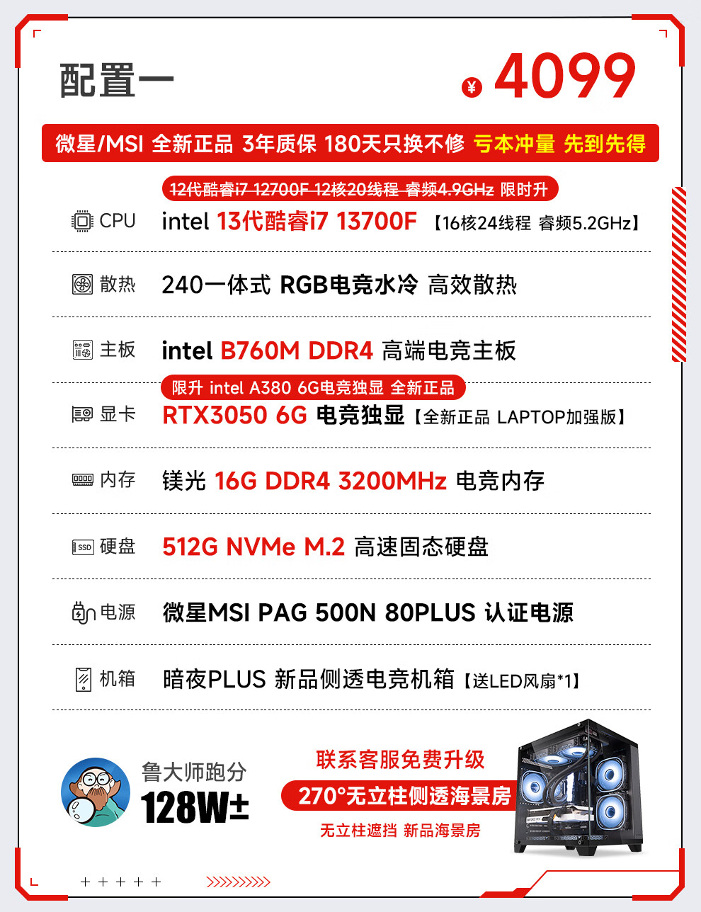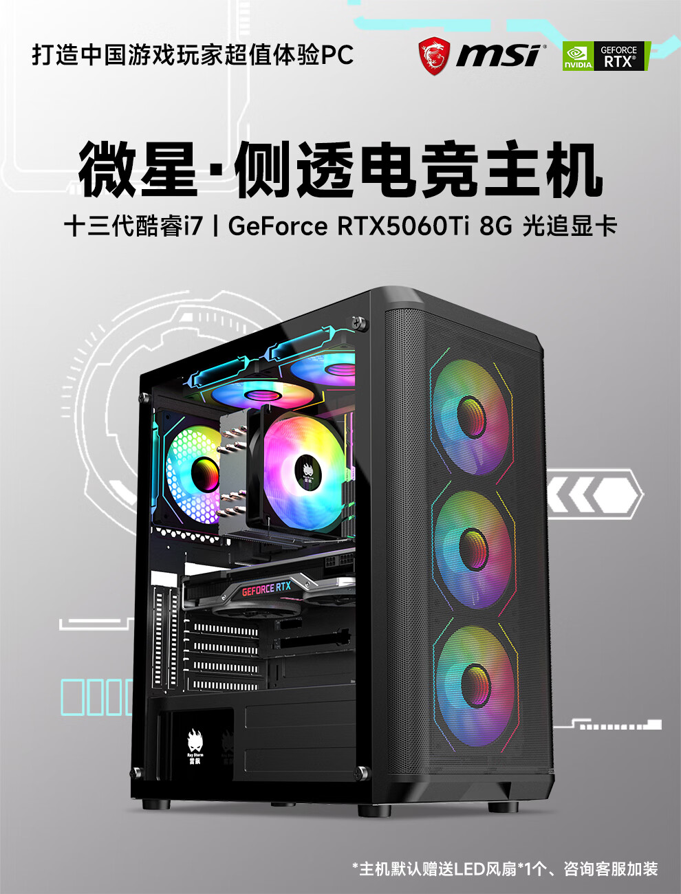 MSI 13th generation i7 13700F/RTX5060/4060/3060 desktop computer host e-sports game live broadcast design rendering DIY assembly machine complete machine configuration 2 i7 13700F+RTX2070 8G