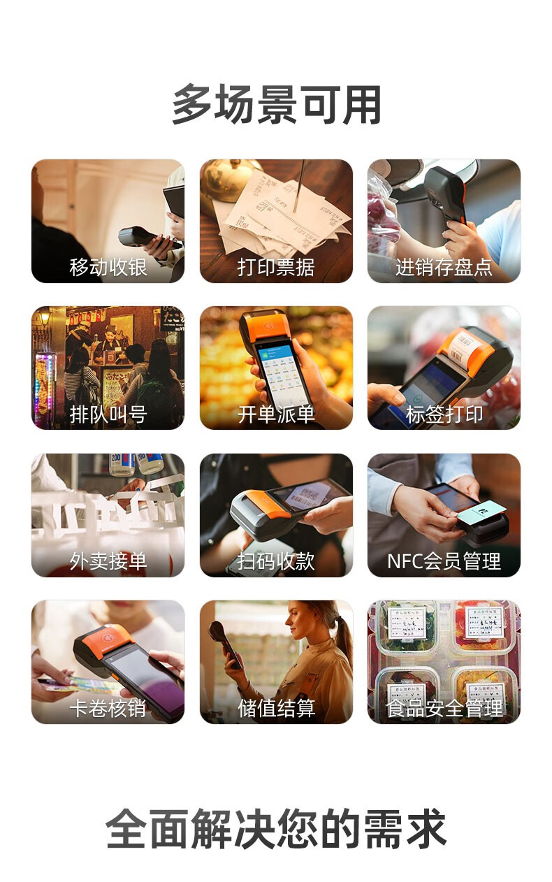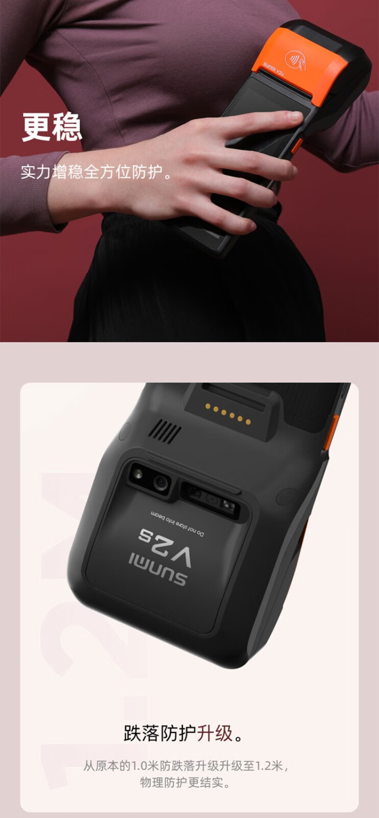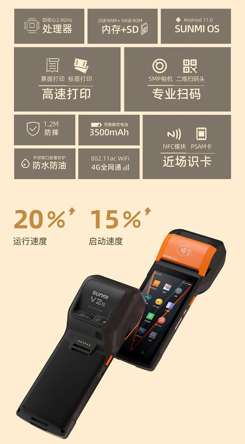 SUNMI V2s mobile ordering cash register for retail convenience stores and restaurants, scan QR code to collect payment, queue up and call number, NFC swipe card, consumer membership management, parking fee receipt label printing V2S (standard version)