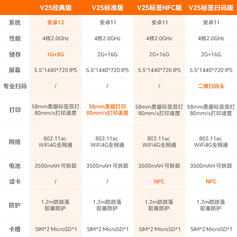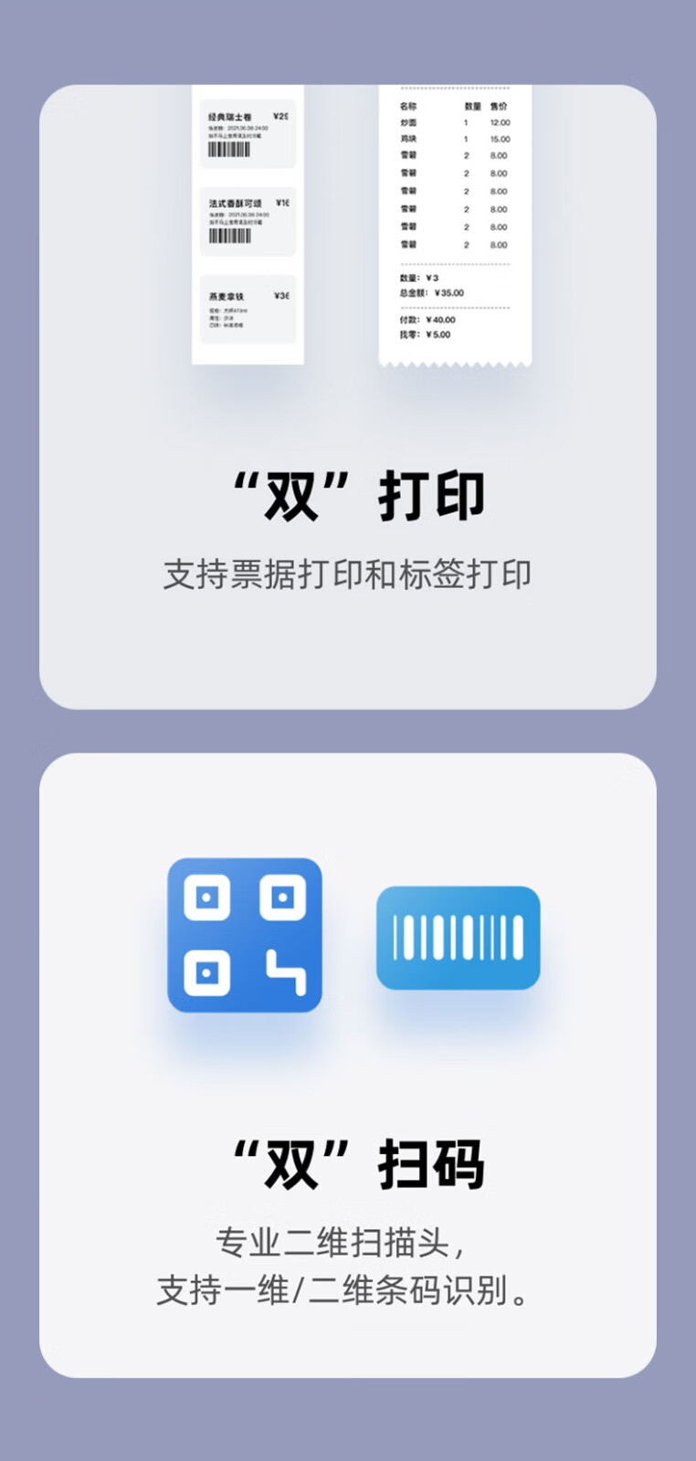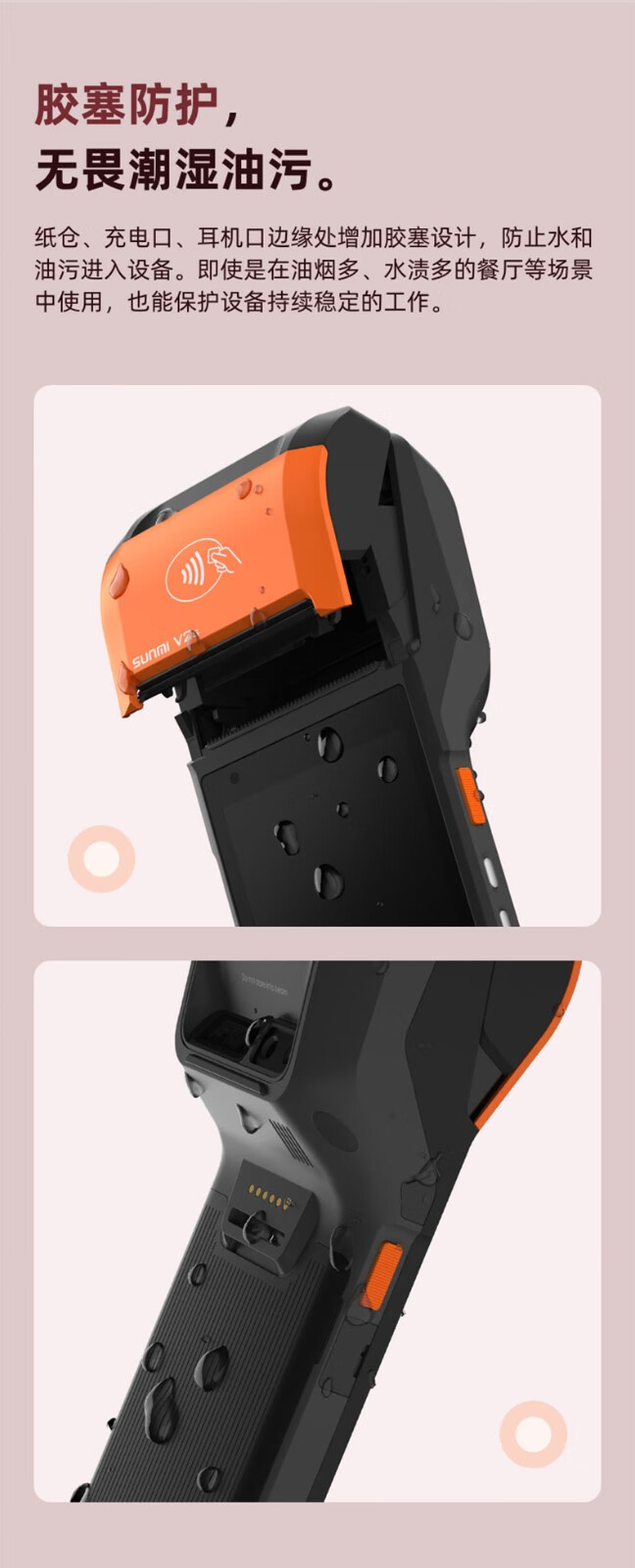 SUNMI V2s mobile ordering cash register for retail convenience stores and restaurants, scan QR code to collect payment, queue up and call number, NFC swipe card, consumer membership management, parking fee receipt label printing V2S (standard version)