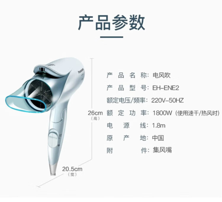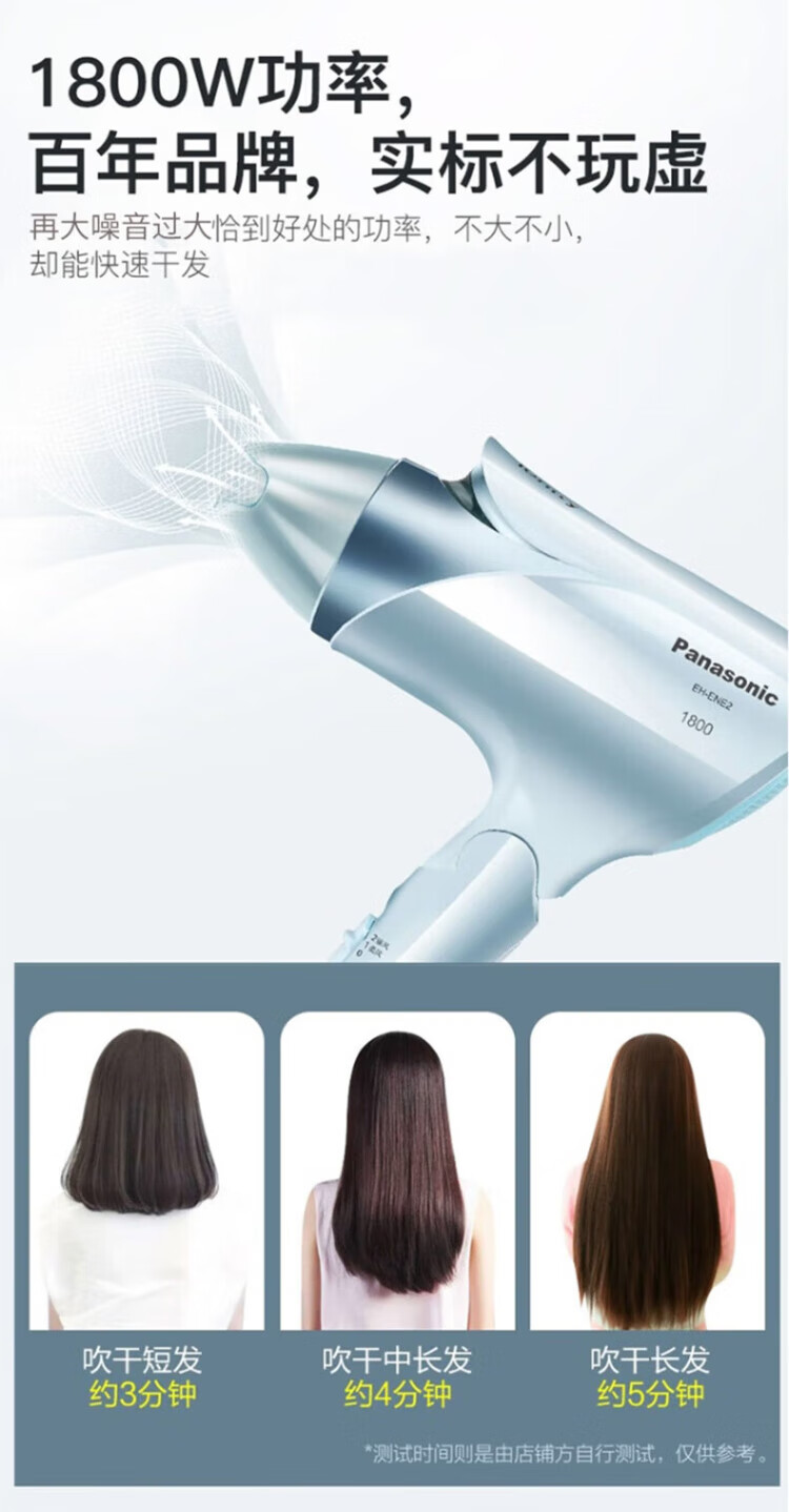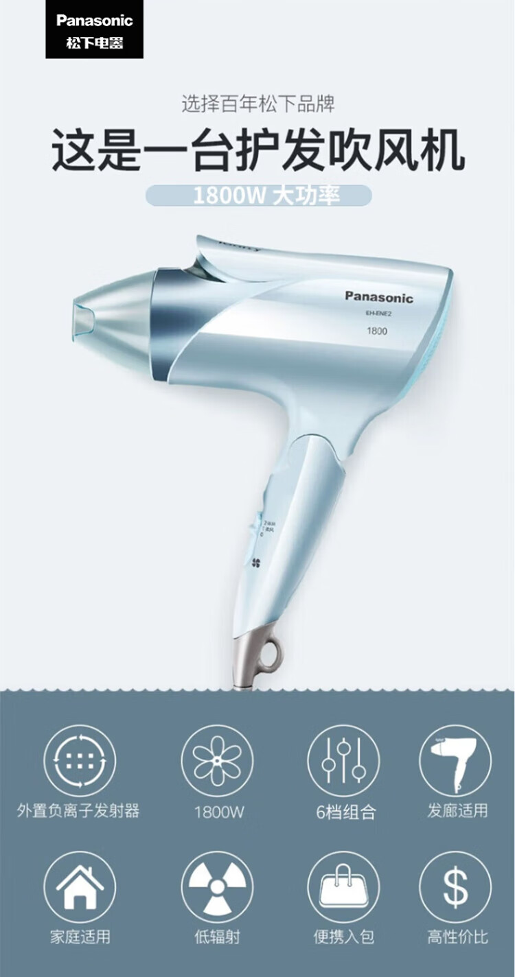 Panasonic (Panasonic) national subsidy high-speed hair dryer household high-power quick-drying negative ion hair dryer portable folding does not hurt send girls friends birthday gifts 1800W high power negative ion hair care ENE2