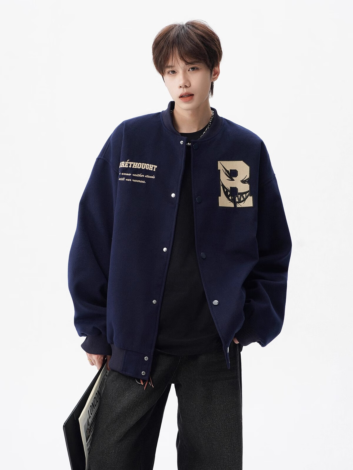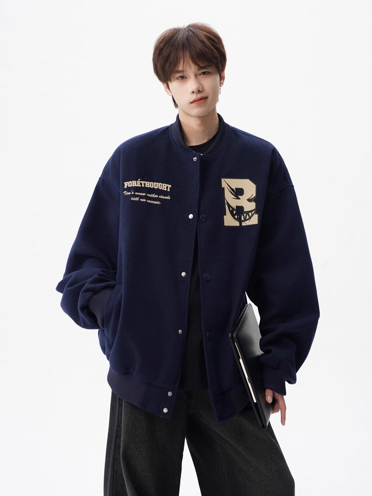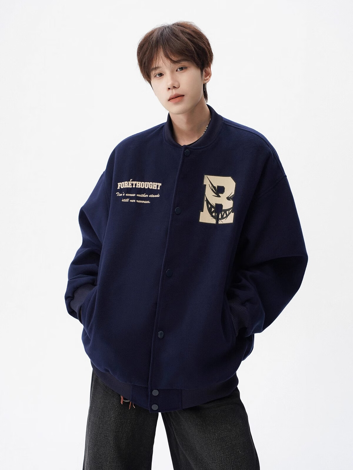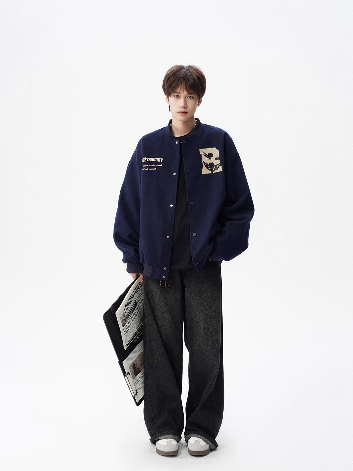 OEMG American retro baseball jacket men's spring, autumn and summer design trendy brand high street tops loose casual jacket navy blue XL recommended 120-135 Jin Jin equals 0.5 kg