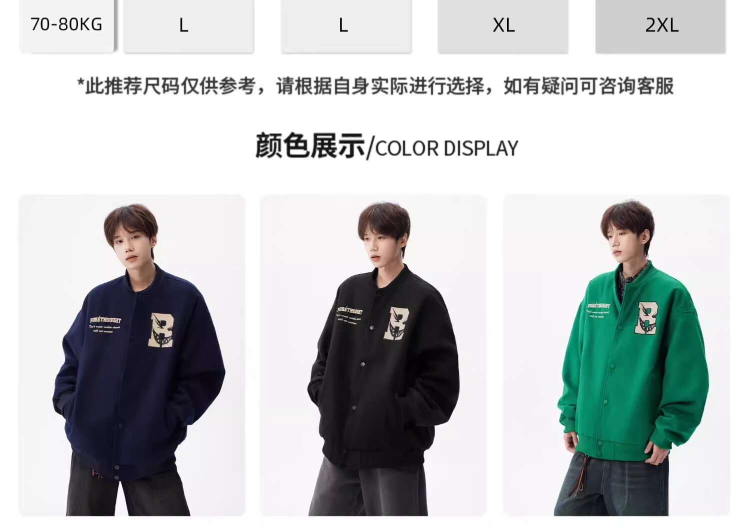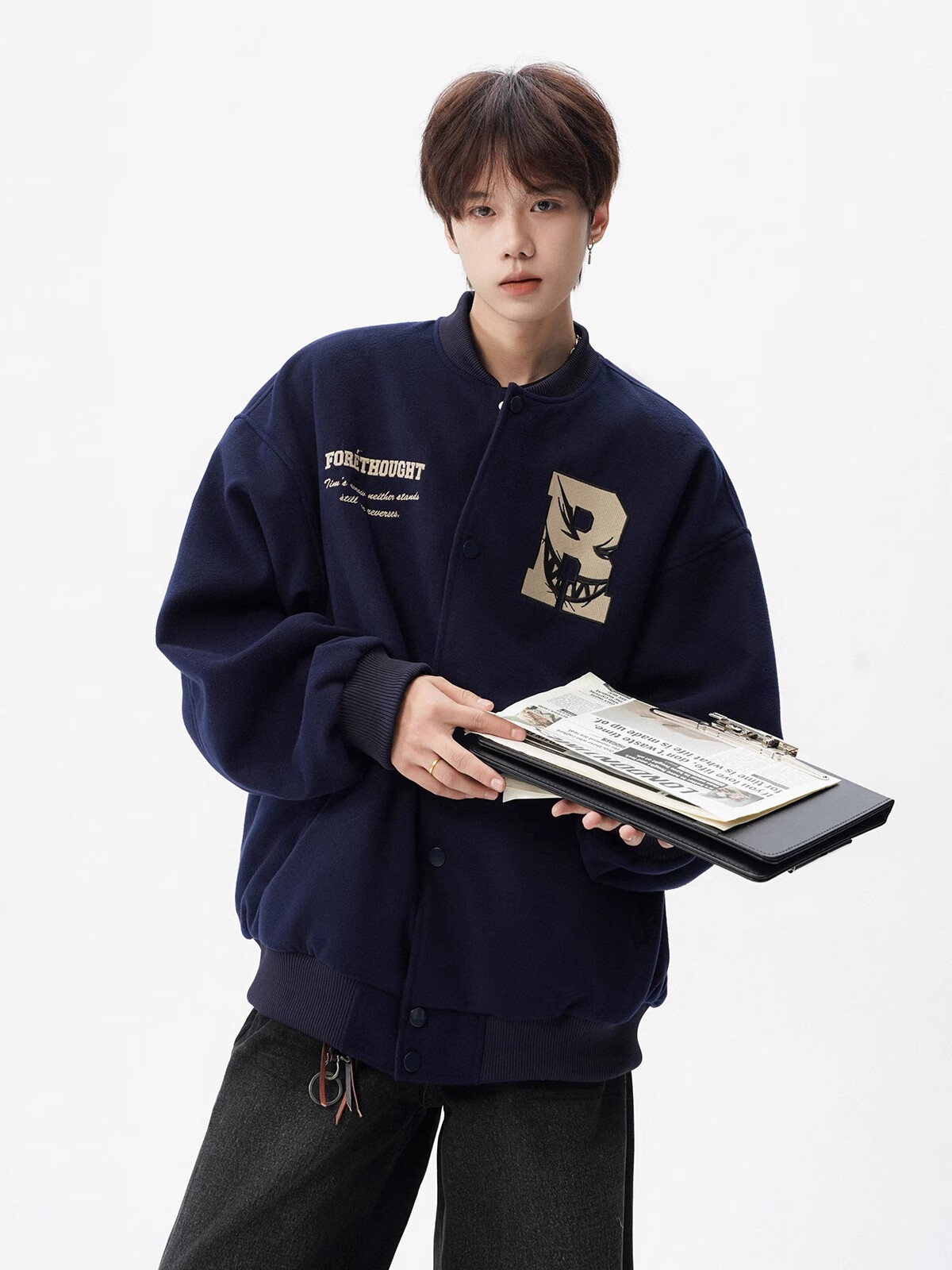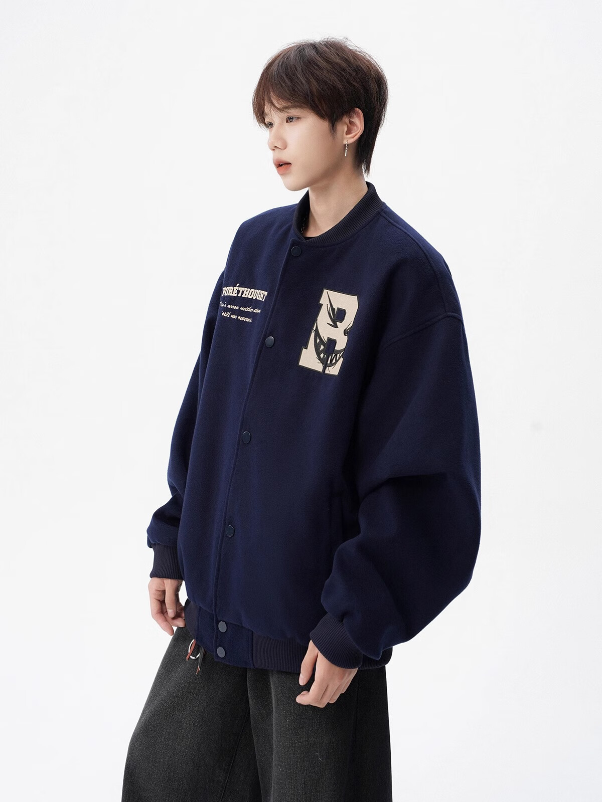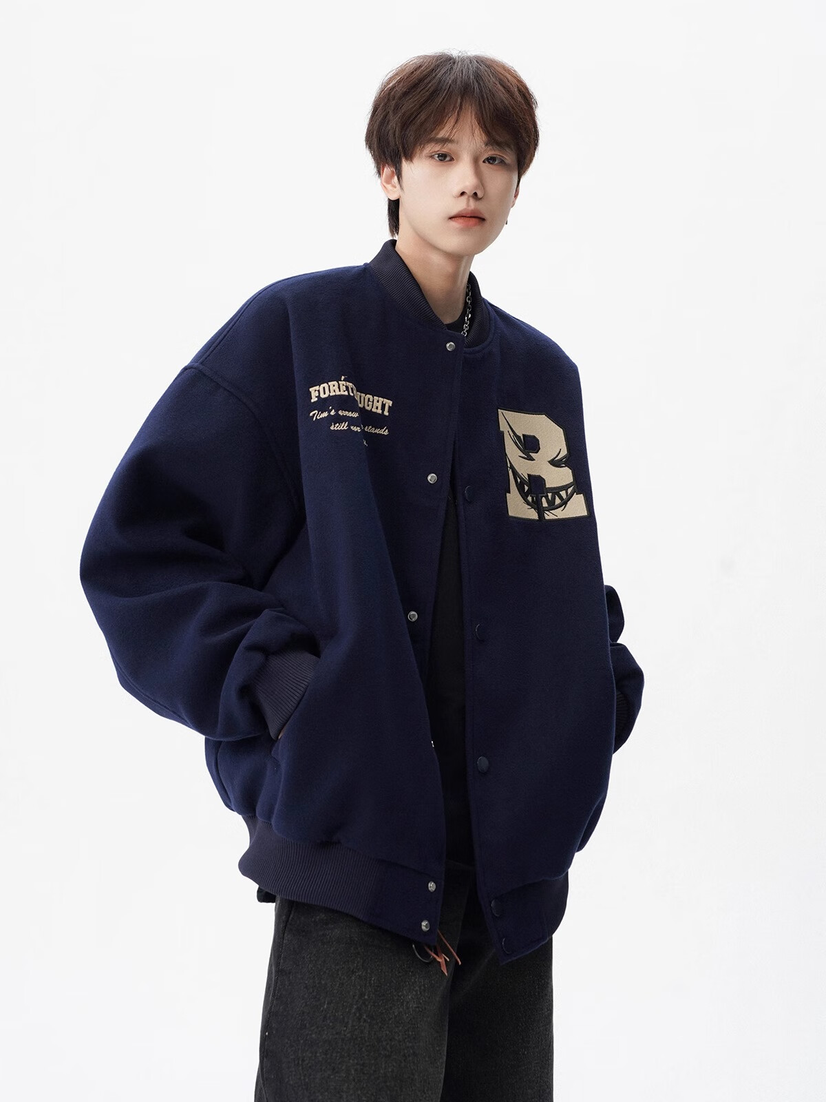 OEMG American retro baseball jacket men's spring, autumn and summer design trendy brand high street tops loose casual jacket navy blue XL recommended 120-135 Jin Jin equals 0.5 kg
