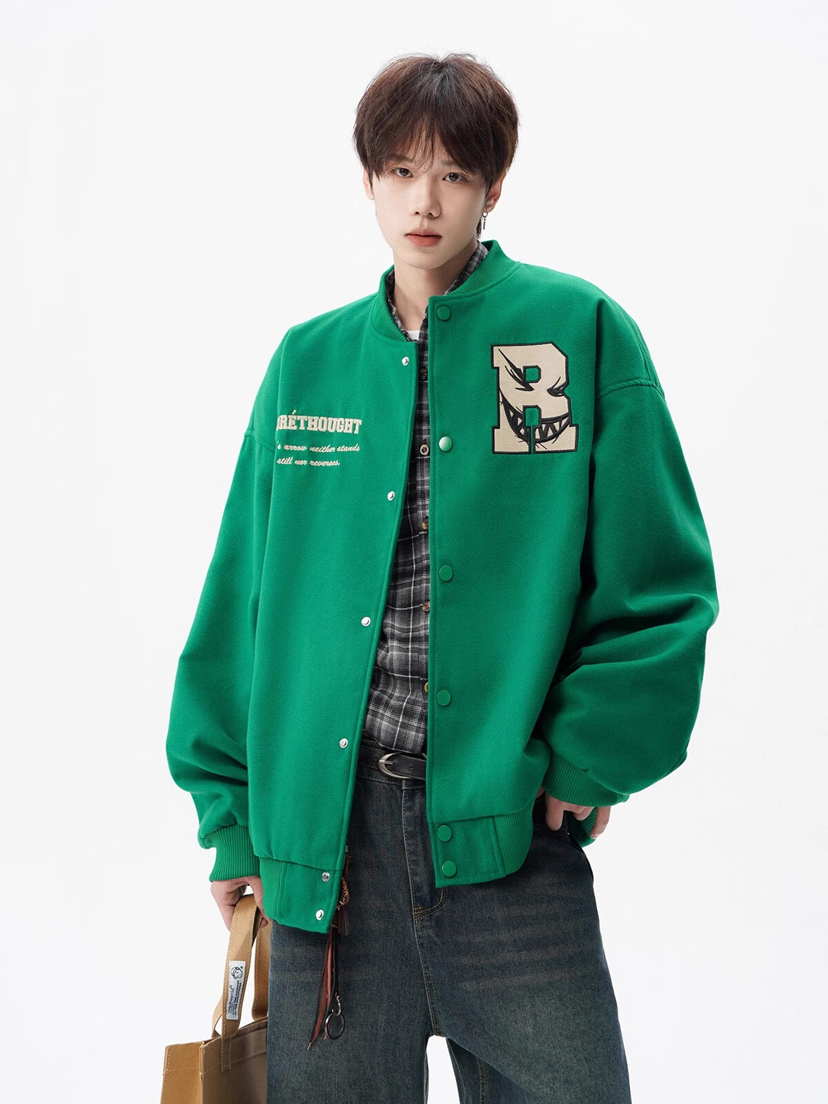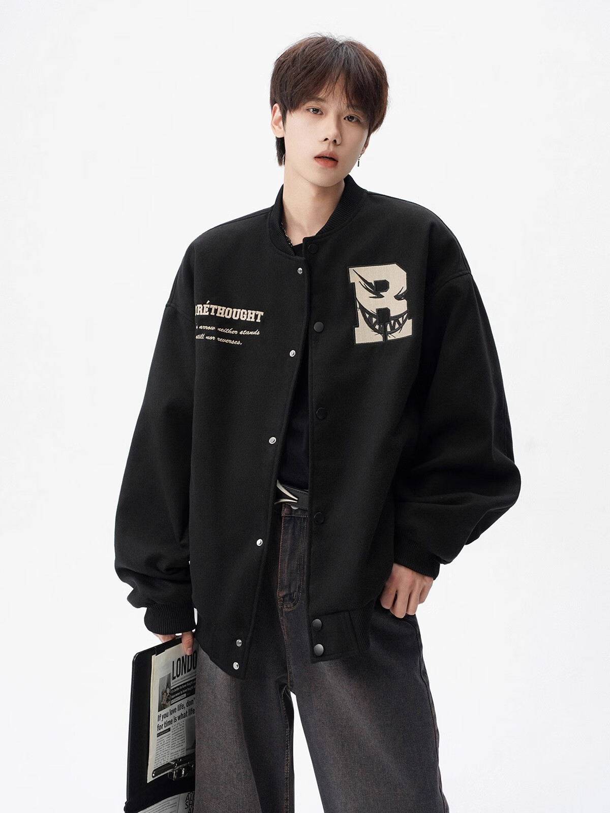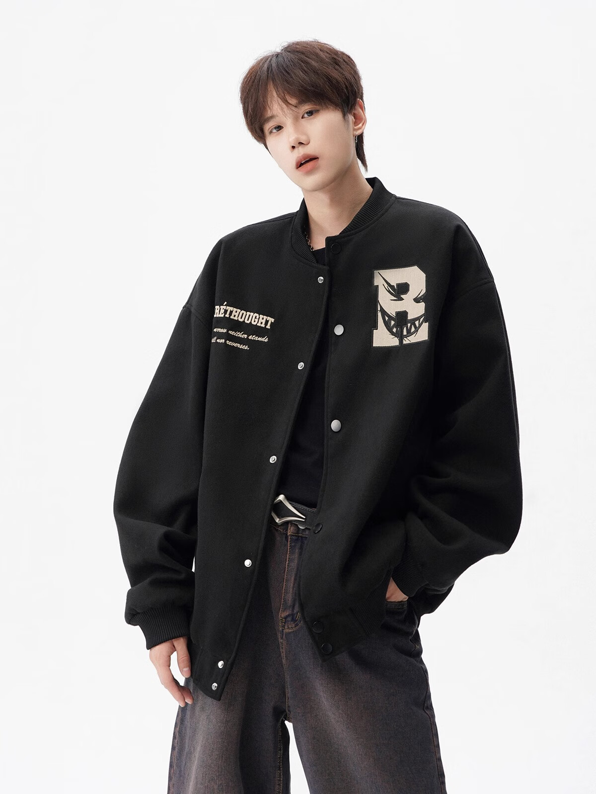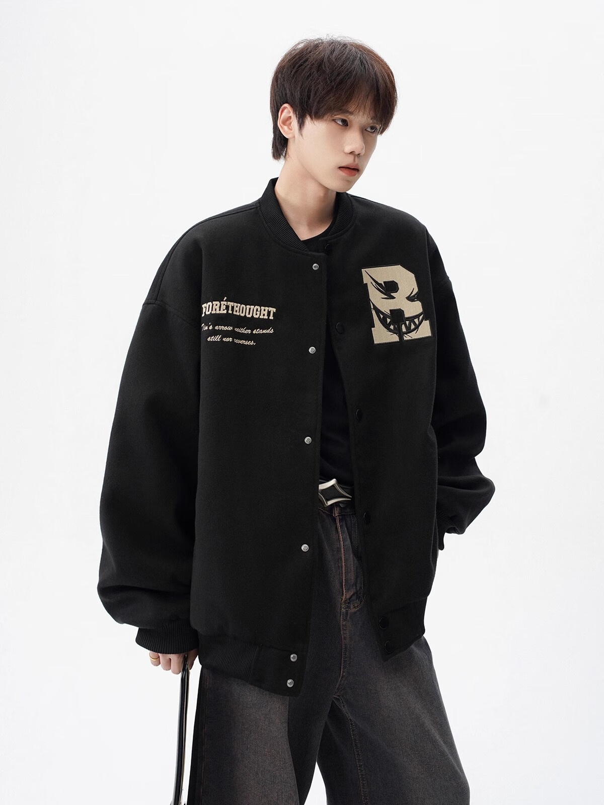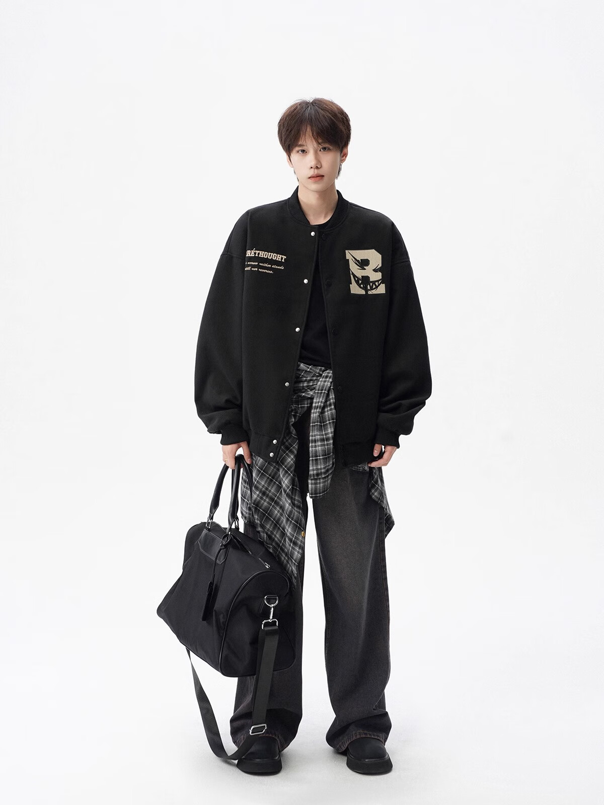 OEMG American retro baseball jacket men's spring, autumn and summer design trendy brand high street tops loose casual jacket navy blue XL recommended 120-135 Jin Jin equals 0.5 kg