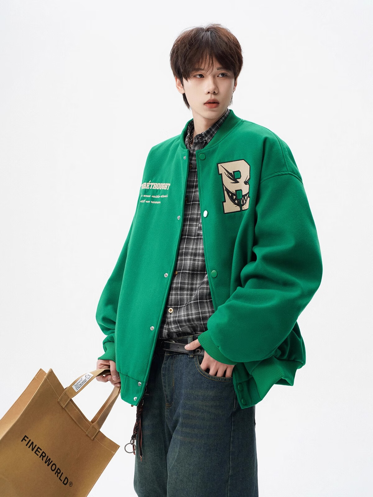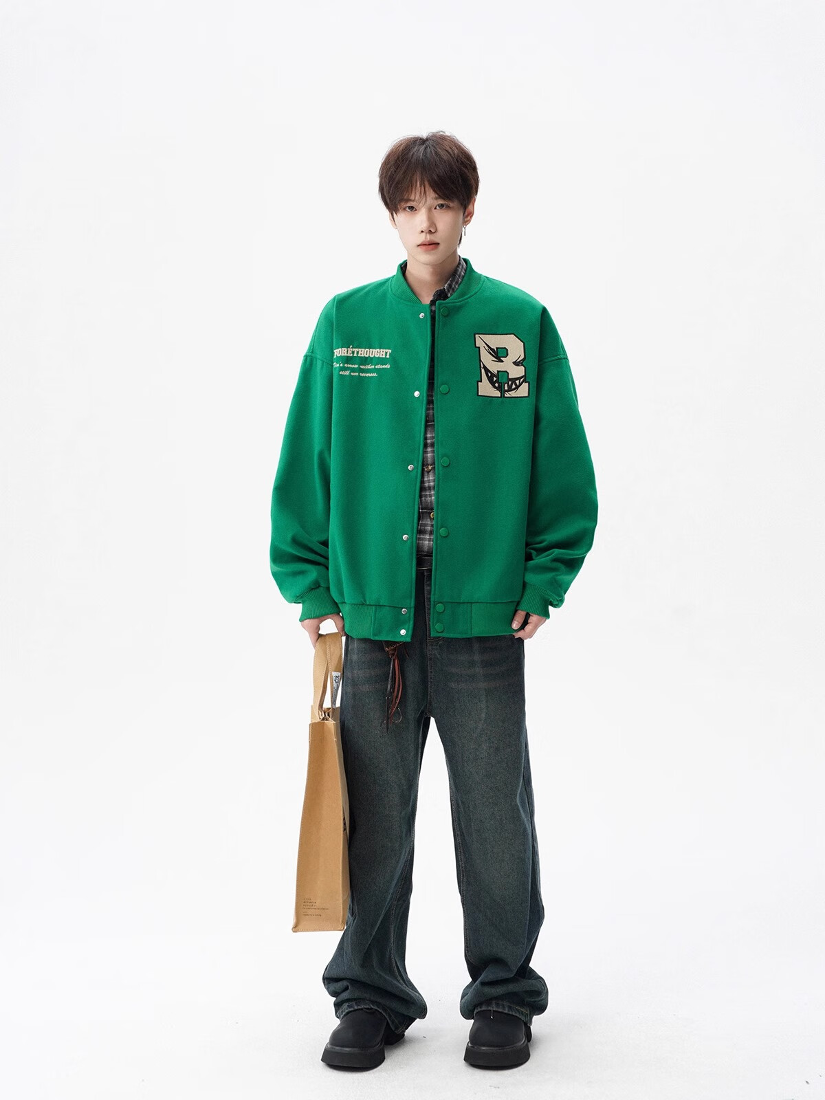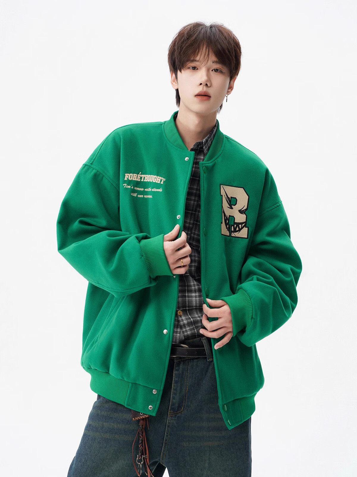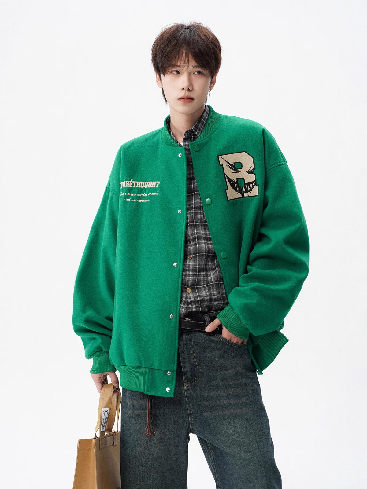 OEMG American retro baseball jacket men's spring, autumn and summer design trendy brand high street tops loose casual jacket navy blue XL recommended 120-135 Jin Jin equals 0.5 kg