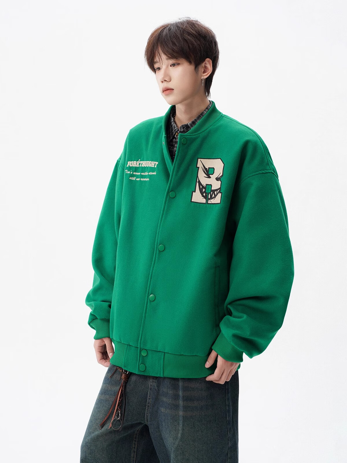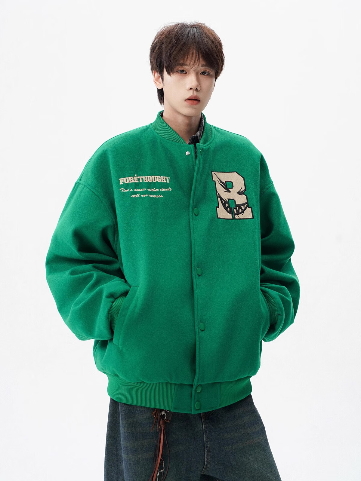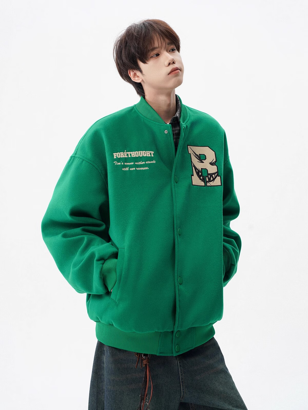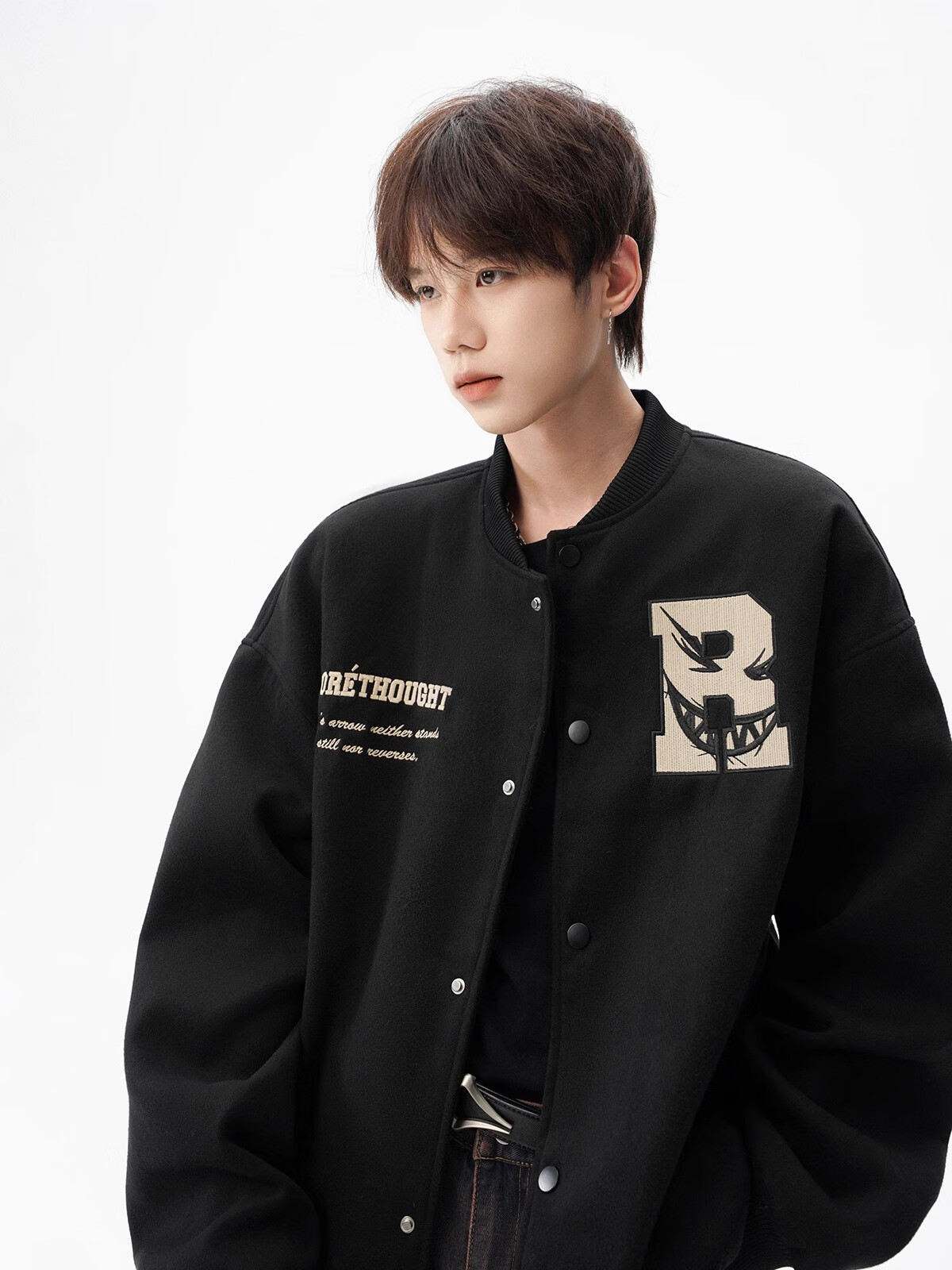 OEMG American retro baseball jacket men's spring, autumn and summer design trendy brand high street tops loose casual jacket navy blue XL recommended 120-135 Jin Jin equals 0.5 kg