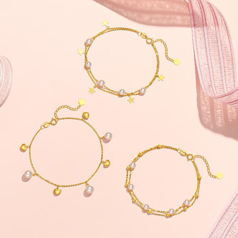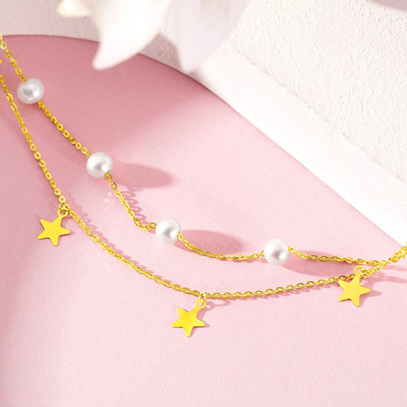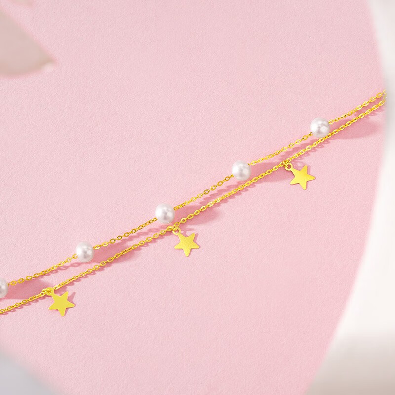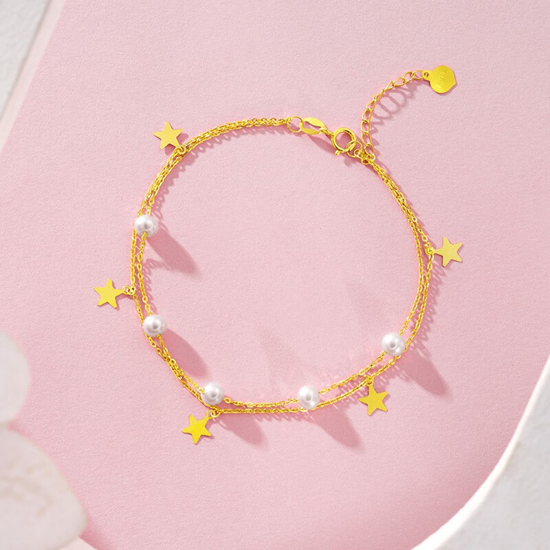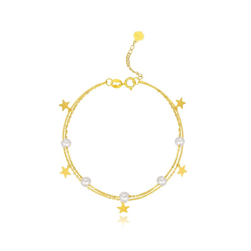 Chao Acer Starlight Yellow 18K Gold Pearl Bracelet for Women Colorful Gold Bracelet Stars for Mom and Girlfriend Birthday Gift Chain Length Approximately 16cm + Extension Chain