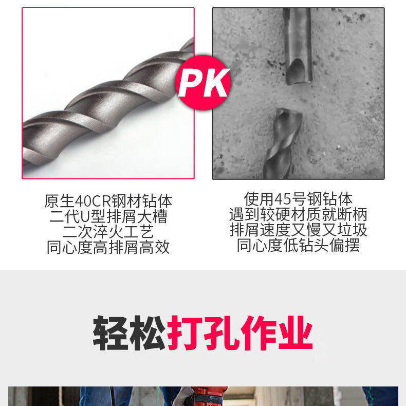 Mera impact electric hammer drill bit square handle four pits round handle extended through wall concrete cement wall drilling drill bit square handle 25x350