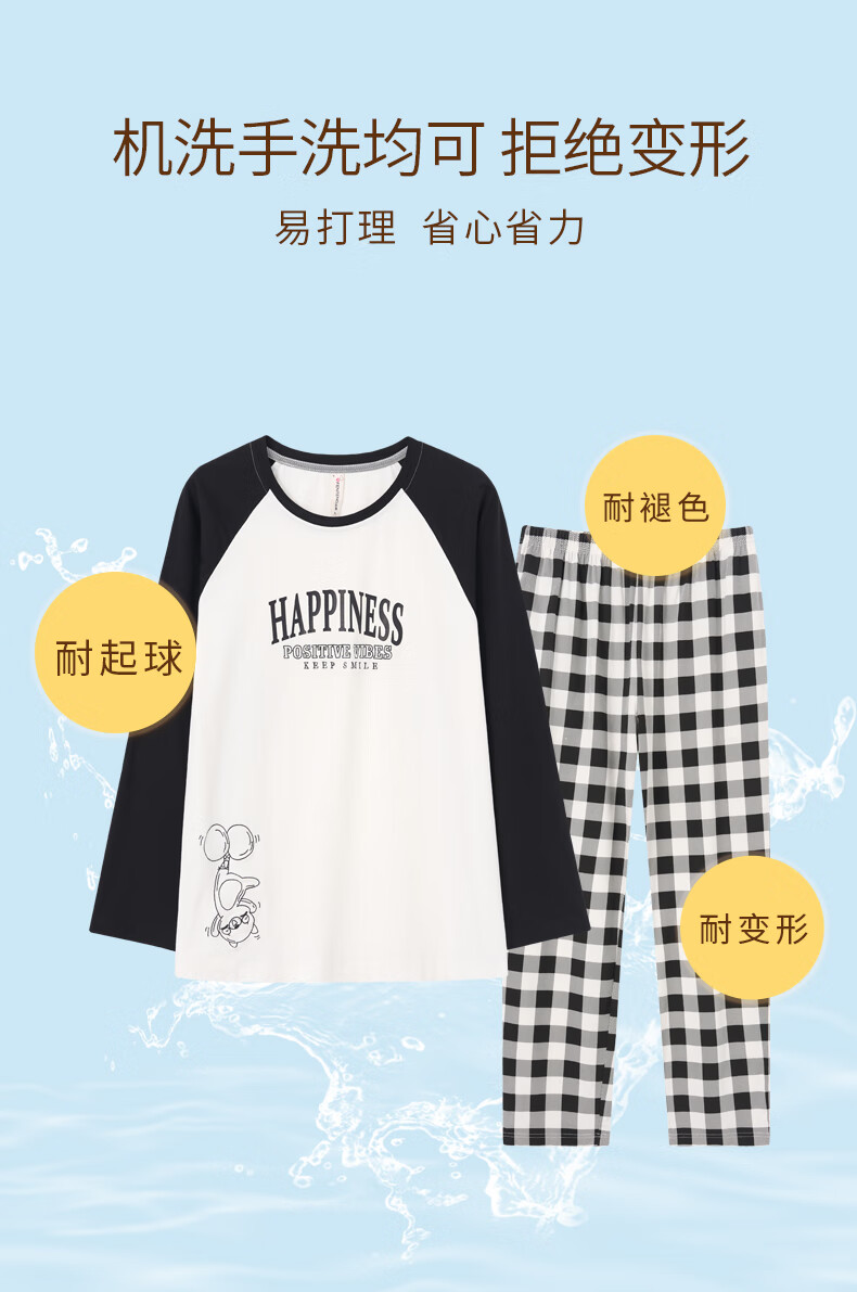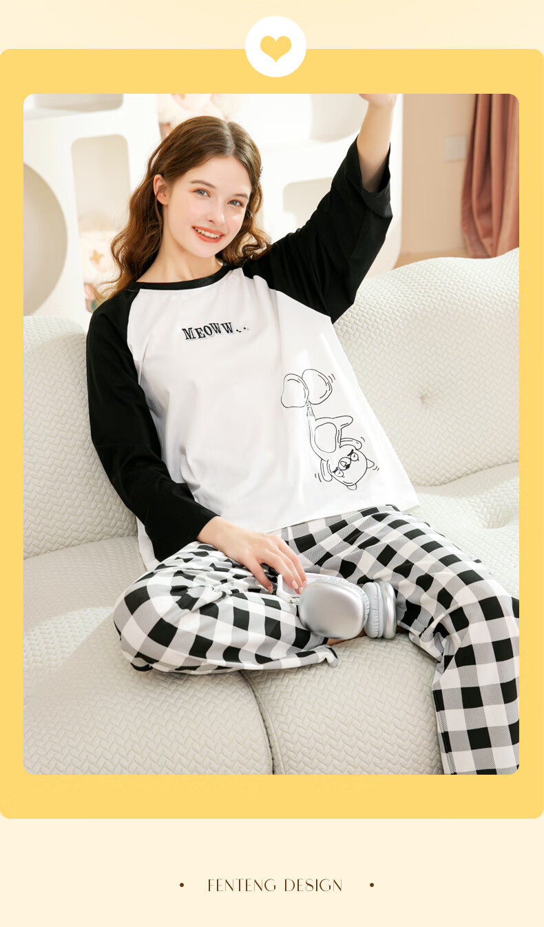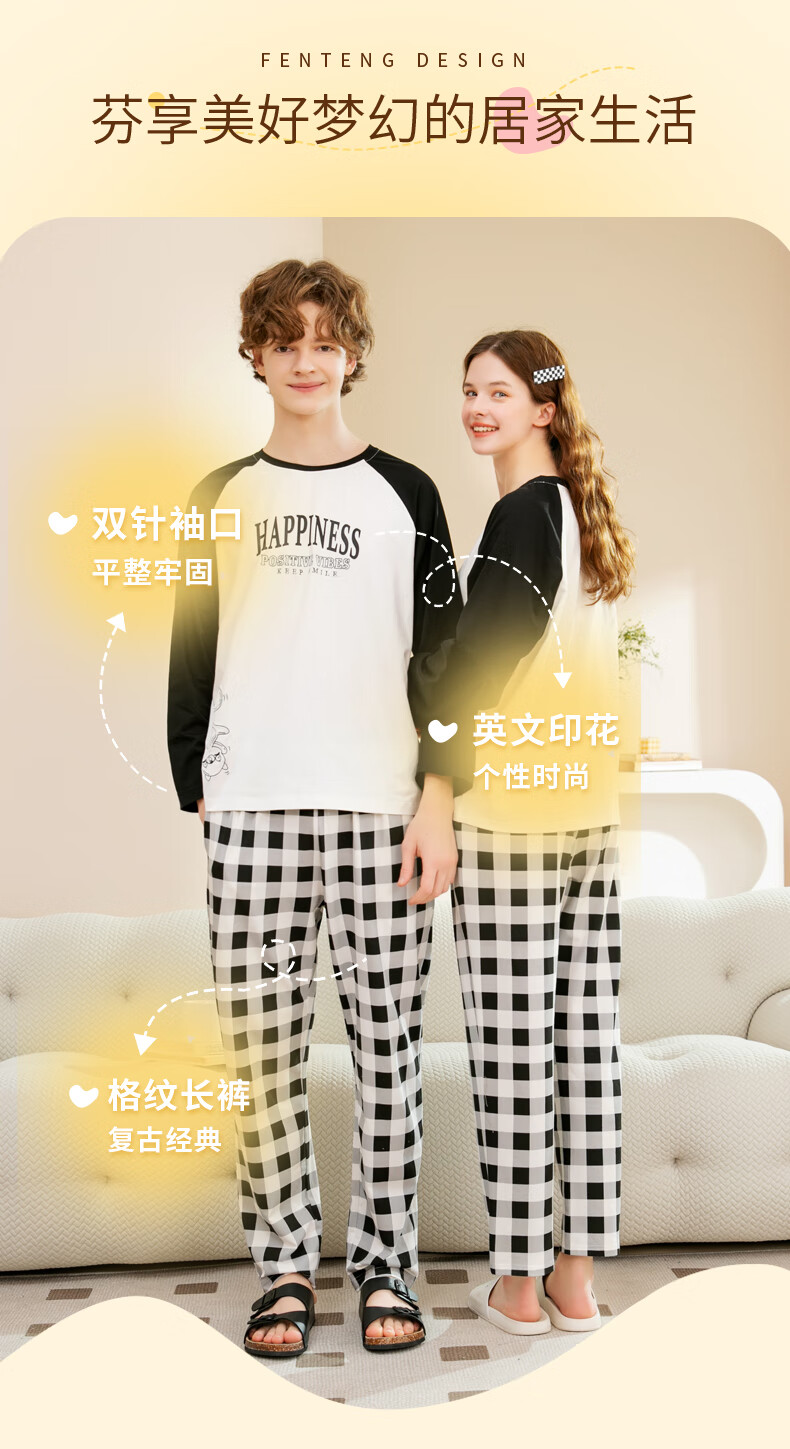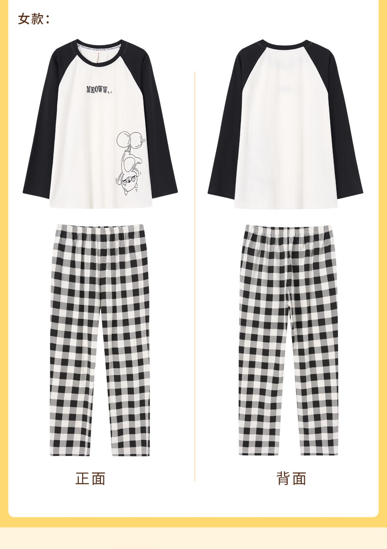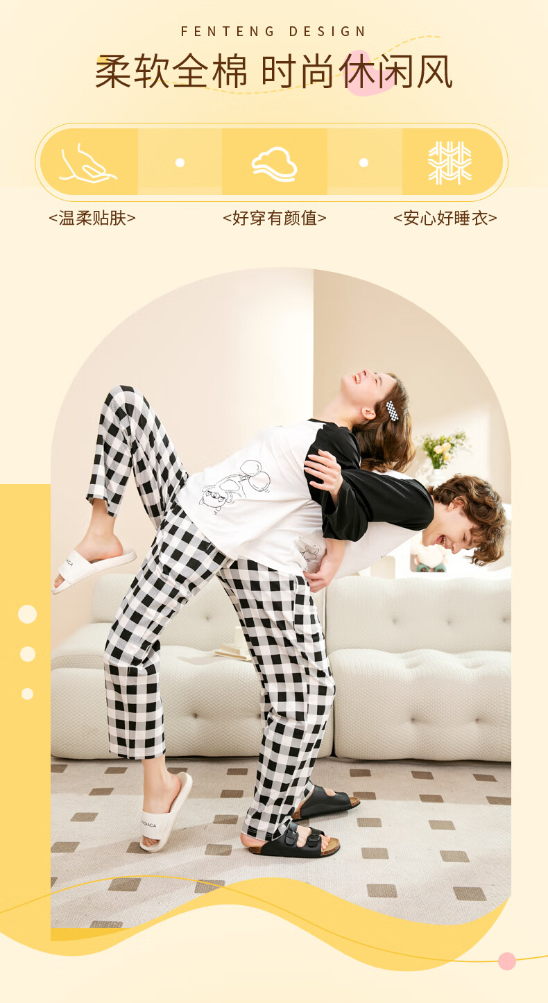 Fenton Couple Cotton Pajamas Women's New Round Neck Wearable Long Sleeve Home Clothes Set Elegant White (Male) L