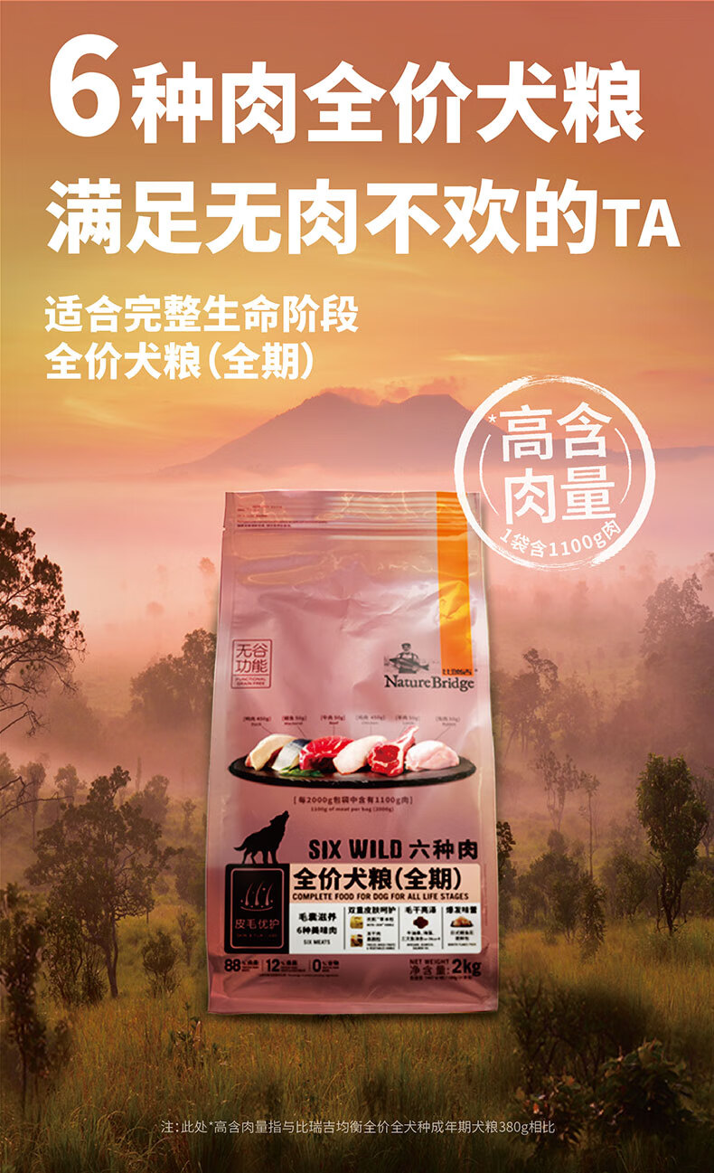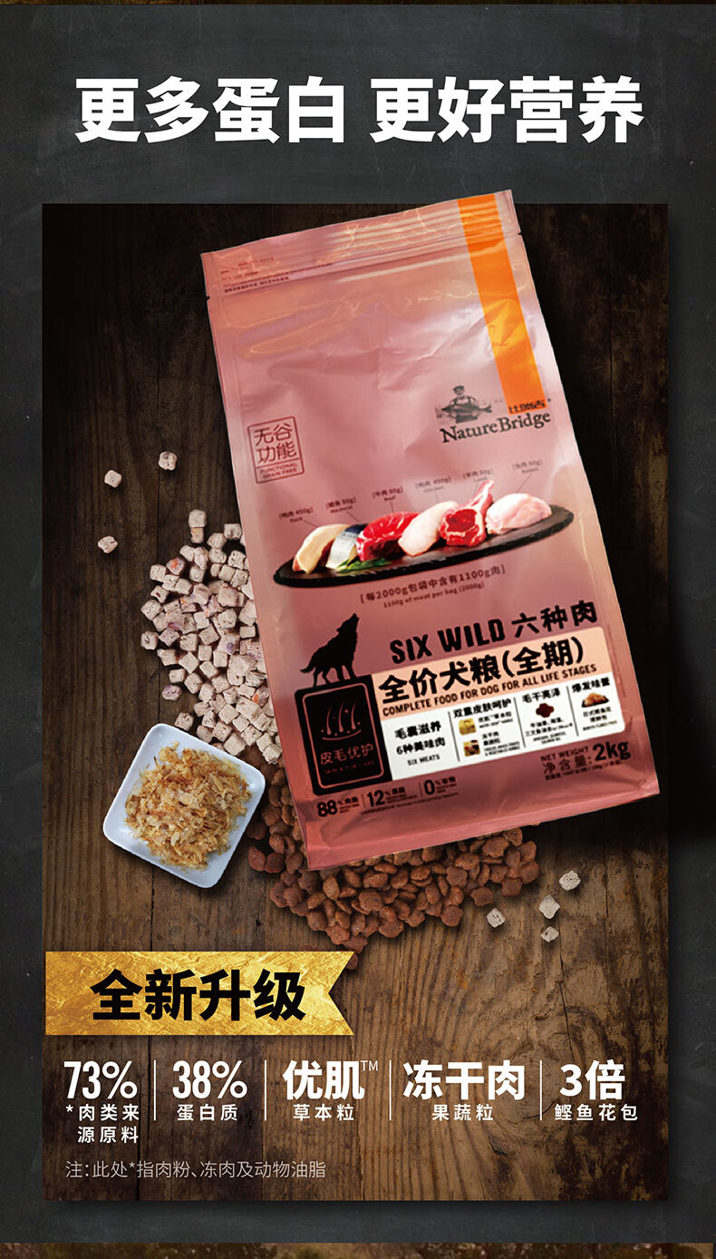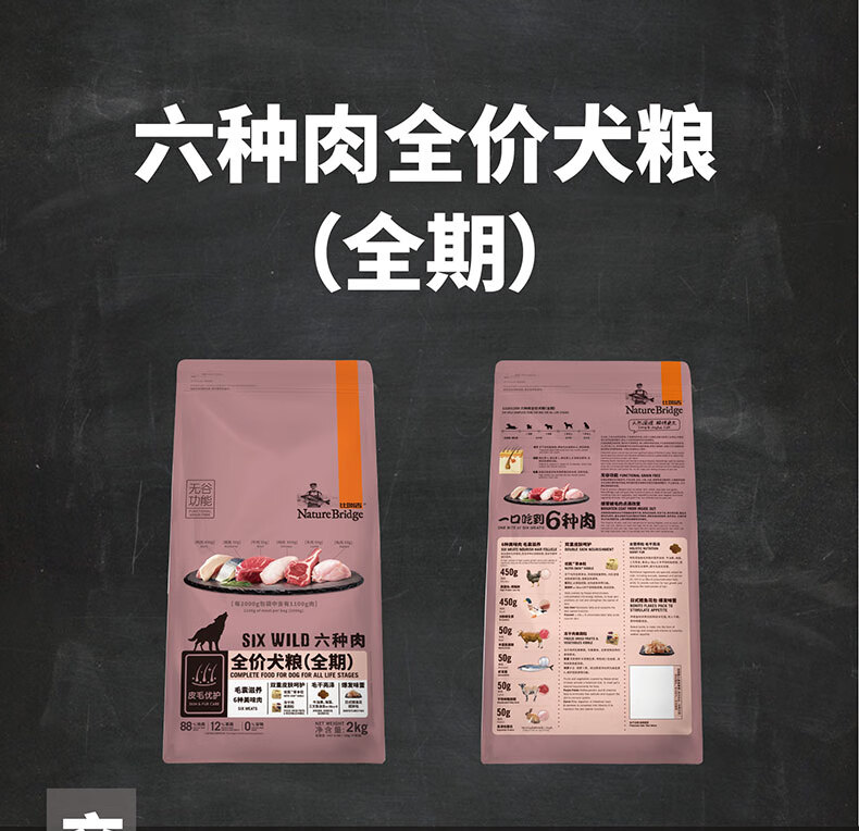 Birugi dog food grain-free six kinds of meat full-term dog food 2kg Golden Retriever Teddy full-term adult dog puppy food general type six kinds of meat full-term dog food 2kg