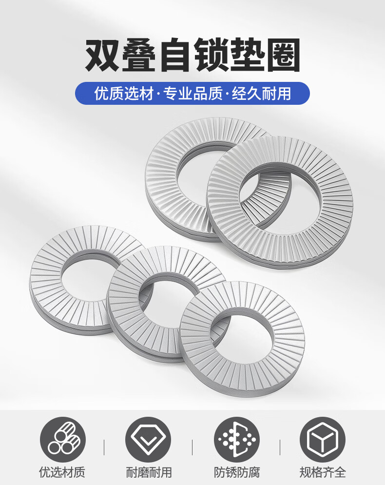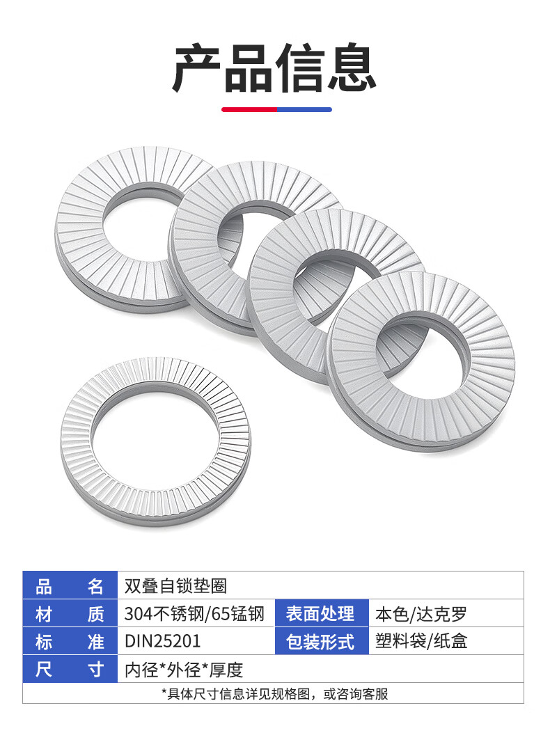 Jinggong double stack self-locking anti-loosening washer 304 stainless steel/Dacromet double-sided toothed locking washer DIN25201 M8 Dacromet (10 pairs)