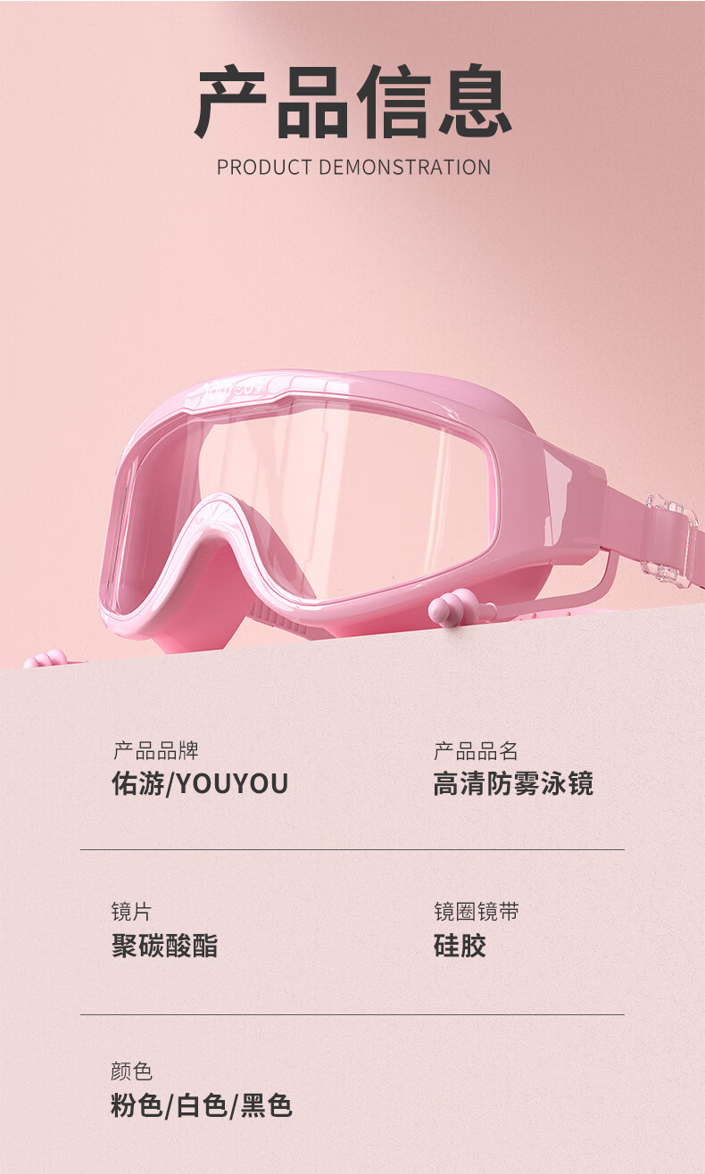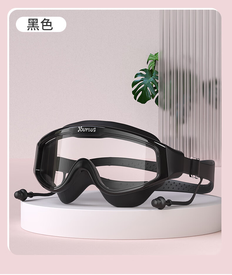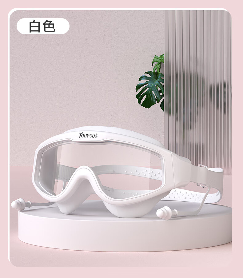You swimming goggles waterproof and anti-fog high-definition large-frame swimming goggles for men and women diving goggles and swimming equipment transparent white + one-piece earplugs