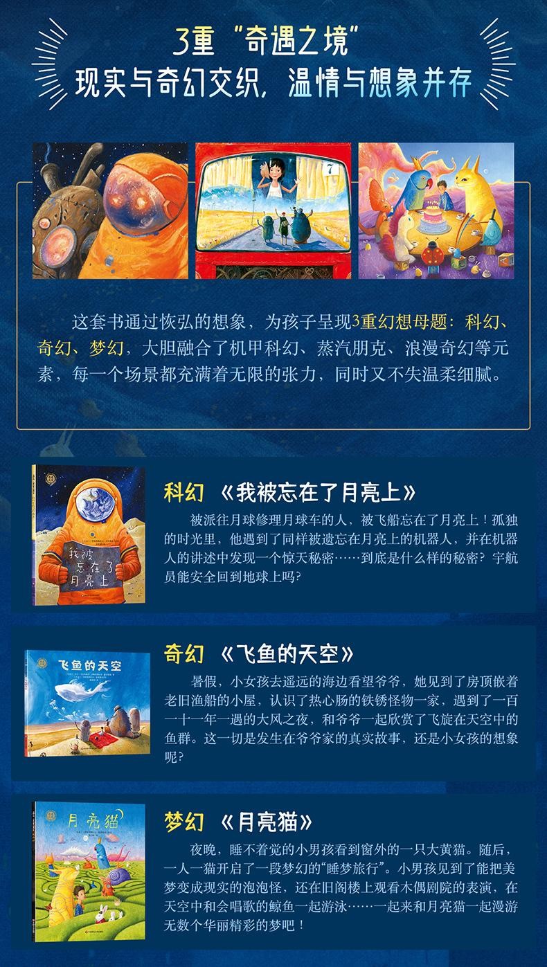 Hard-shell picture book, children's imagination training picture book, Land of Adventure, hardcover set of 3 volumes, suitable for 3-6-9 years old, Moon Cat, Sky of Flying Fish, I was forgotten on the moon, children's picture book for 3-6 years old, kindergarten recommended classic picture book for 6-8 years old, official version, Land of Adventure, 3 volumes