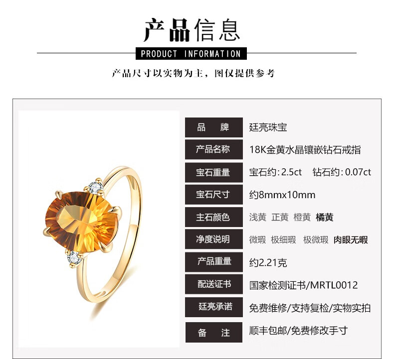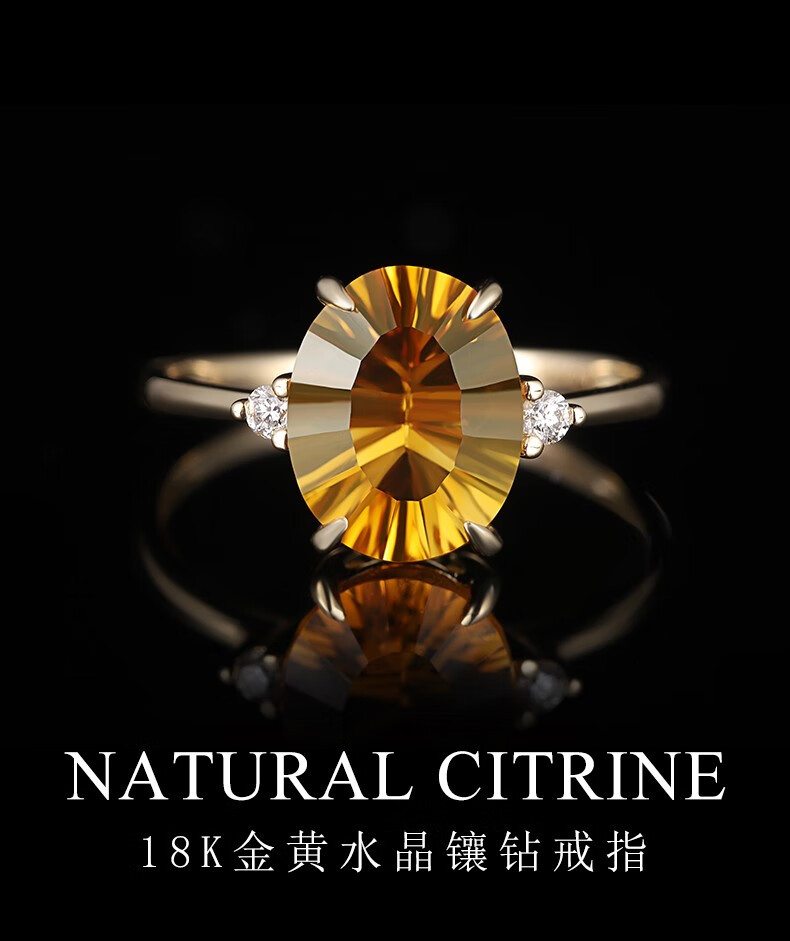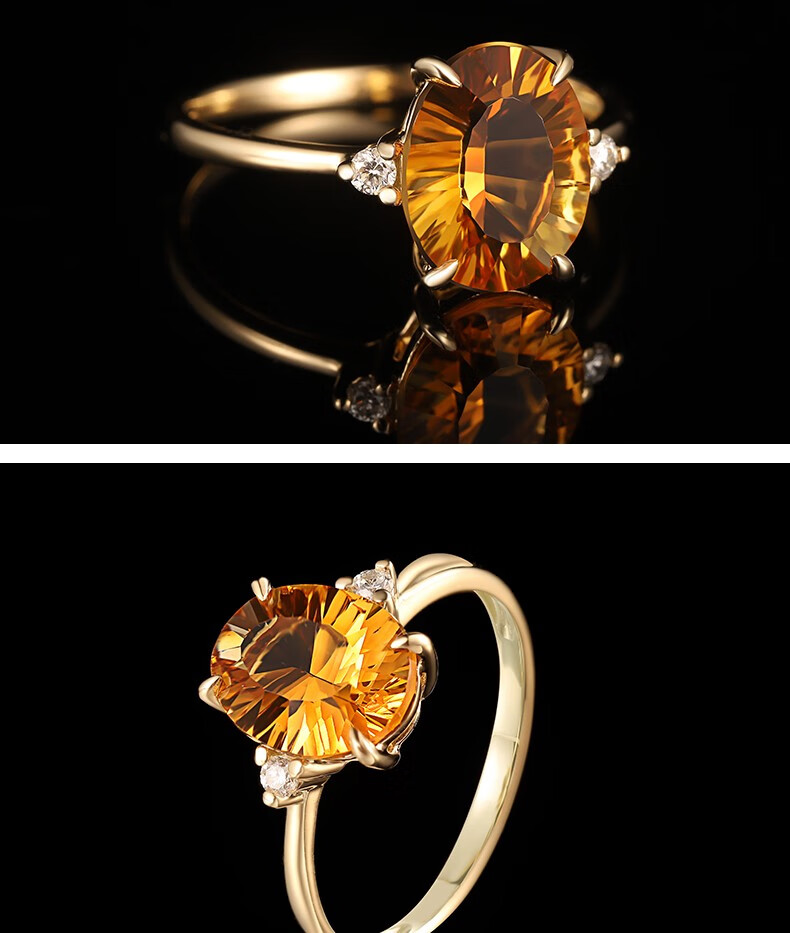 Tingliang 18k gold diamond citrine ring for women, natural colored gemstone ring for your lover, customized in other sizes