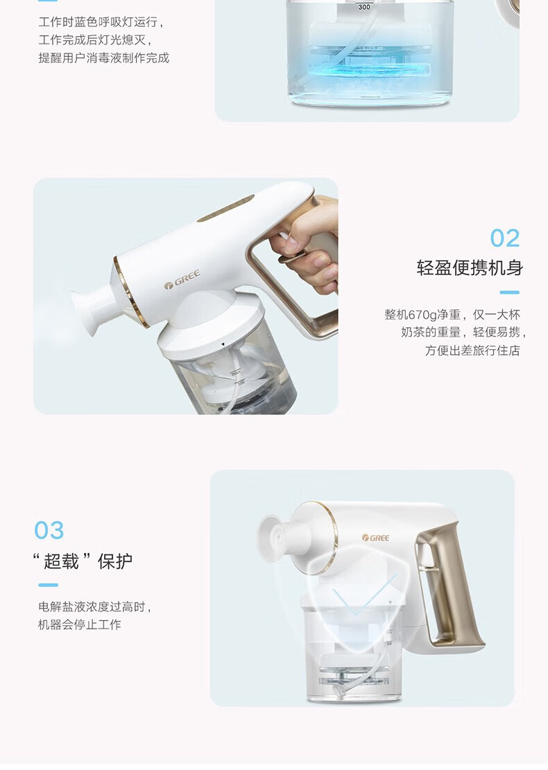 Gree (GREE) hand-held disinfectant making machine disinfectant sprayer ready-to-use portable disinfectant spray health commission registered disinfector GXPD-3001