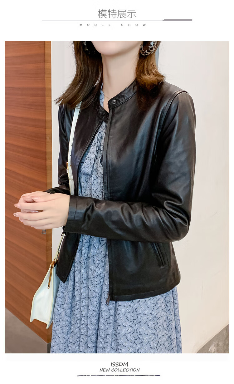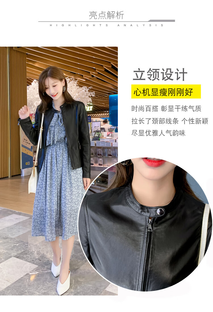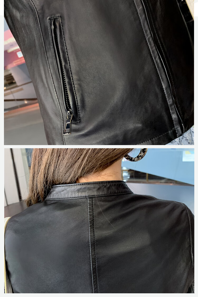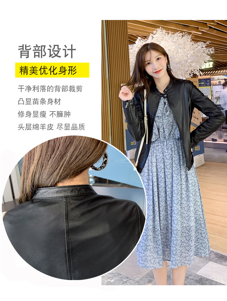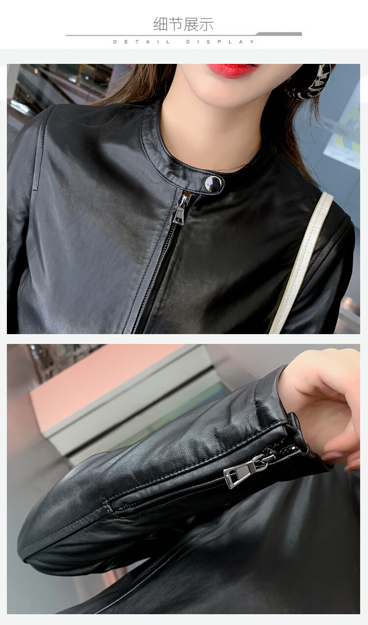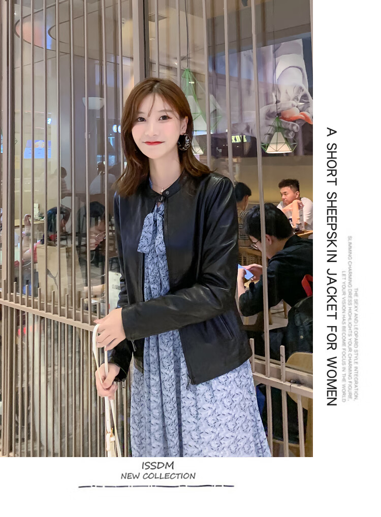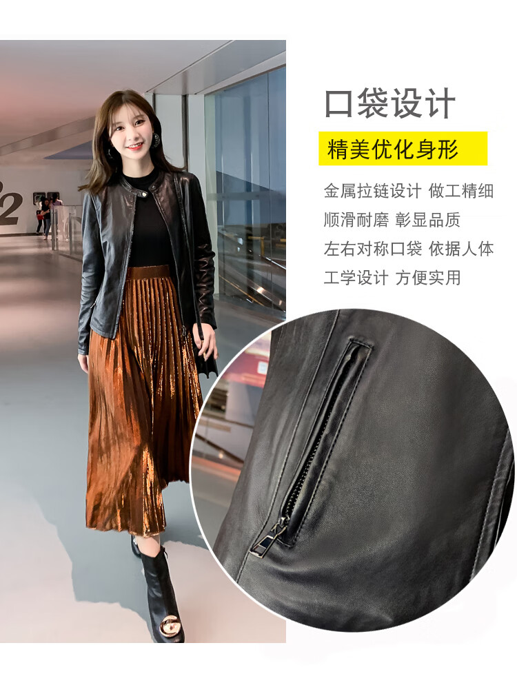 泊诗兰(Ptslan)进口绵羊皮真皮皮衣外套女短款欧货新款海宁修身P9420 黑色 L【105-114斤】