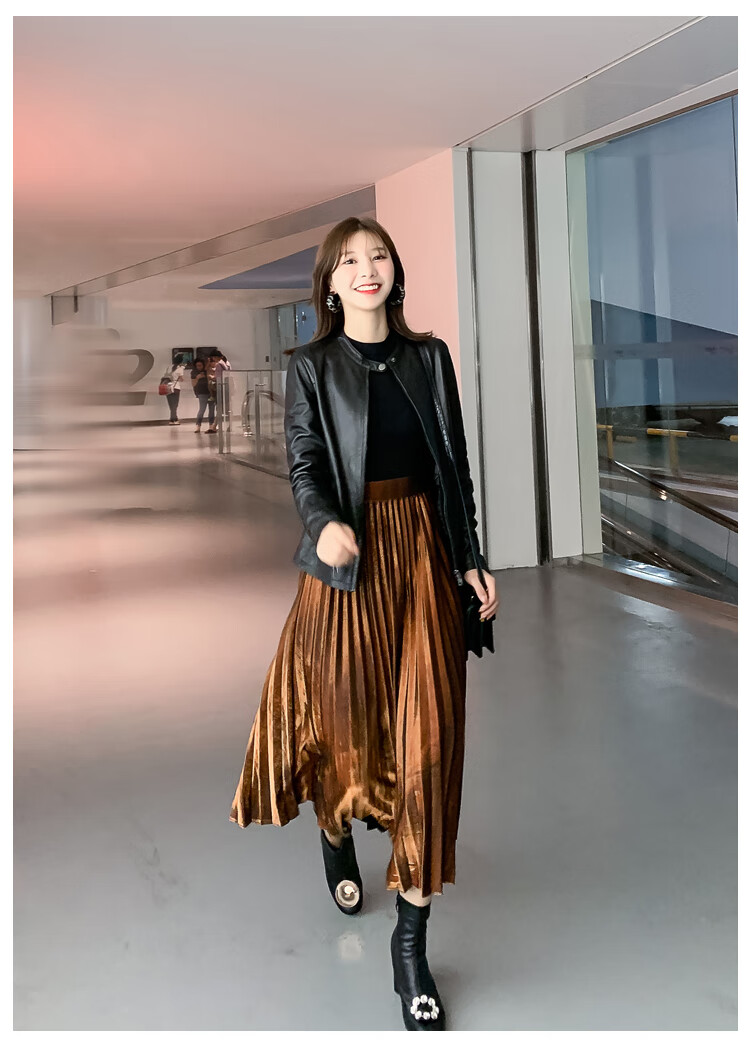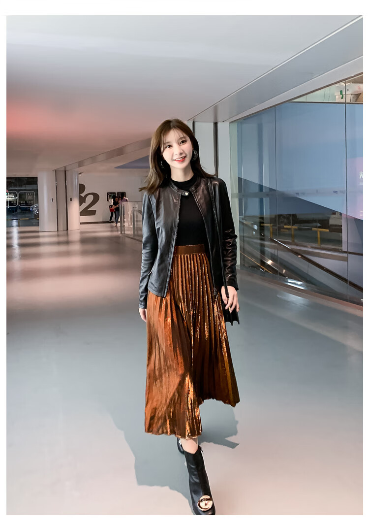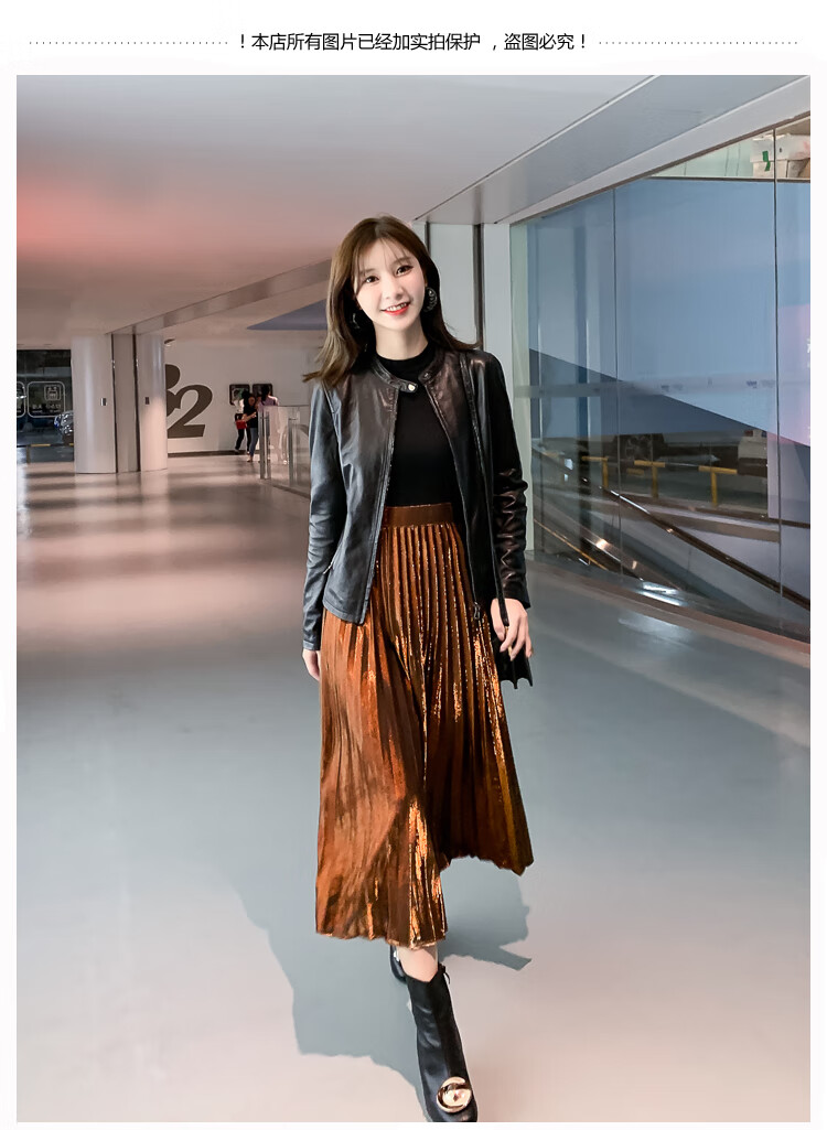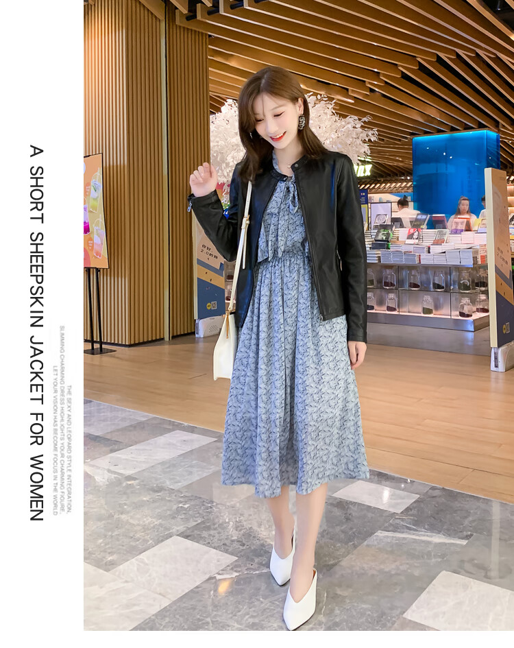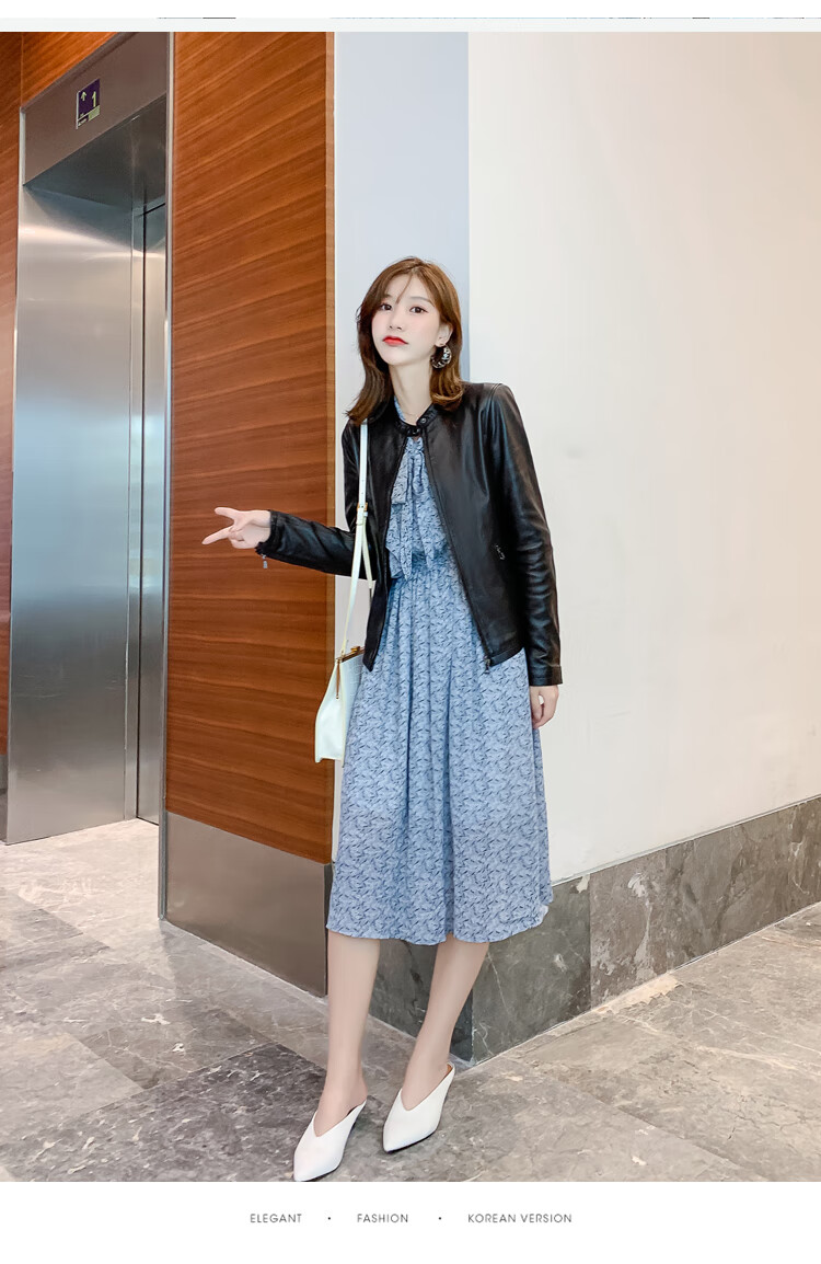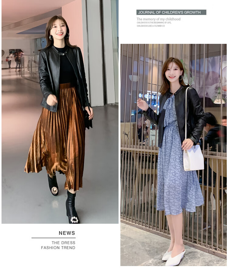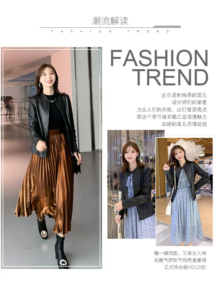 泊诗兰(Ptslan)进口绵羊皮真皮皮衣外套女短款欧货新款海宁修身P9420 黑色 L【105-114斤】